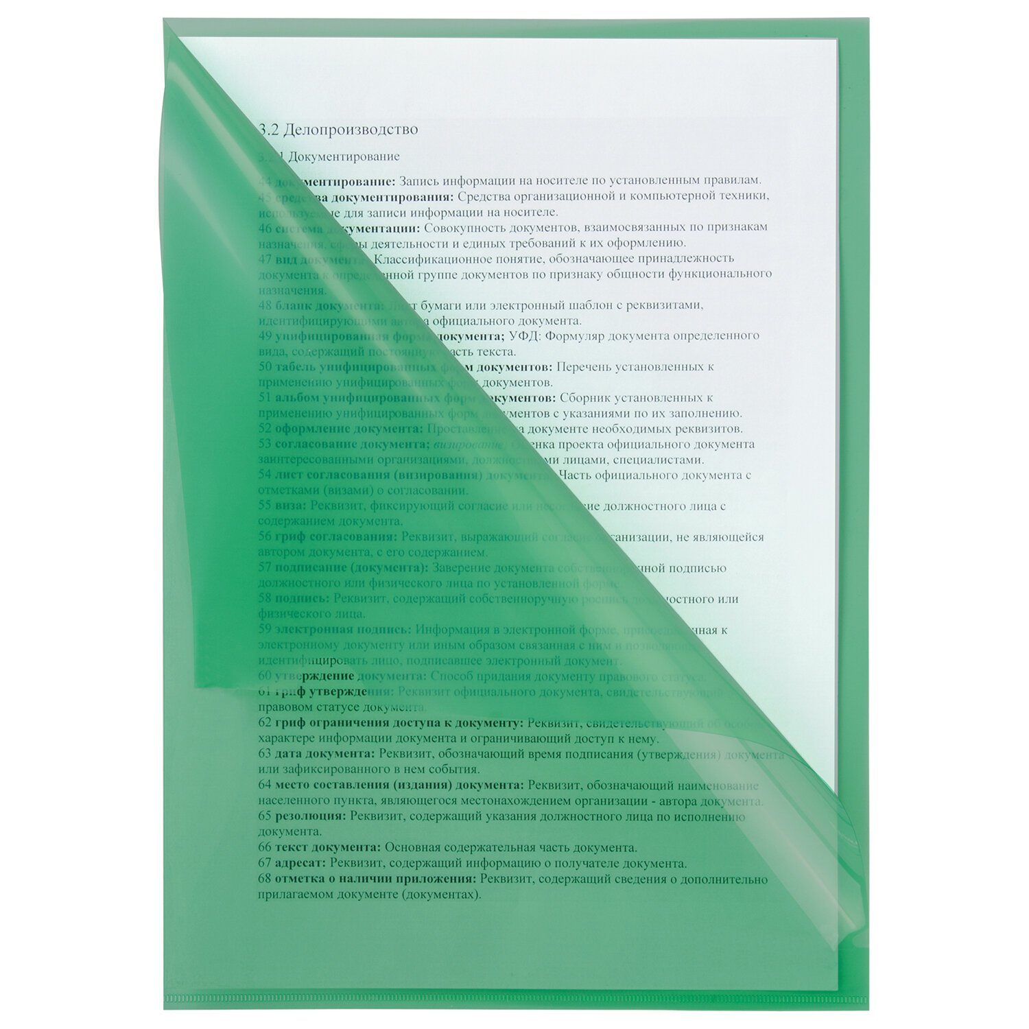 Папка-уголок прозрачная А4 BRAUBERG UNIVERSAL, зеленая, 0,10 мм, 273048