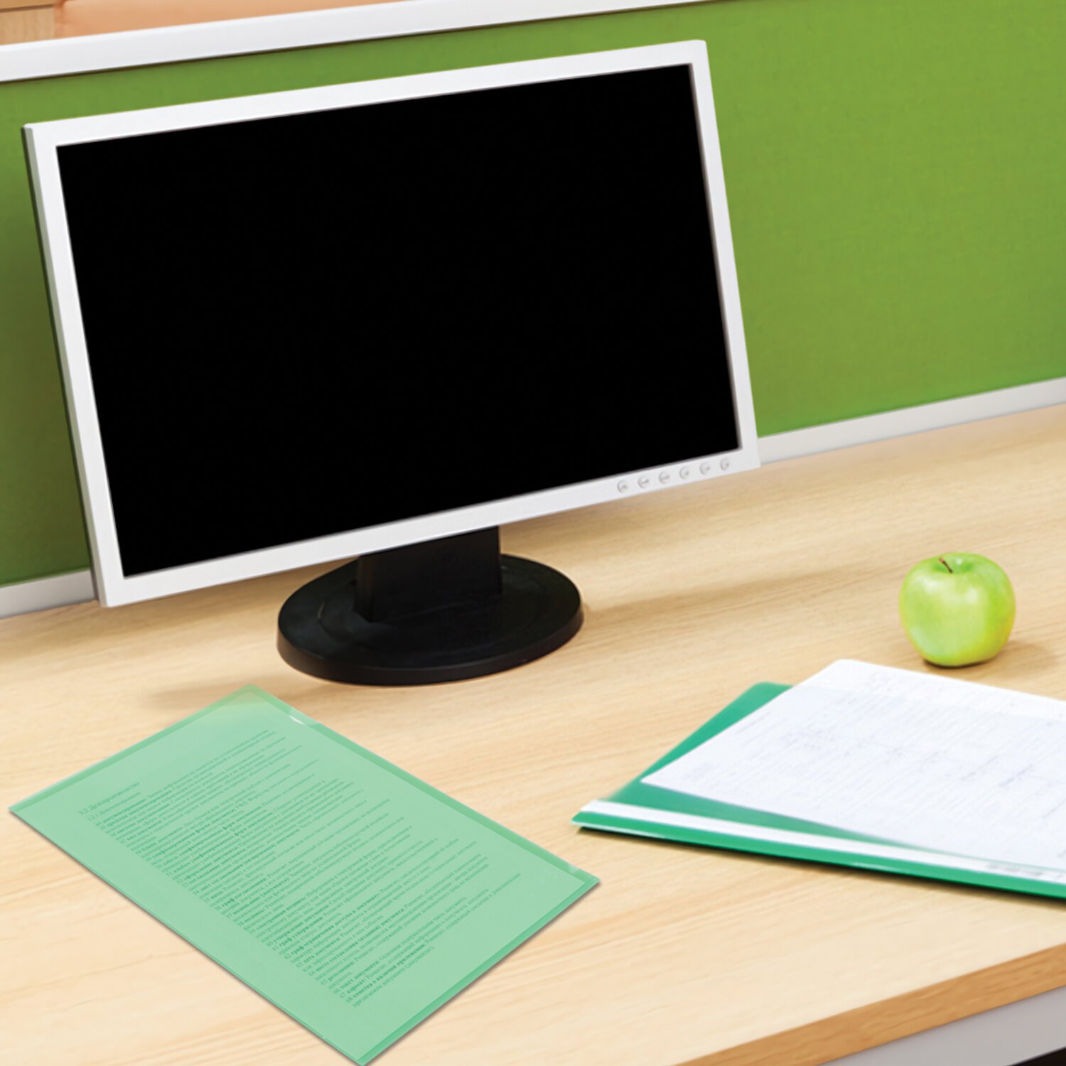 Папка формата А4 выполнена из высококачественного полипропилена плотностью 100 мкм. Она предотвращает смятие, загрязнение или намокание бумаг. Прозрачный материал позволяет определить содержимое, не открывая папку. Специальная выемка для перелистывания листов облегчает работу с документами. Данная папка заметно выделяется среди других благодаря яркому зеленому цвету.