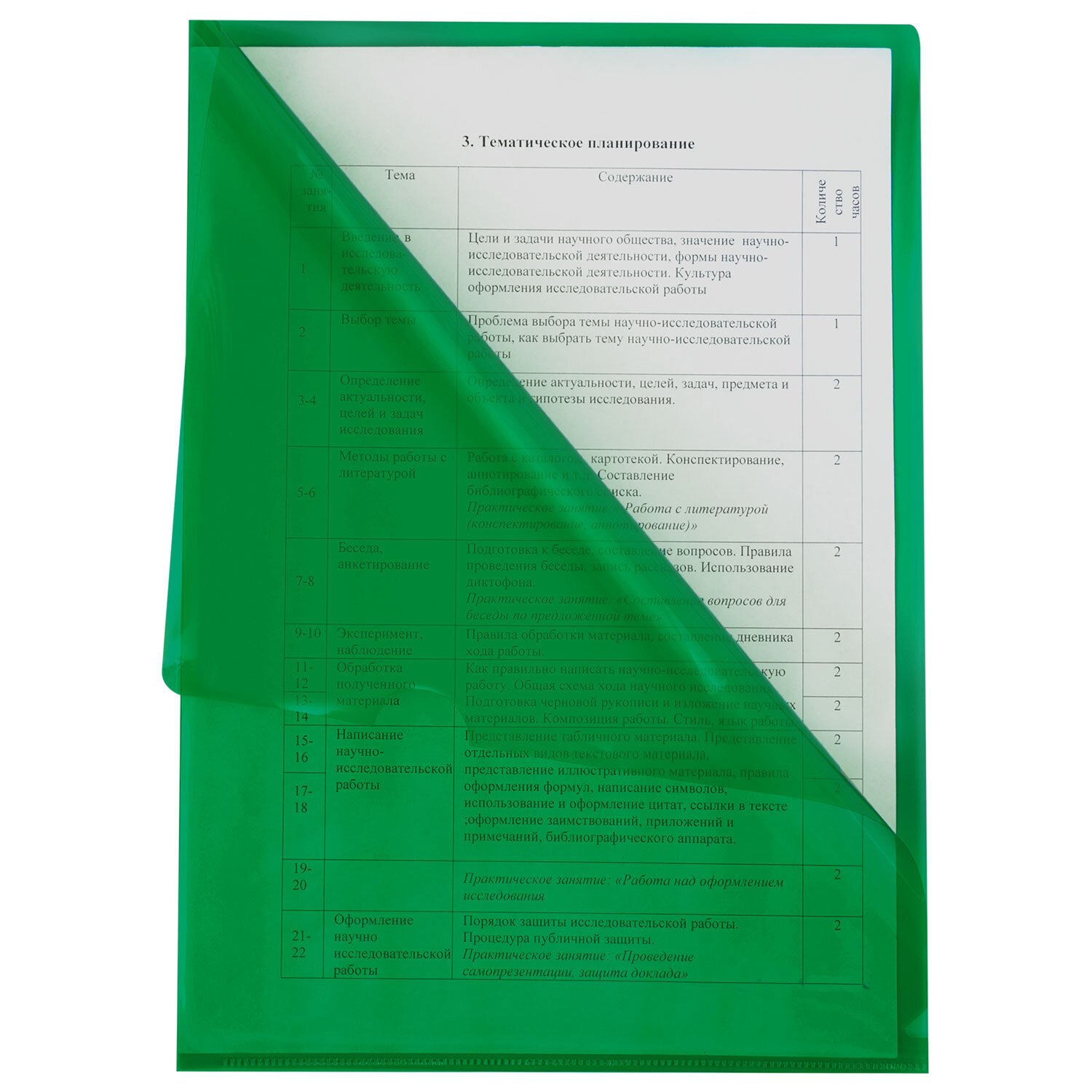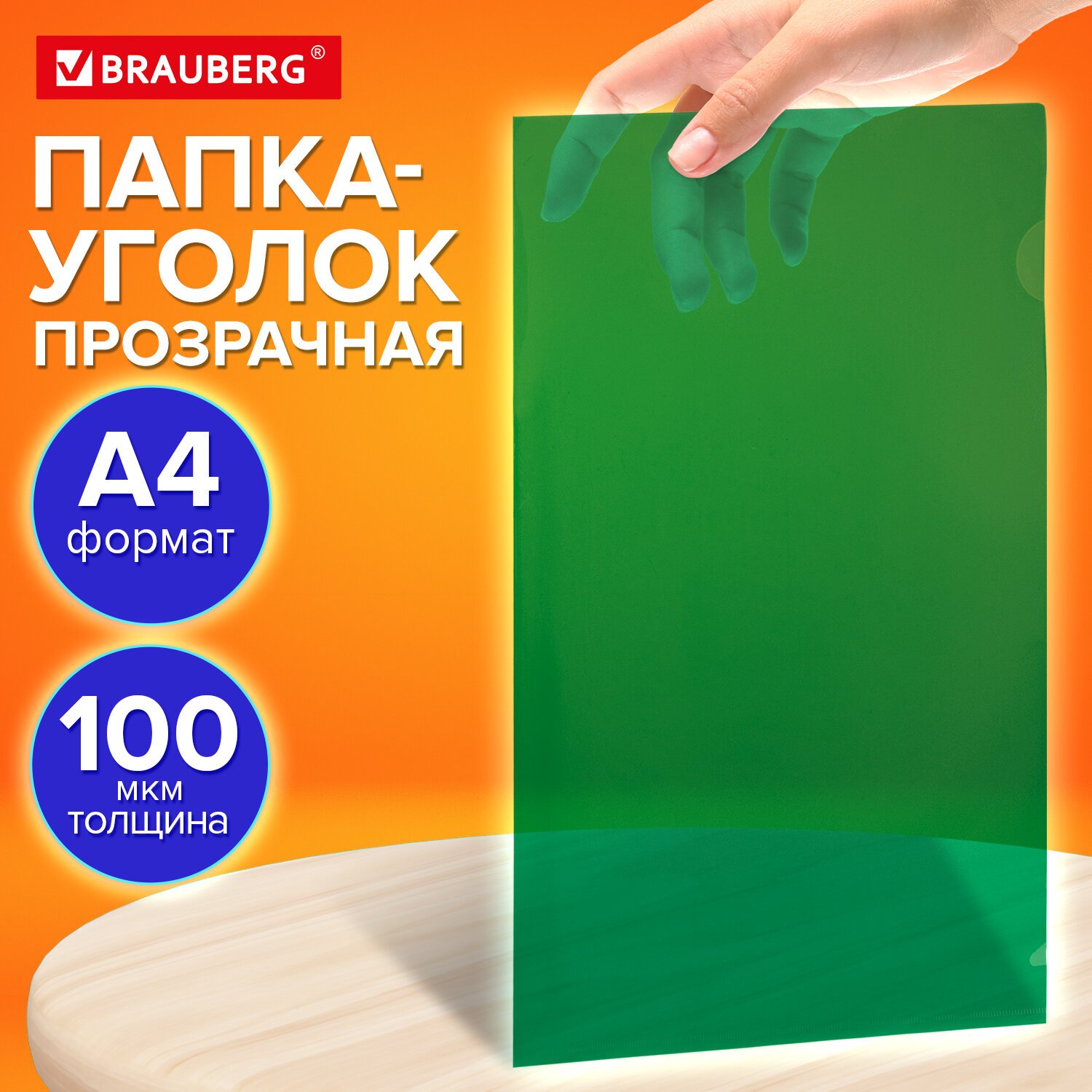 Папка-уголок прозрачная А4 BRAUBERG UNIVERSAL, зеленая, 0,10 мм, 273048