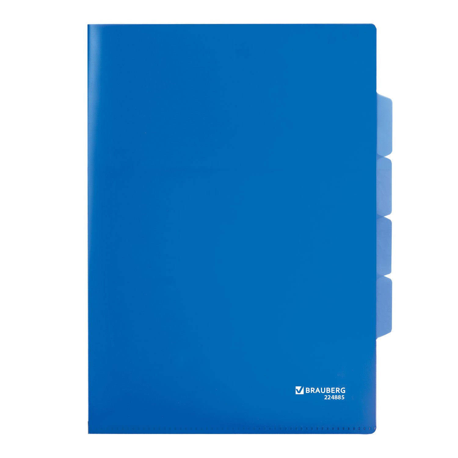 Папка-уголок с 3 отделениями, жесткая, BRAUBERG, синяя, 0,15 мм, 224885
