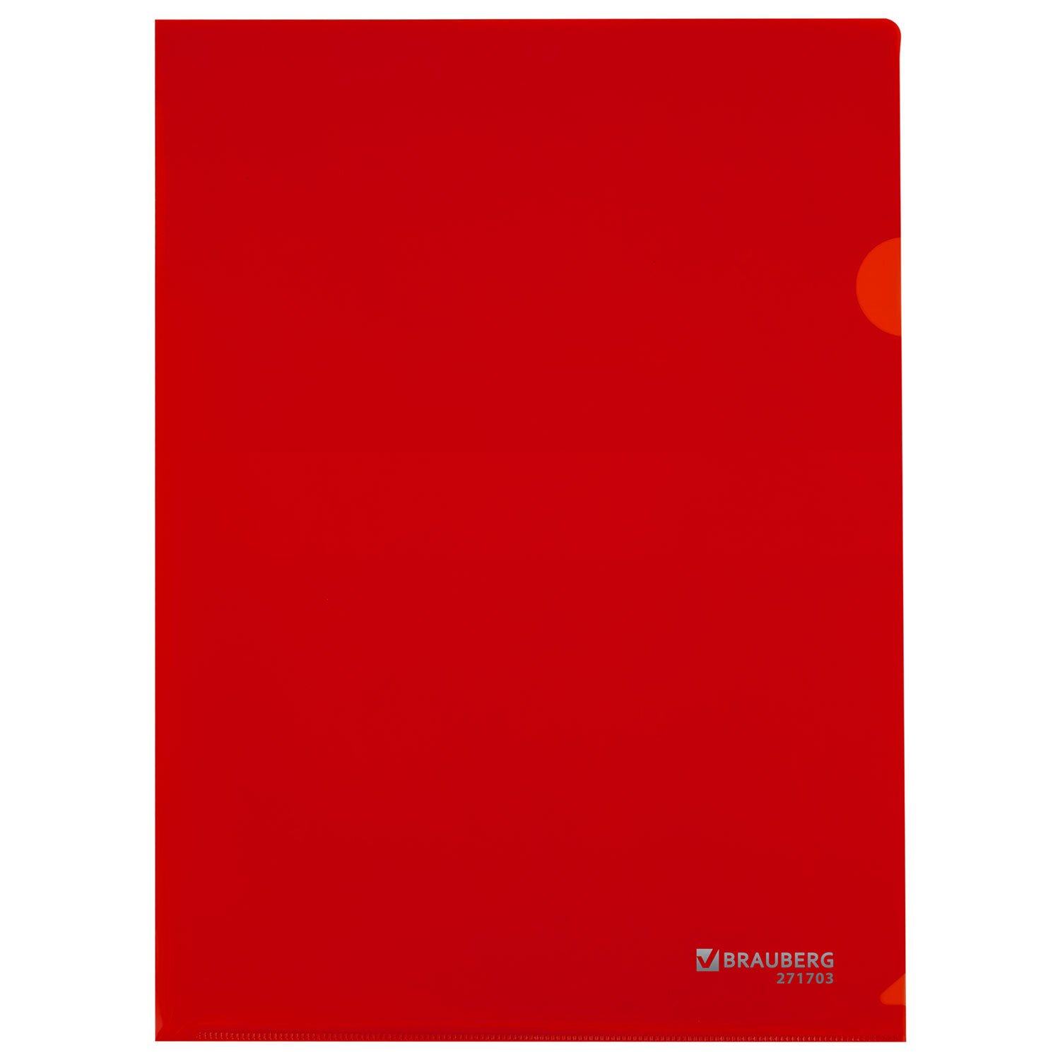 Папка-уголок жесткая прозрачная А4 BRAUBERG UNIVERSAL, красная, 0,15 мм, 273052