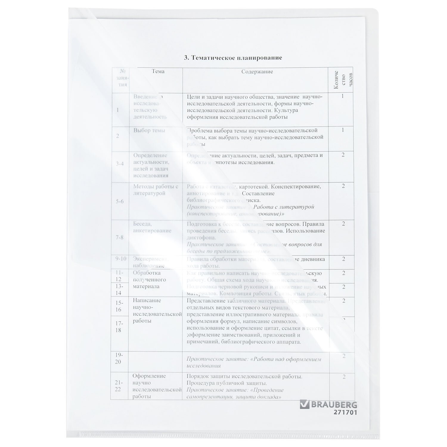 Папка-уголок жесткая А4 BRAUBERG UNIVERSAL, прозрачная, 0,15 мм, 273049