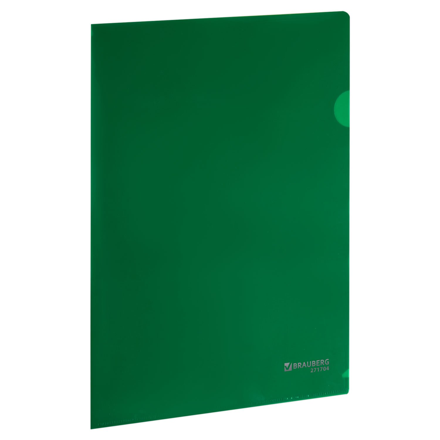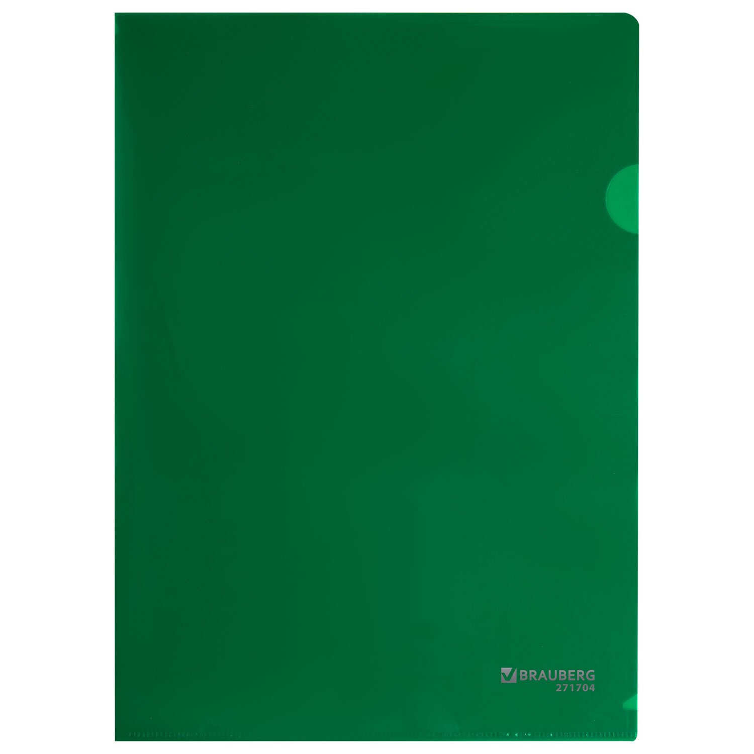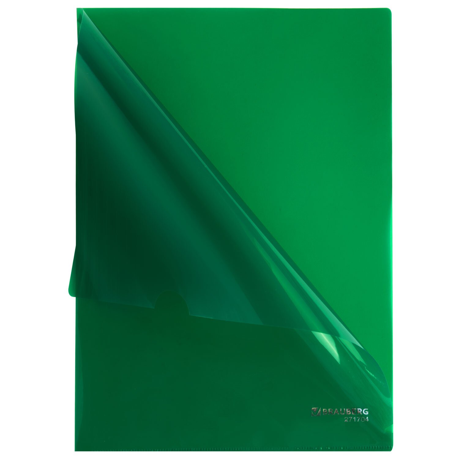 Папка-уголок жесткая прозрачная А4 BRAUBERG UNIVERSAL, зеленая, 0,15 мм, 273053