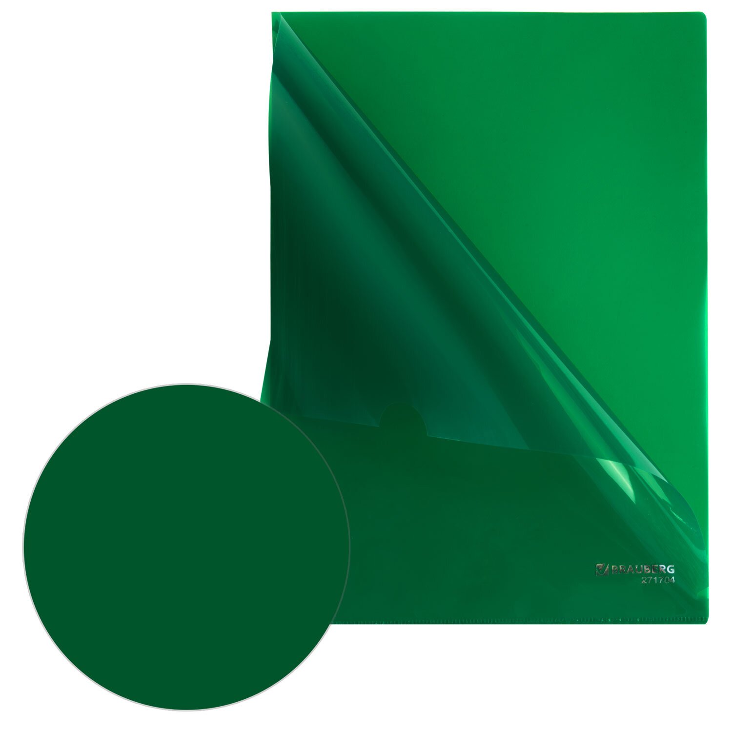 Папка-уголок жесткая BRAUBERG, зеленая, 0,15 мм, 221639