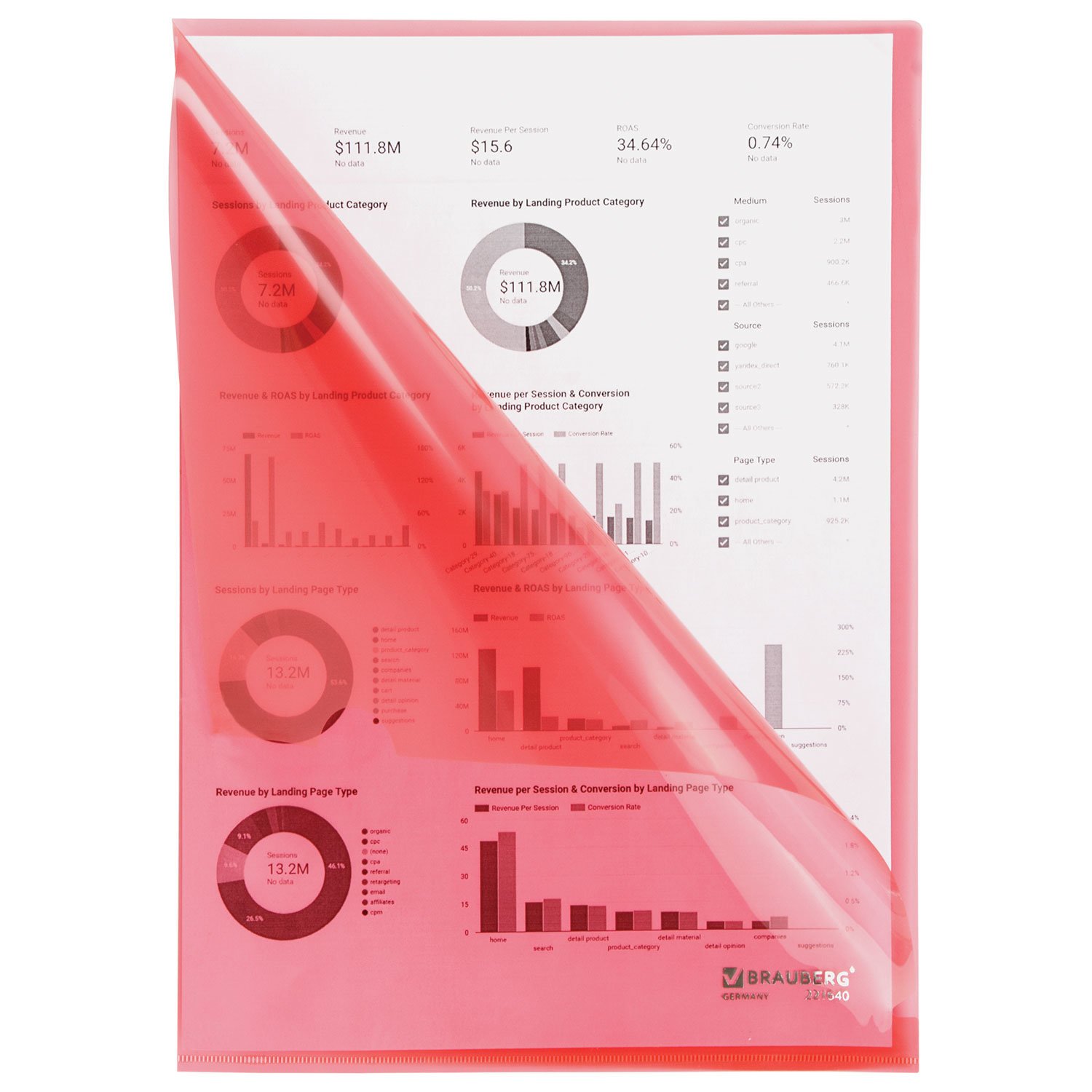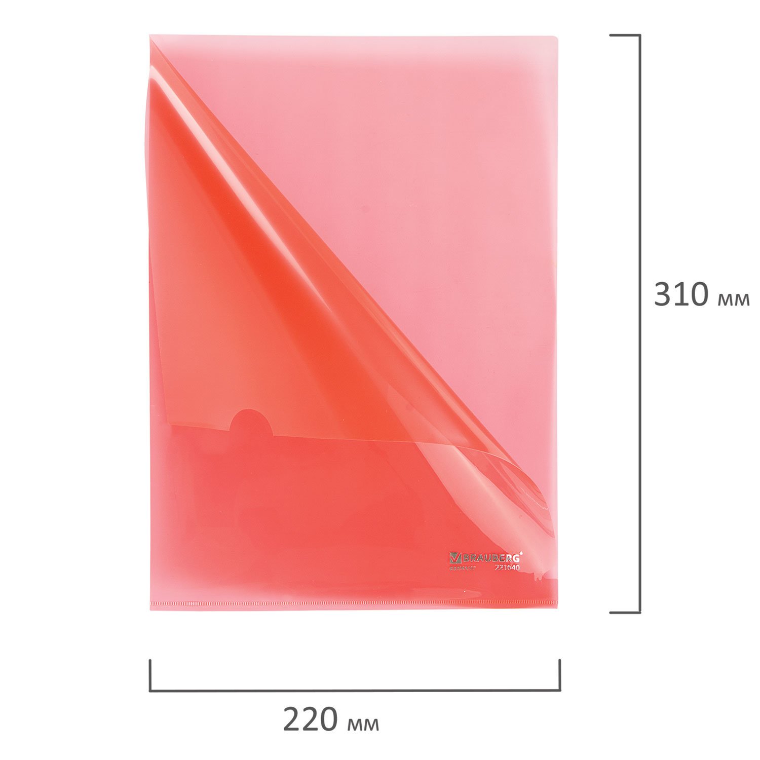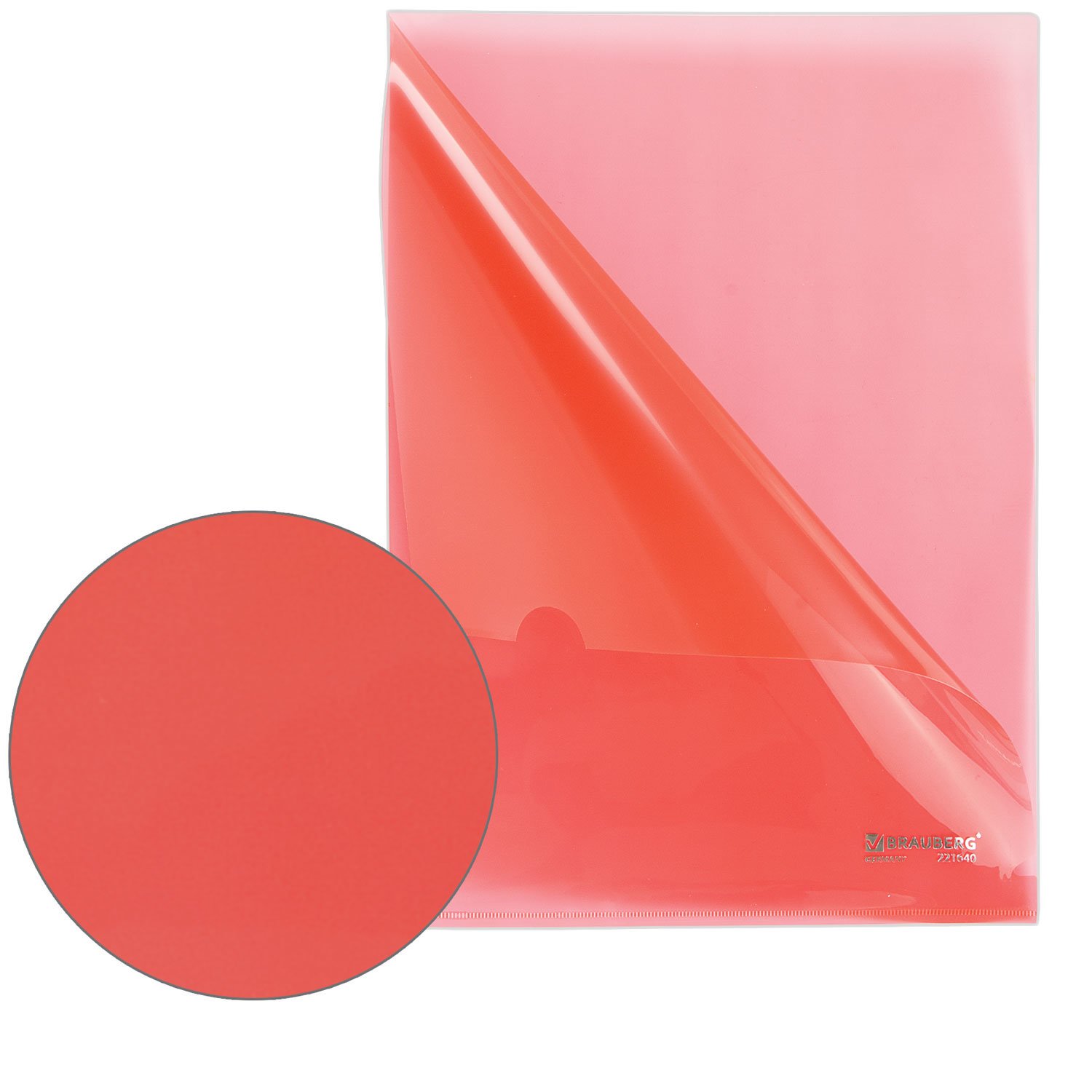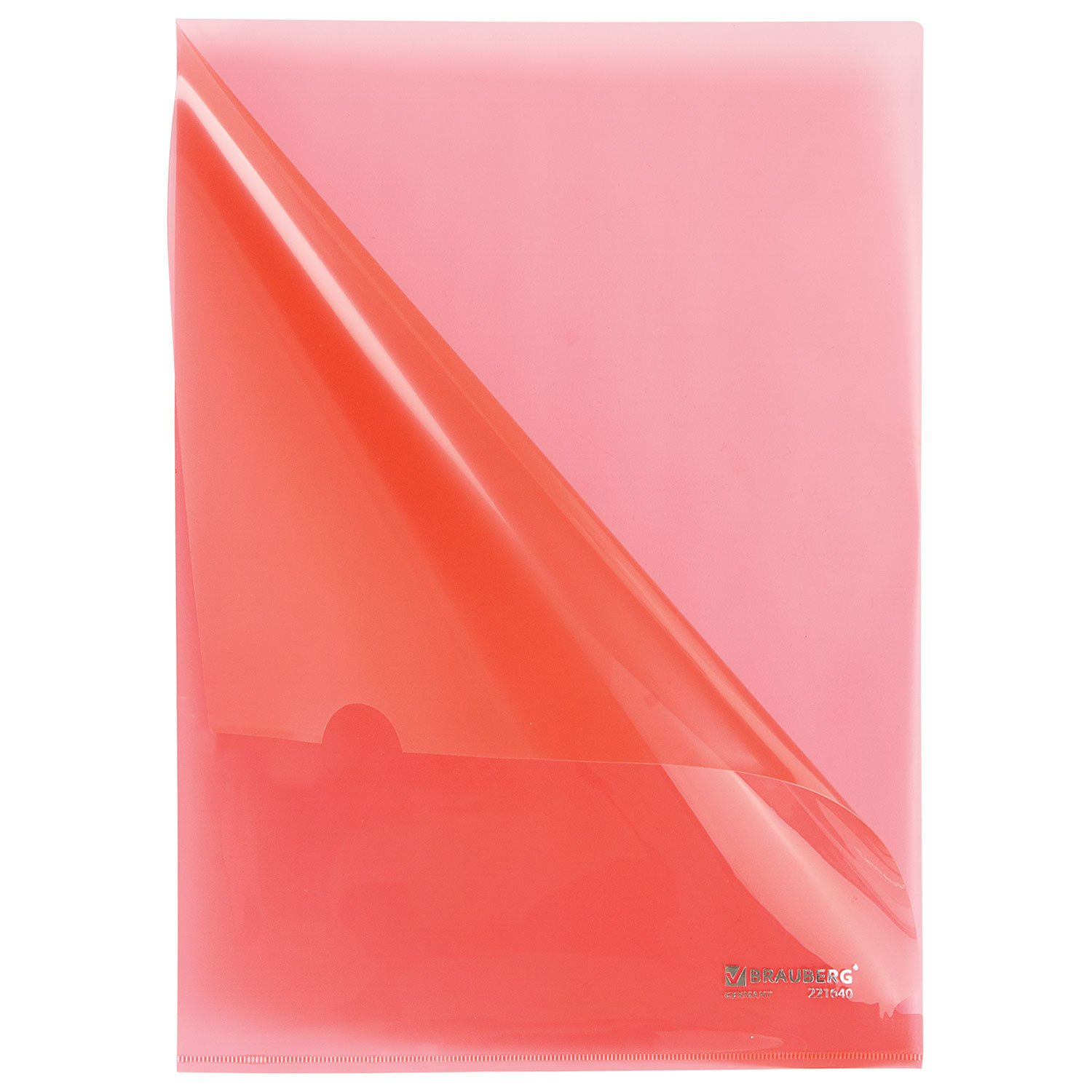 Папка-уголок жесткая прозрачная А4 BRAUBERG UNIVERSAL, красная, 0,15 мм, 273052