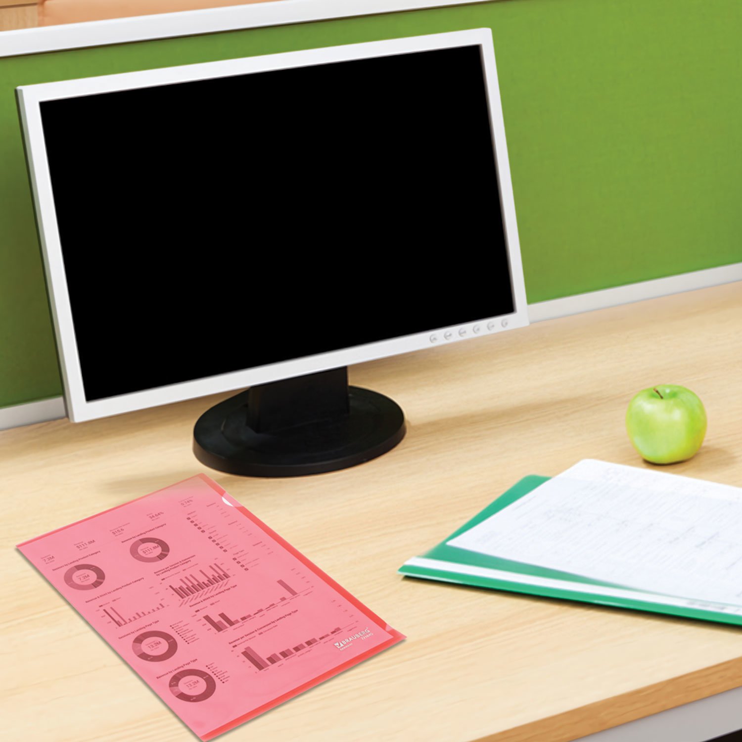 Папка-уголок жесткая BRAUBERG, зеленая, 0,15 мм, 221639