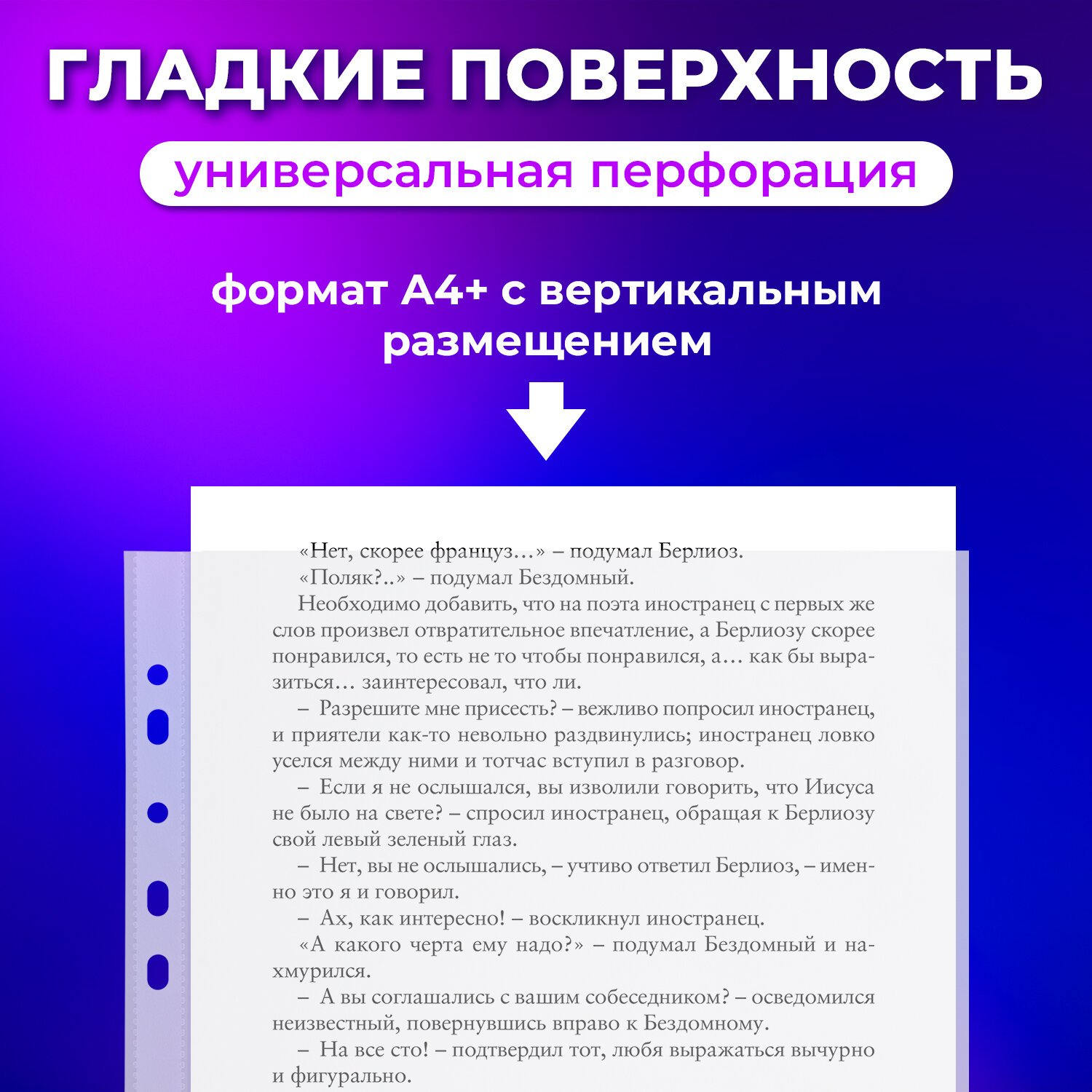 Папки-файлы перфорированные А4+ BRAUBERG, КОМПЛЕКТ 50 шт., матовые, СВЕРХПРОЧНЫЕ, 100 мкм, 225219