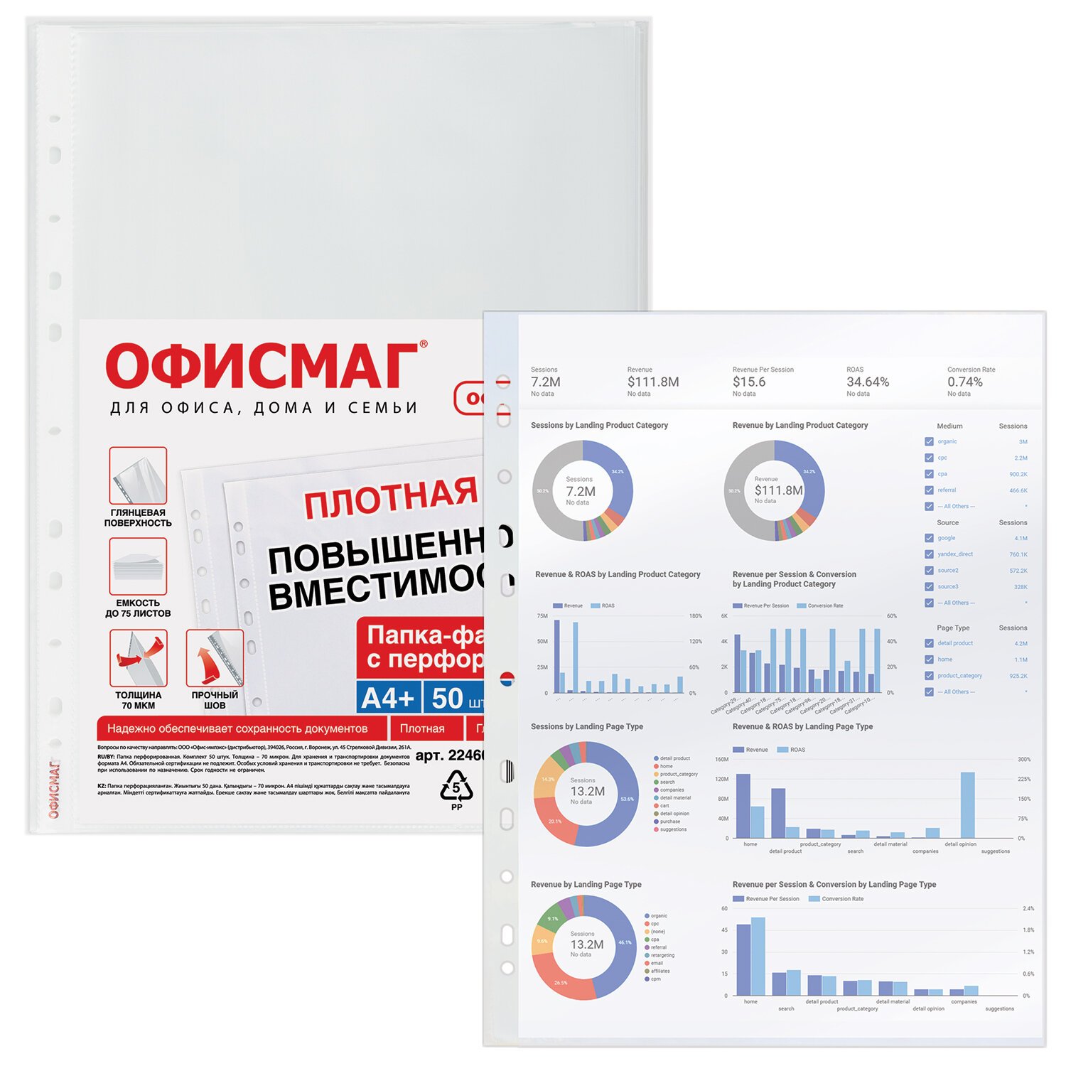 Папки-файлы перфорированные А4+ ОФИСМАГ, КОМПЛЕКТ 50 шт., гладкие, ПЛОТНЫЕ, 70 мкм, 224602