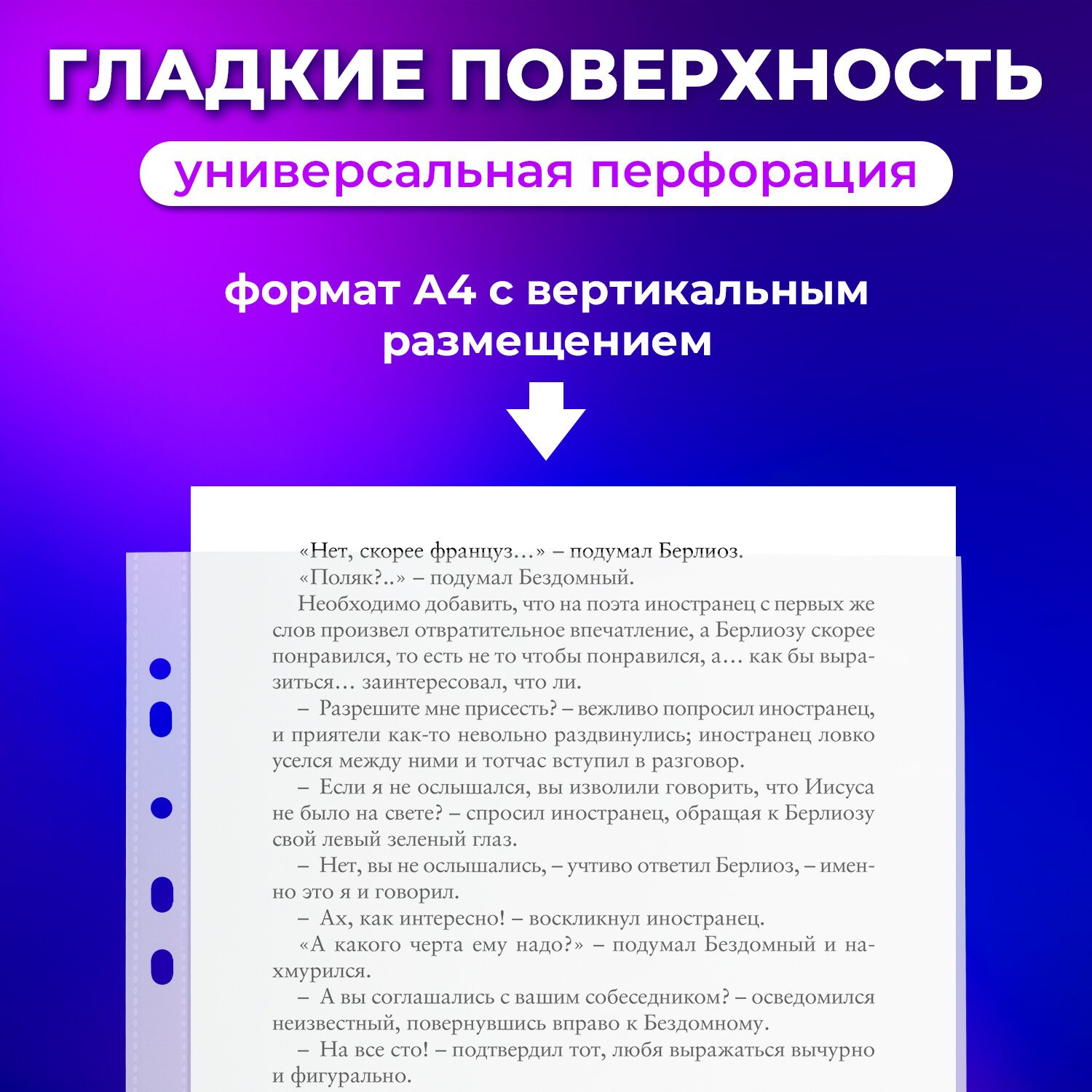 Папки-файлы перфорированные А4 BRAUBERG "МАТОВЫЕ EXTRA 600", КОМПЛЕКТ 100 шт., ПЛОТНЫЕ, 60 мкм, 229664
