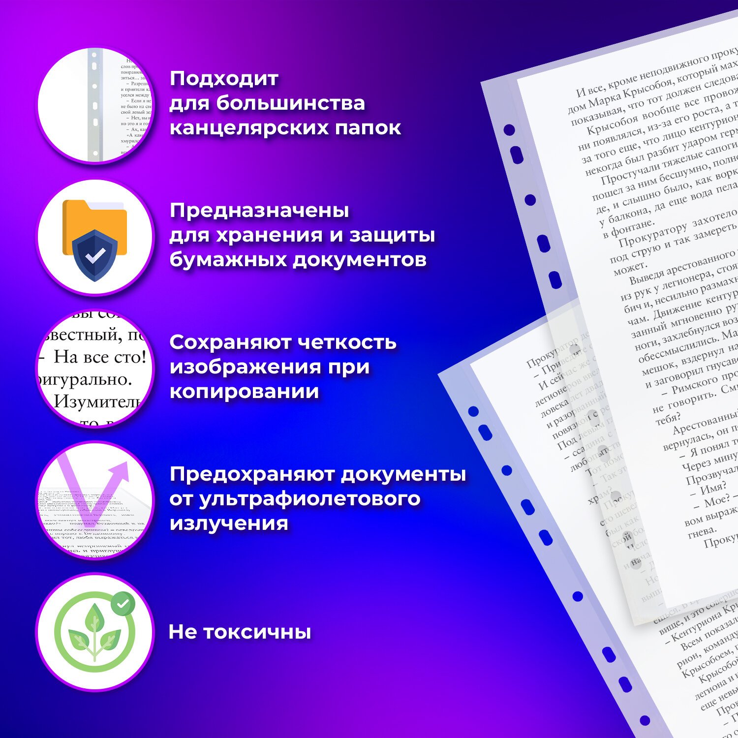 Перфорированные папки-файлы ОФИСМАГ "Стандарт" предназначены для хранения и защиты бумажных документов от загрязнения и механических повреждений.