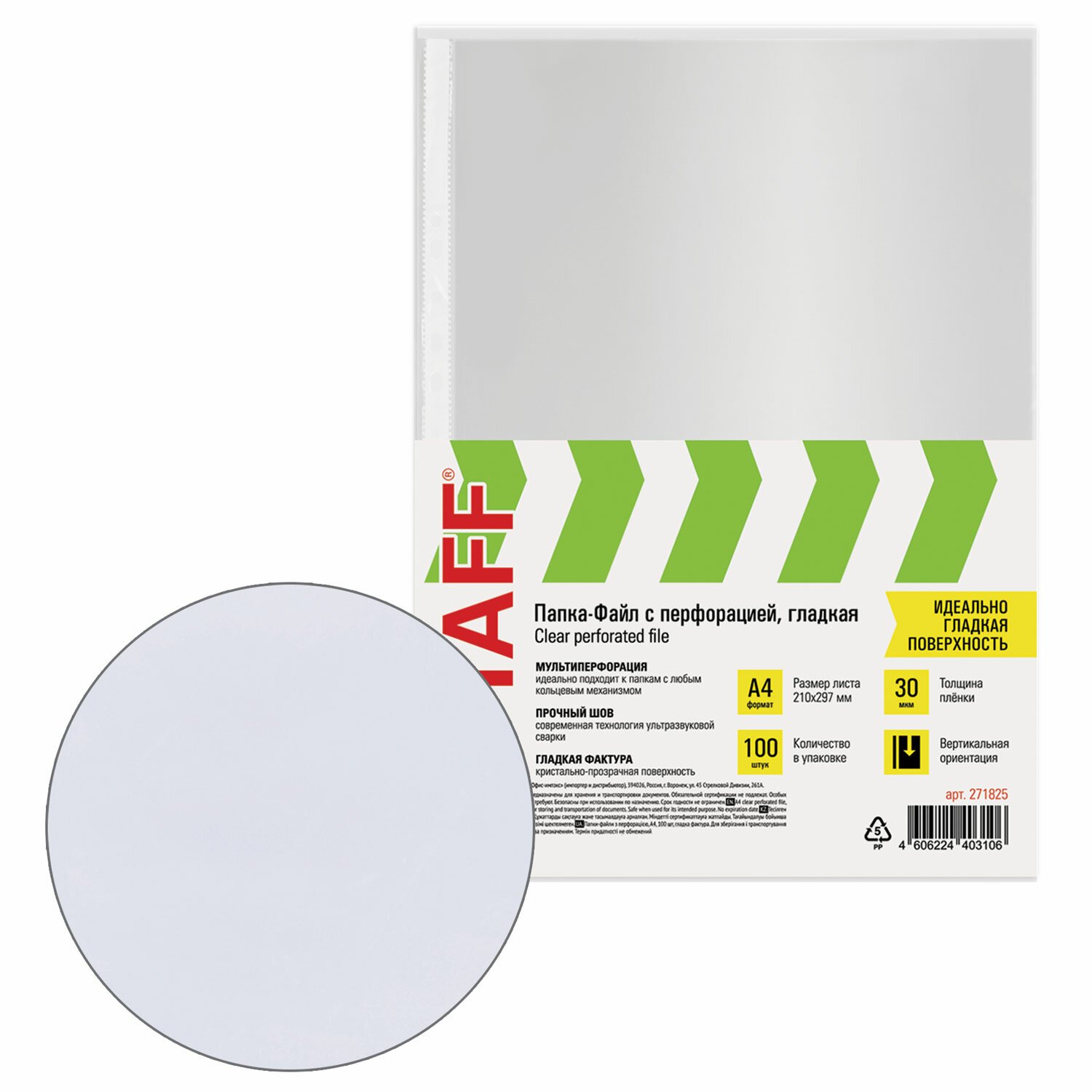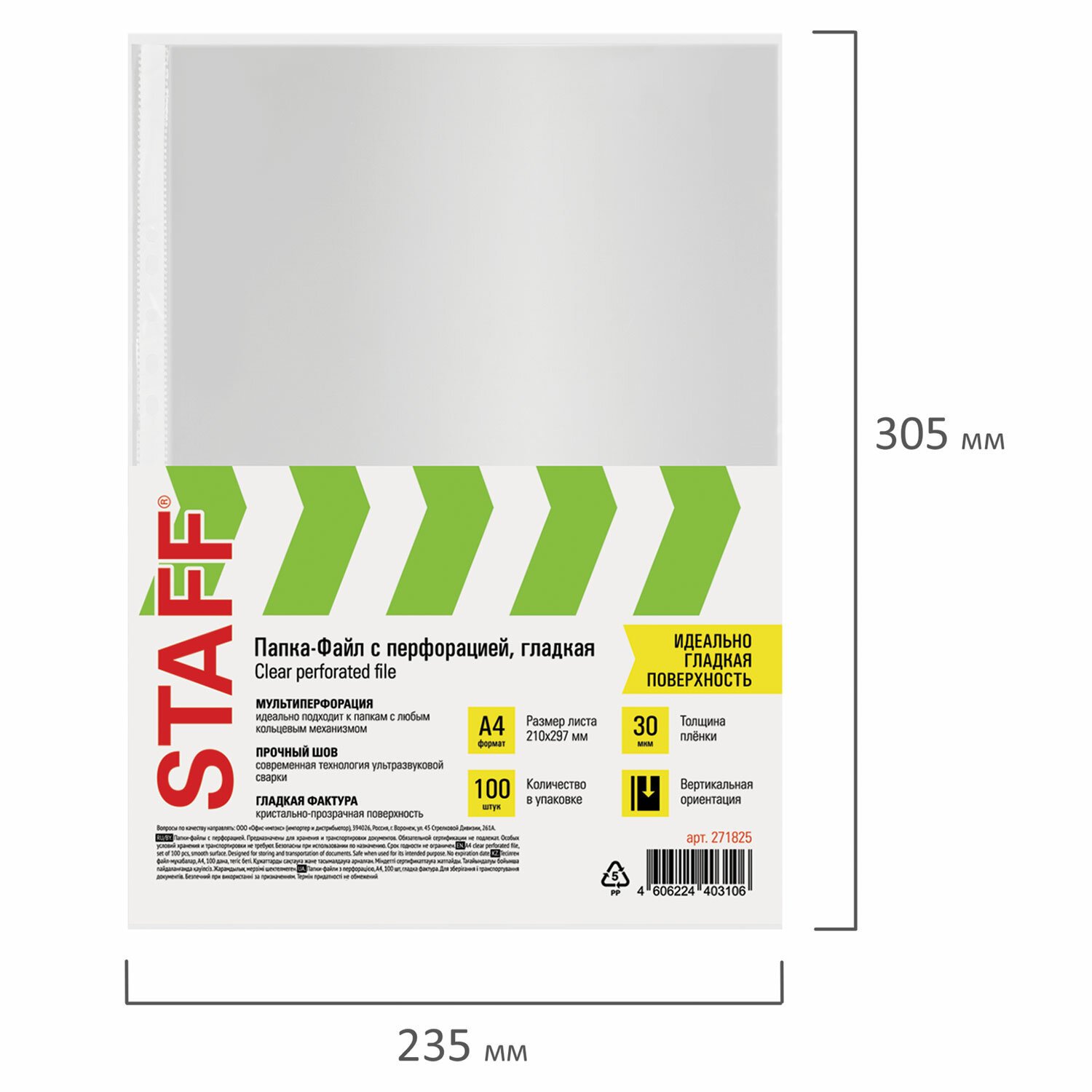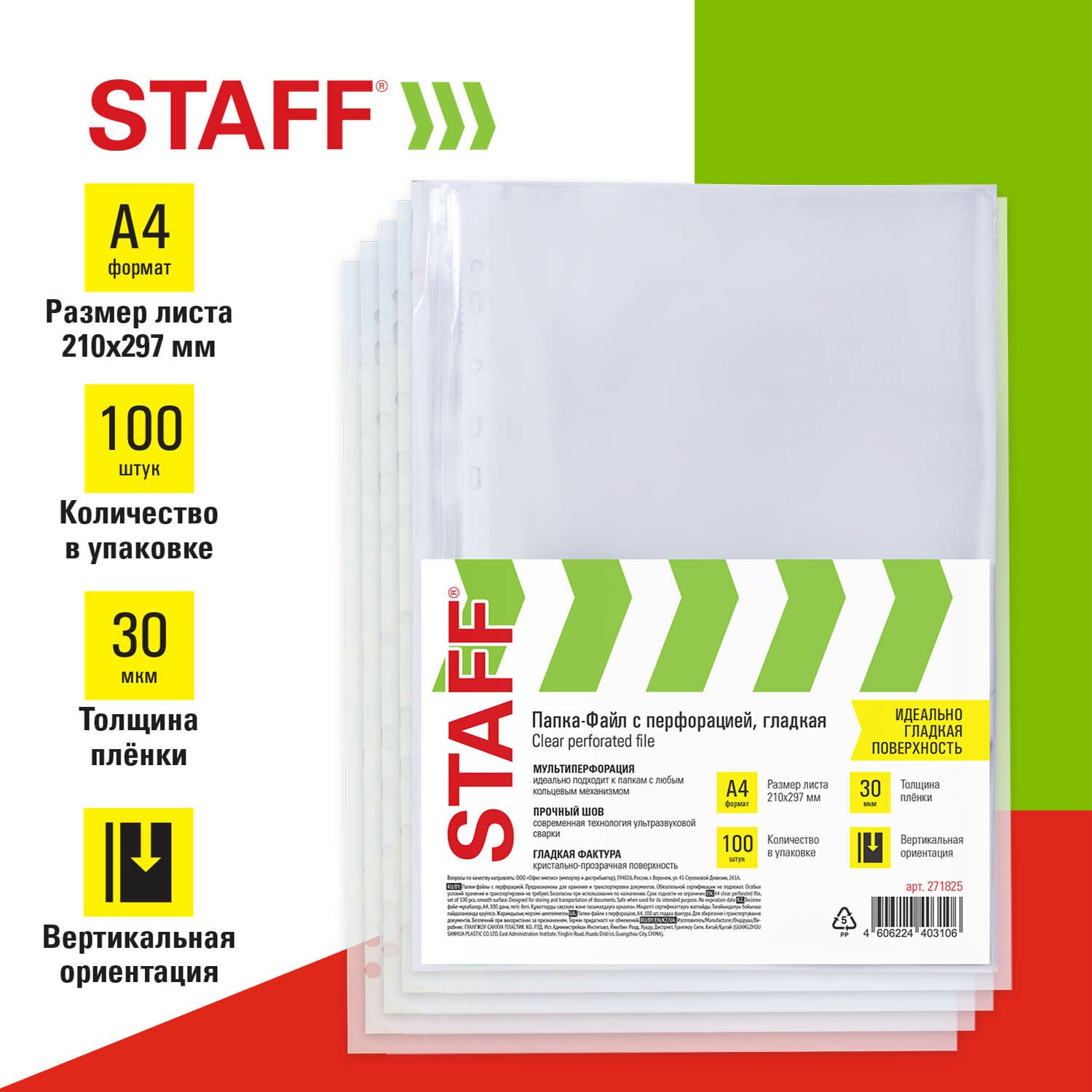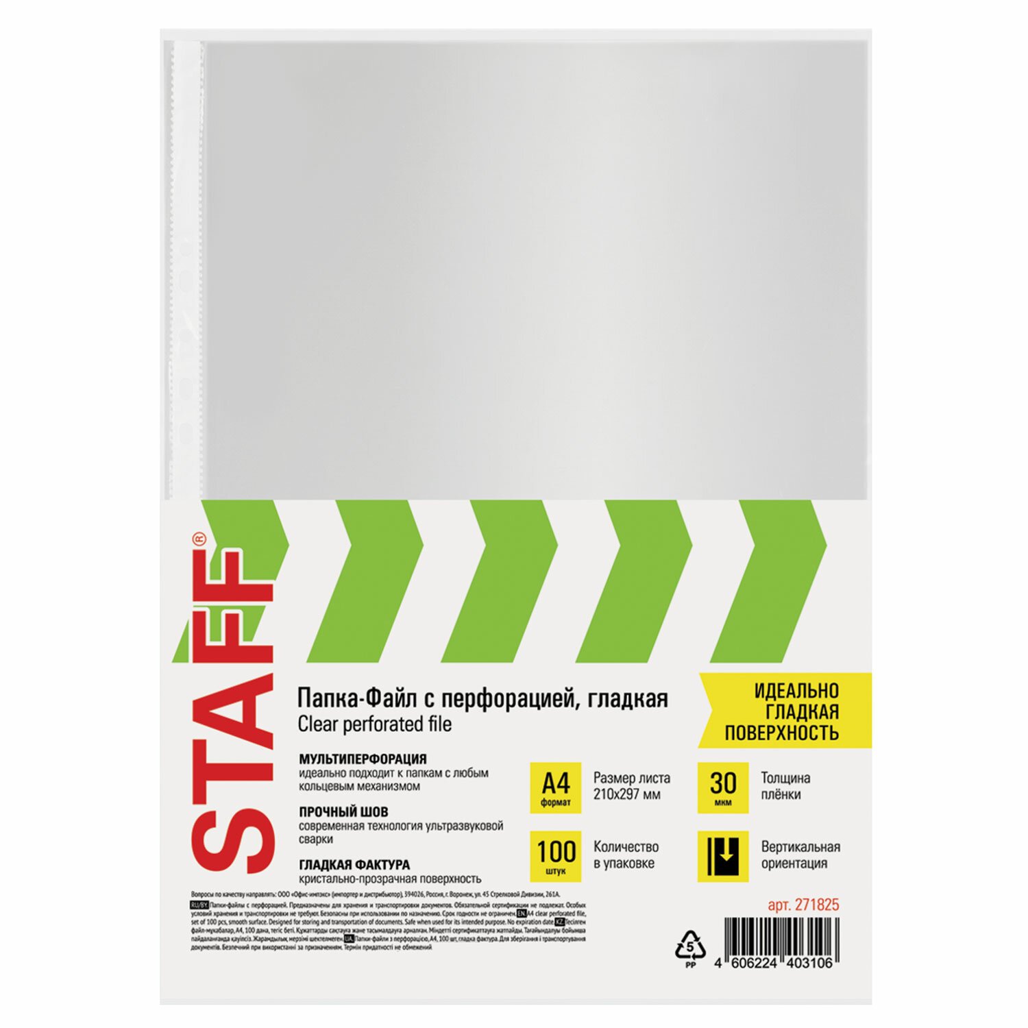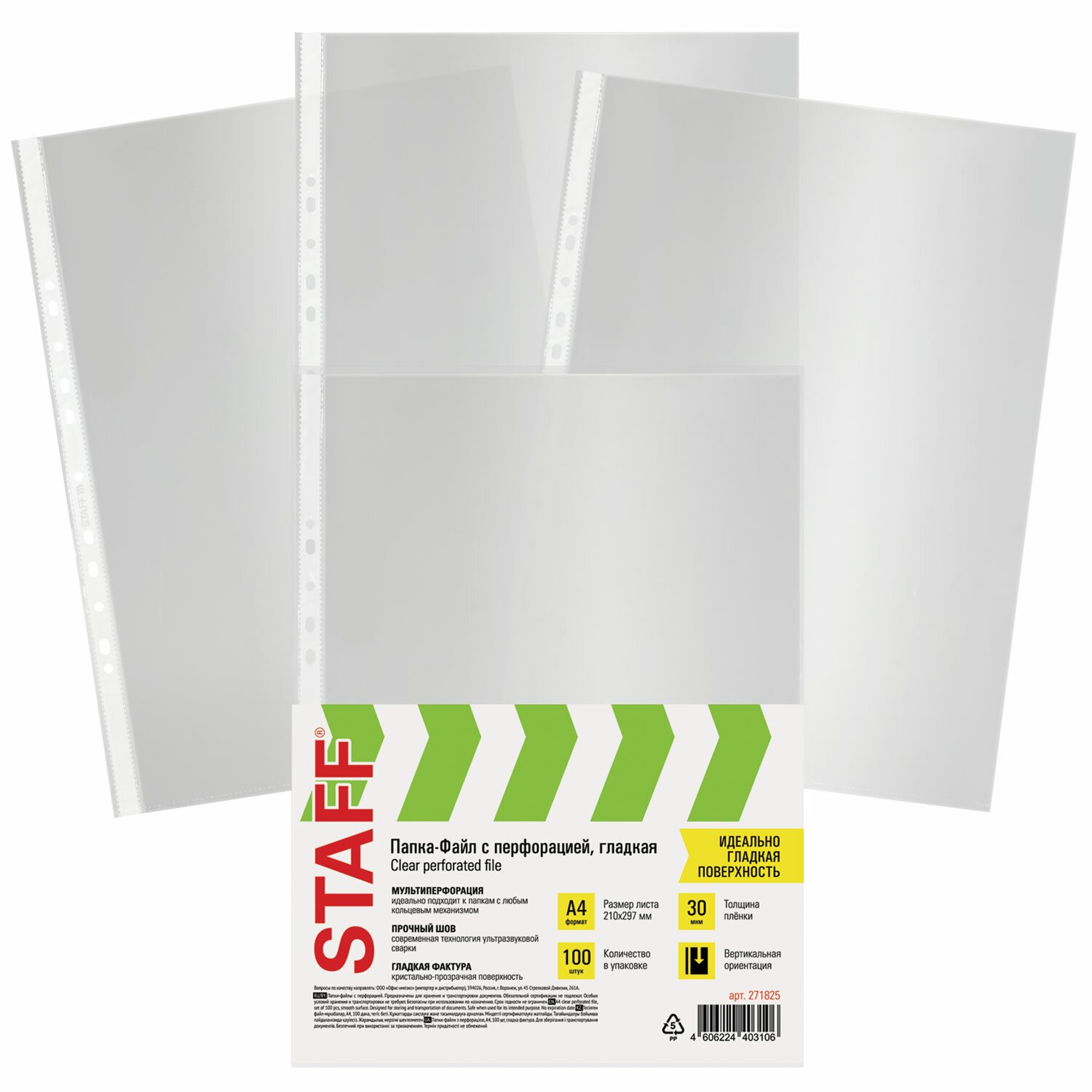 Папки-файлы перфорированные А4 STAFF ЭКОНОМ, КОМПЛЕКТ 100 шт., матовые, 30 мкм, 273002