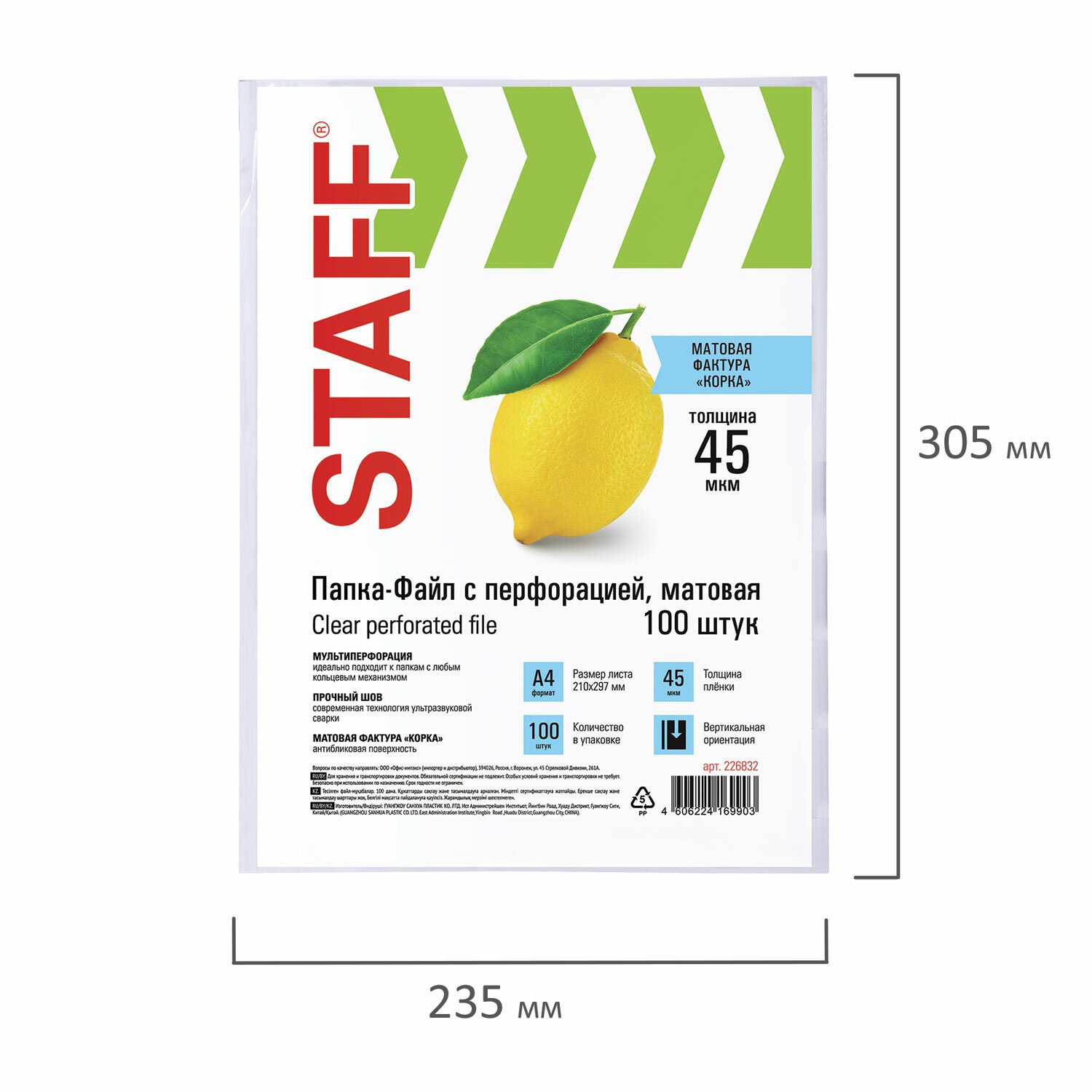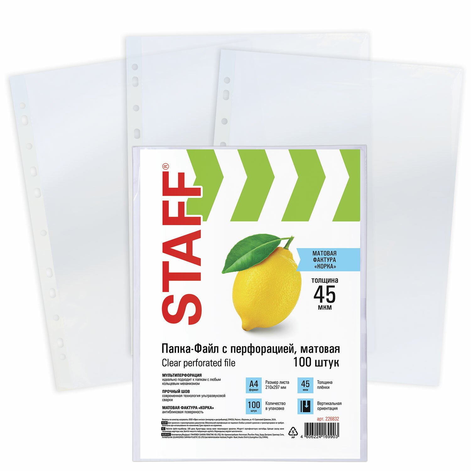 Папки-файлы перфорированные, А4, STAFF "ЭКОНОМ", КОМПЛЕКТ 100 шт., матовые, 45 мкм, 226832