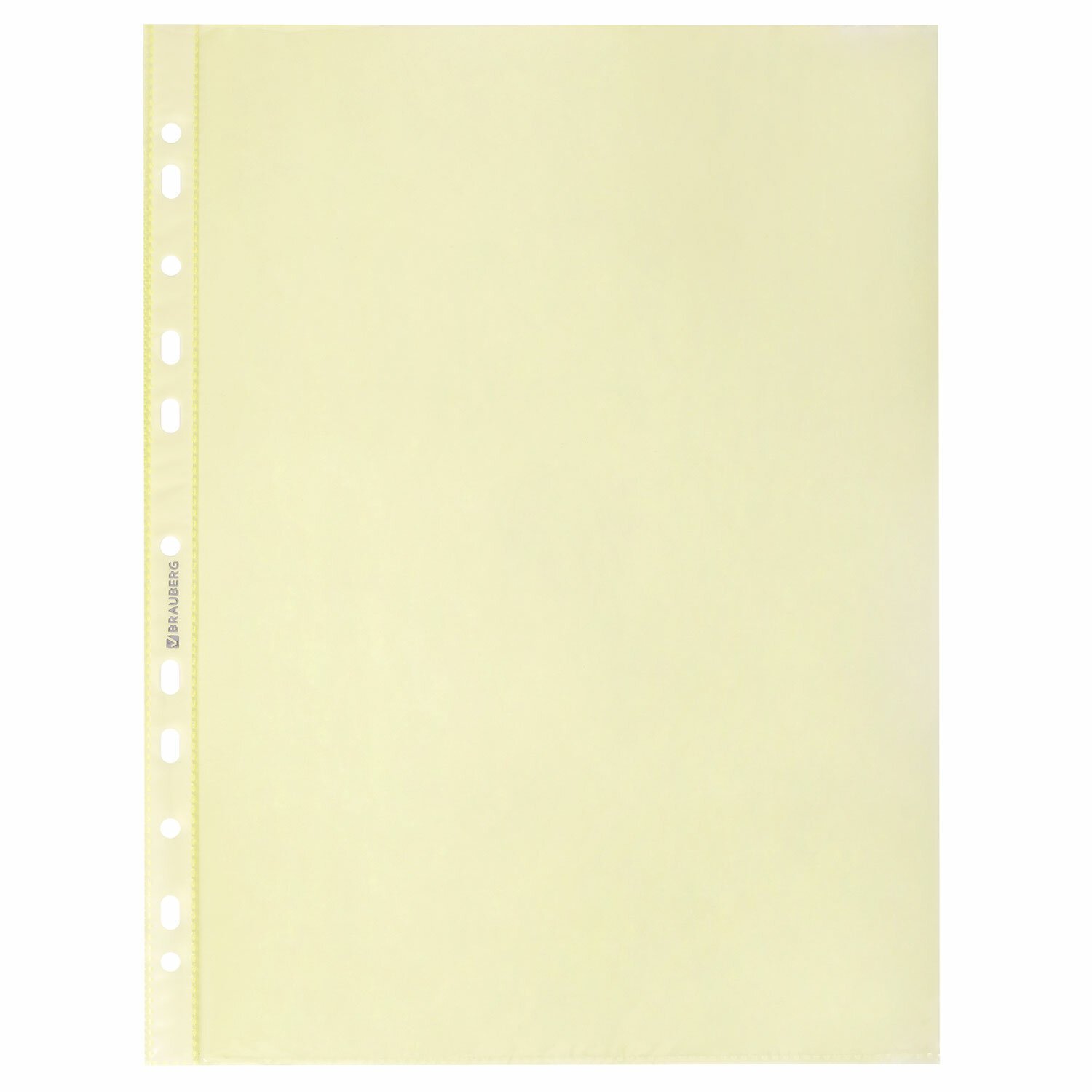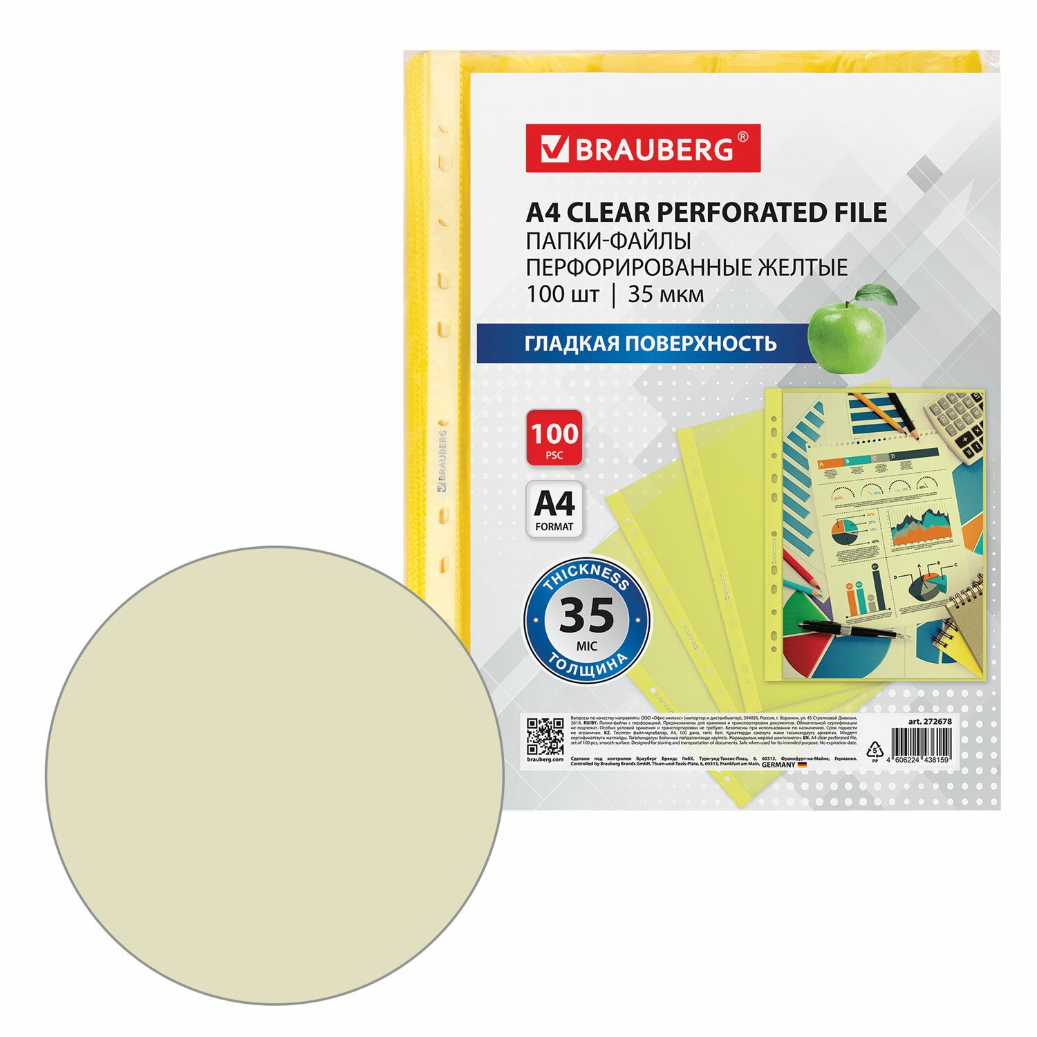 Папки-файлы перфорированные ЖЕЛТЫЕ А4 BRAUBERG, комплект 100 шт., гладкие, 35 мкм, 272678