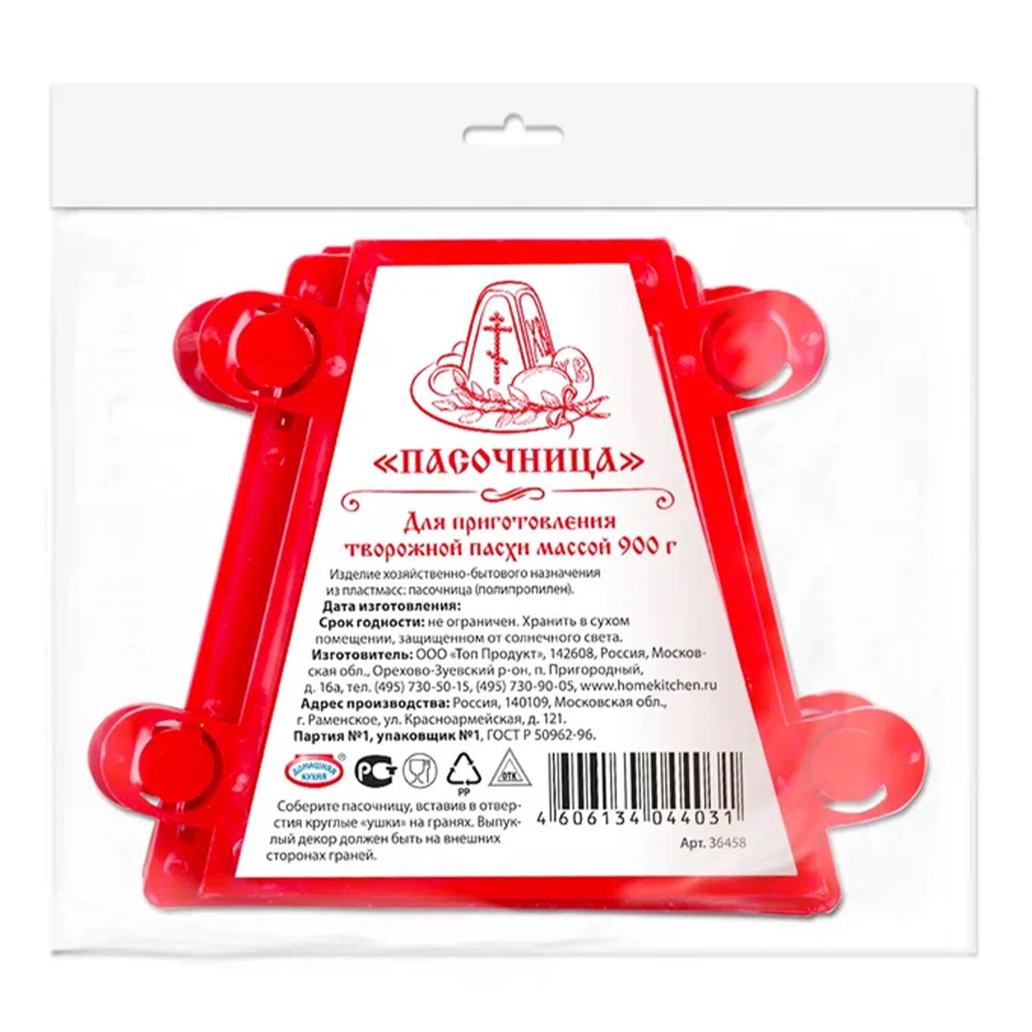 Пасочница пасхальная объёмом 900 гр (размеры 18х18х18см, в сложенном виде 18х2х18) выполнена из пластика ярко-красного цвета - красиво, торжественно и по-домашнему тепло.