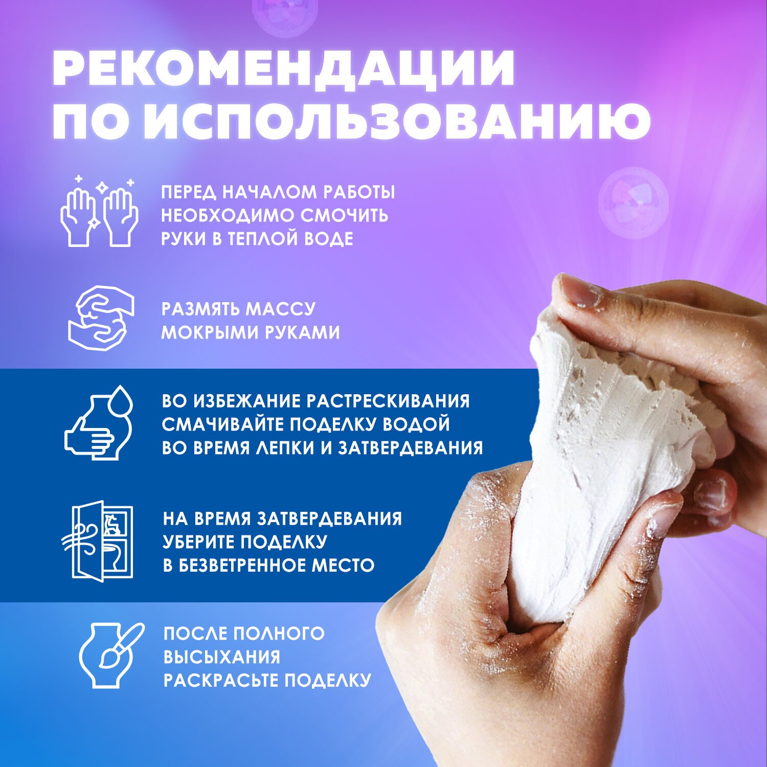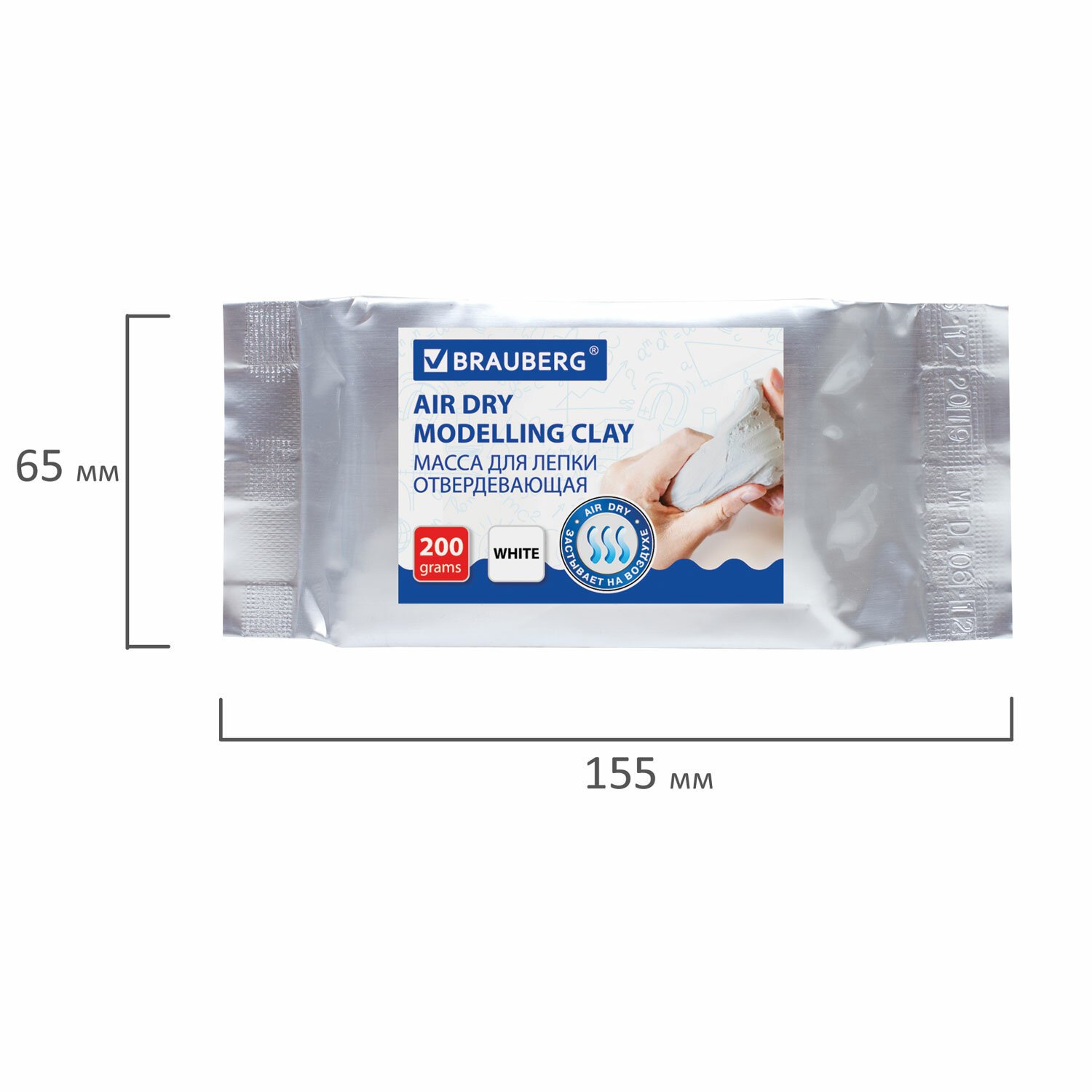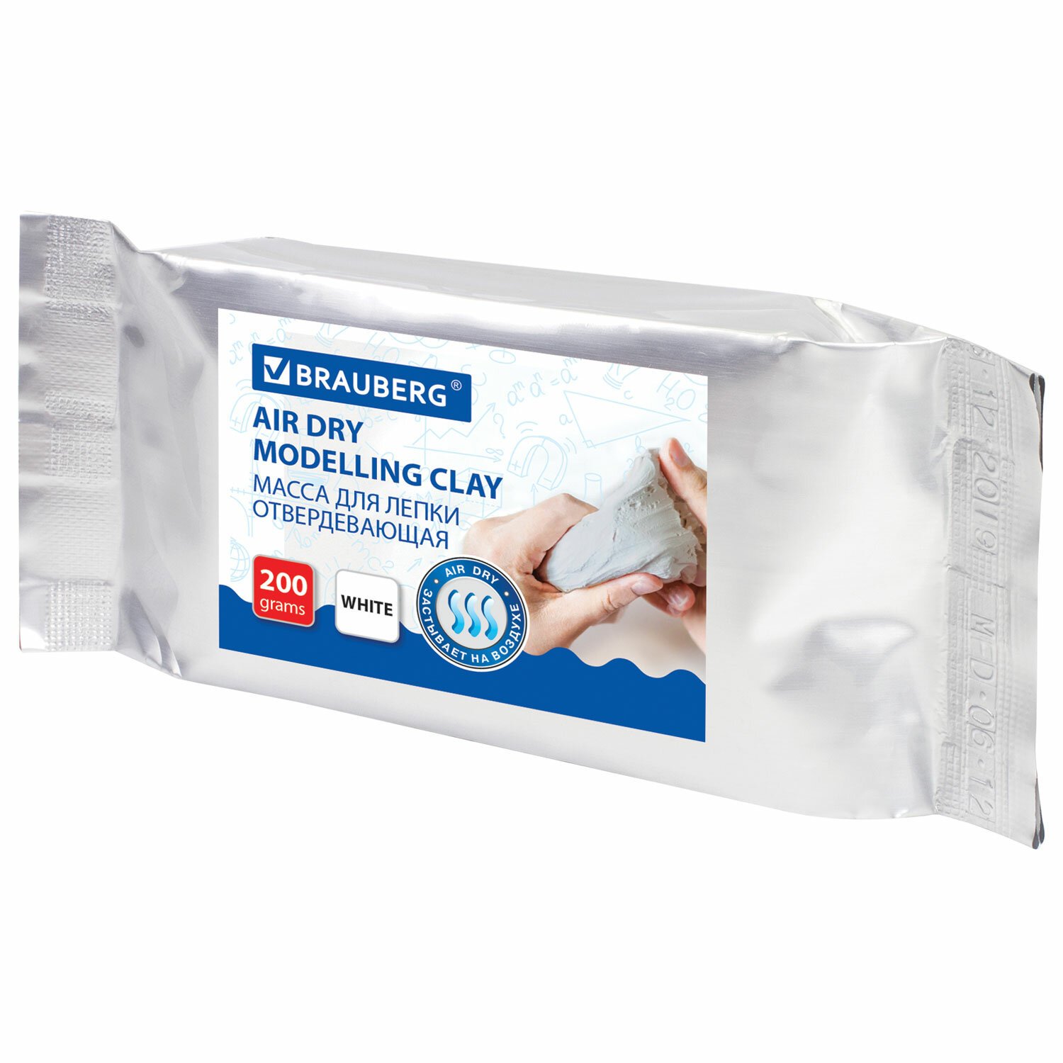Масса для лепки BRAUBERG белого цвета фасовкой 200 грамм упакована в герметичную фольгированную упаковку, что позволяет хранить товар в течение длительного времени. Масса очень податлива: моделируется руками, пластична, легко лепится, раскатывается, режется, принимает любую форму. При необходимости можно использовать инструменты. Чтобы избежать появление трещин на изделии после застывания, необходимо работать с массой влажными руками. Затвердевает на воздухе, после высыхания становится очень прочной, не усаживается.