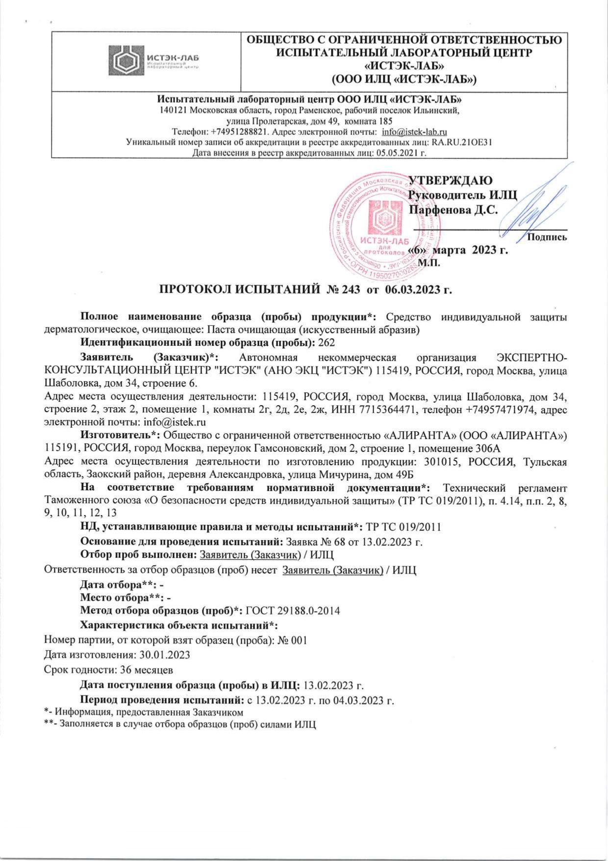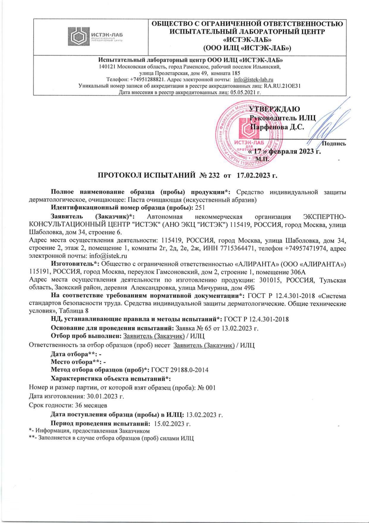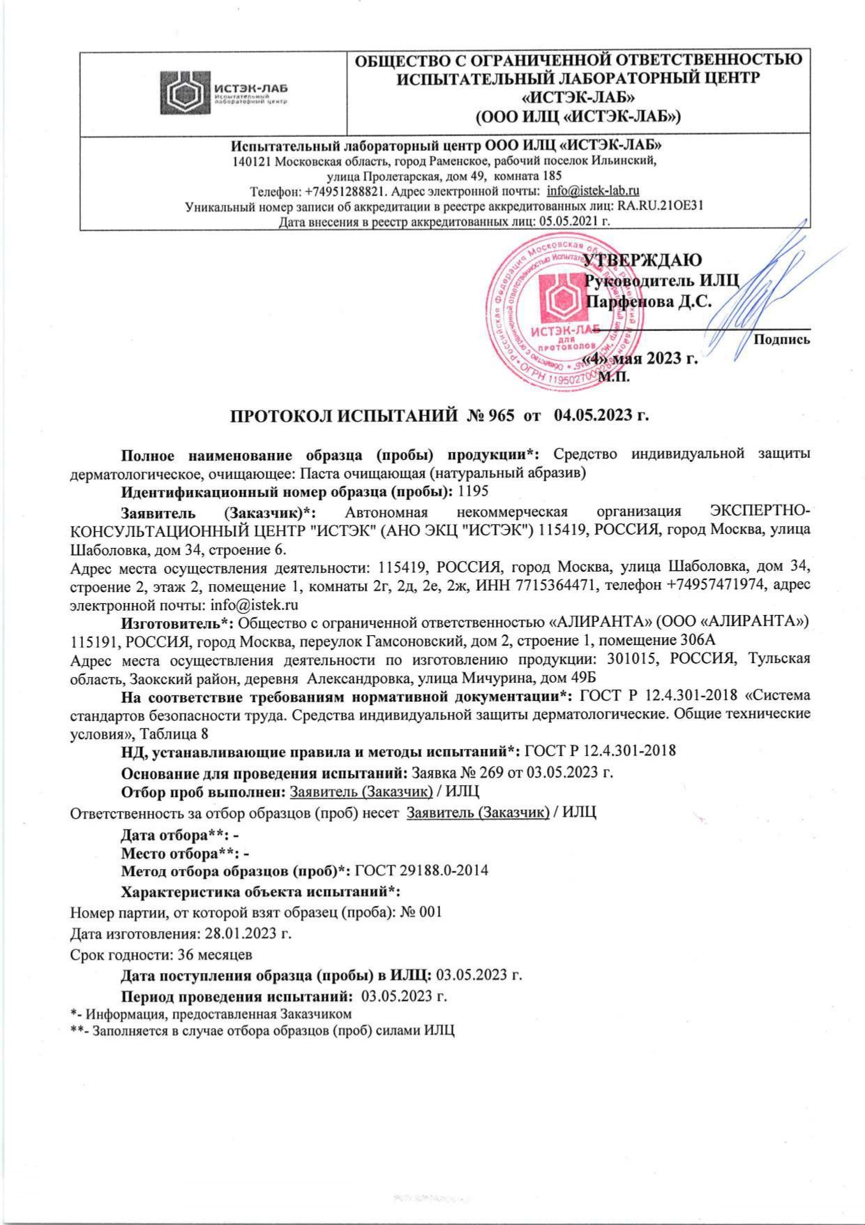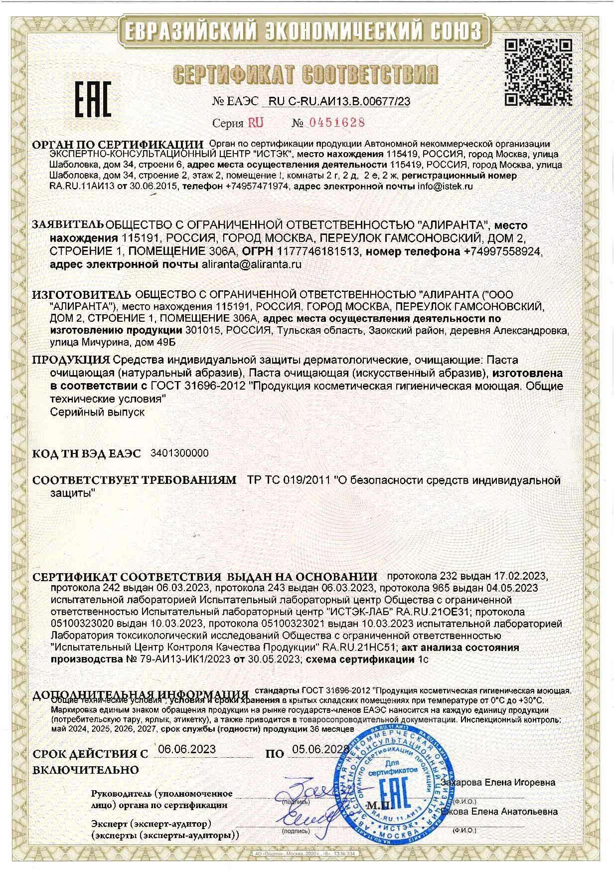 Паста очищающая АЛИРАНТА с натуральным абразивом предназначена для бережной очистки кожи от промышленных и бытовых загрязнений: масел, смазок, жиров, графита, сажи, лаков, силиконов.