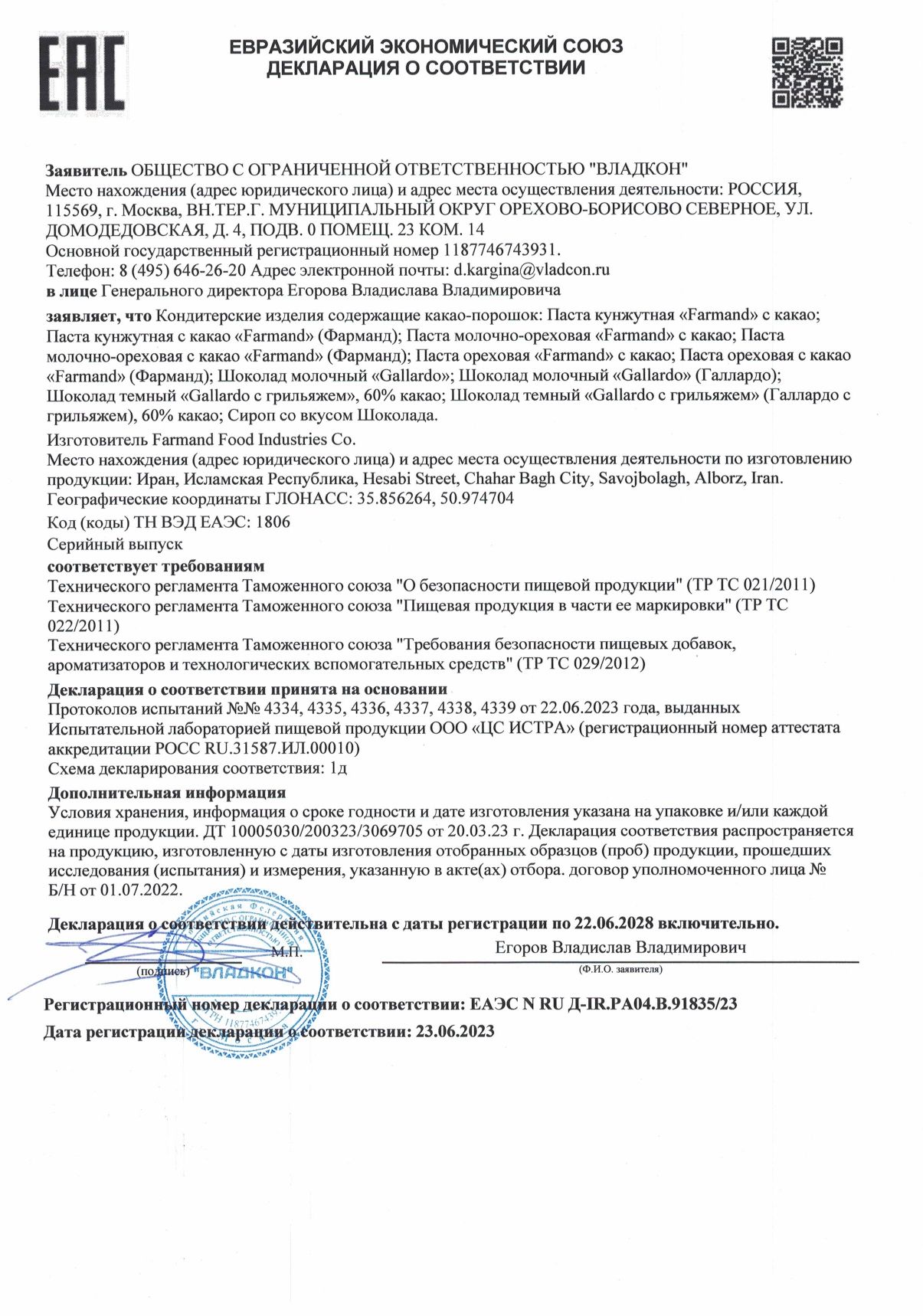 Паста шоколадная FARMAND, молочно-ореховая с фундуком, 330 г, C01031001010