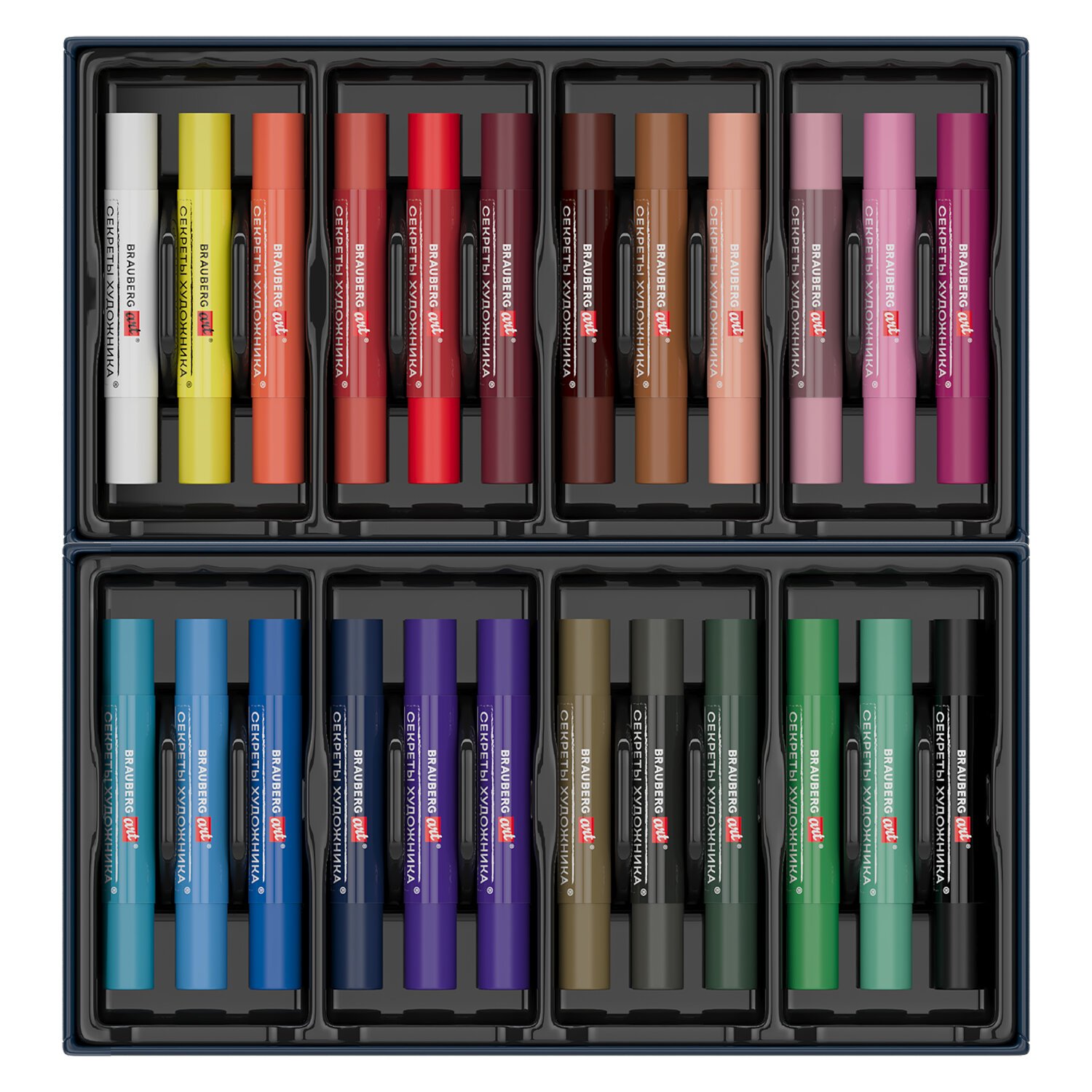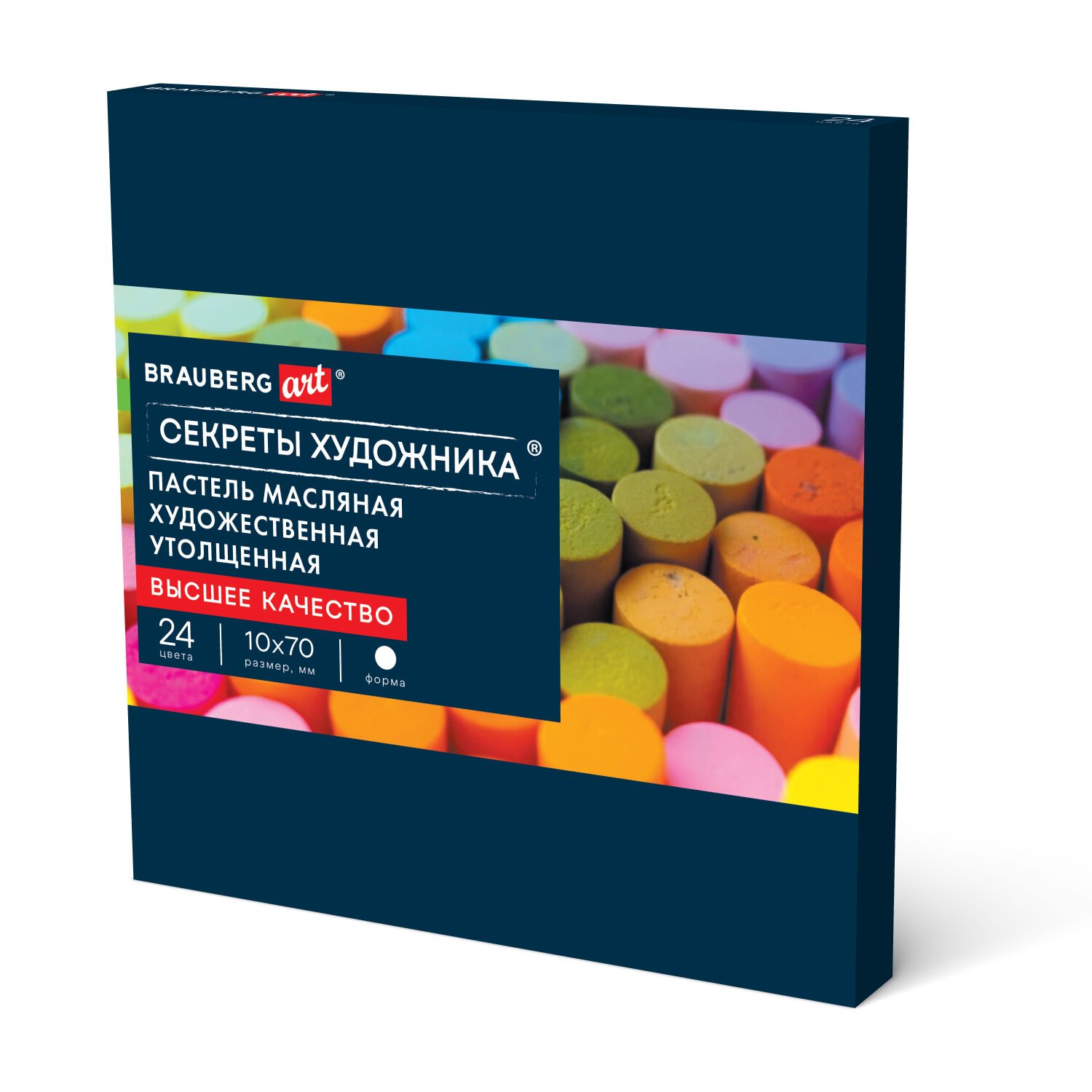 Пастель масляная BRAUBERG ART "Секреты художника", УТОЛЩЕННАЯ, 24 цвета, круглое сече, 182100