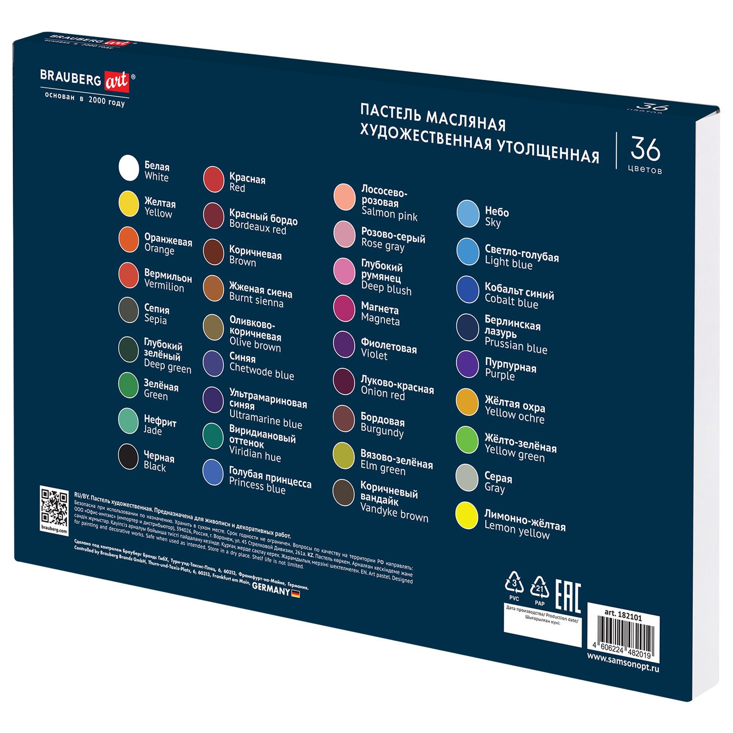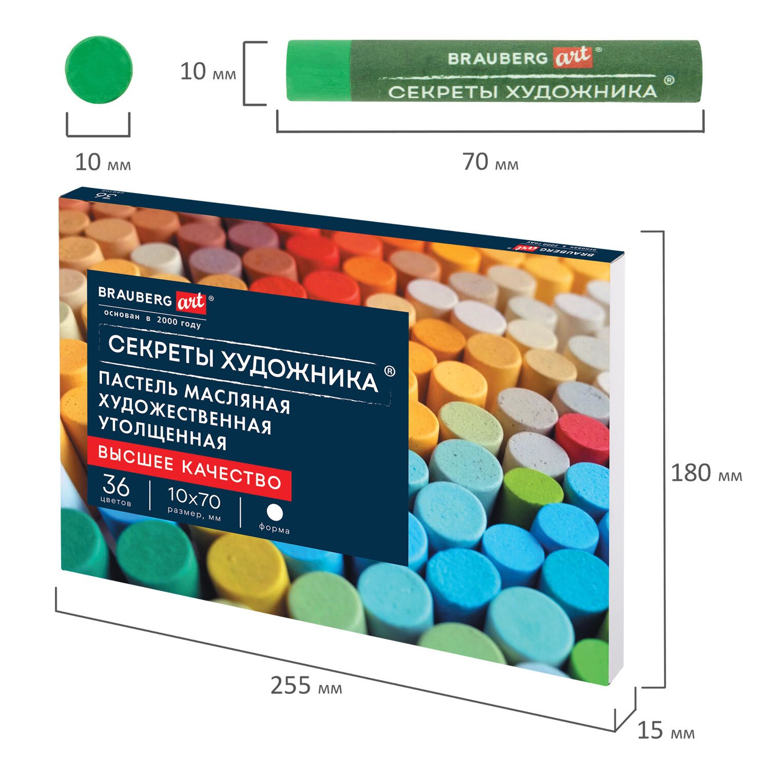 Пастель масляная BRAUBERG ART "Секреты художника", УТОЛЩЕННАЯ, 36 цветов, круглое сечение, 182001, 182101