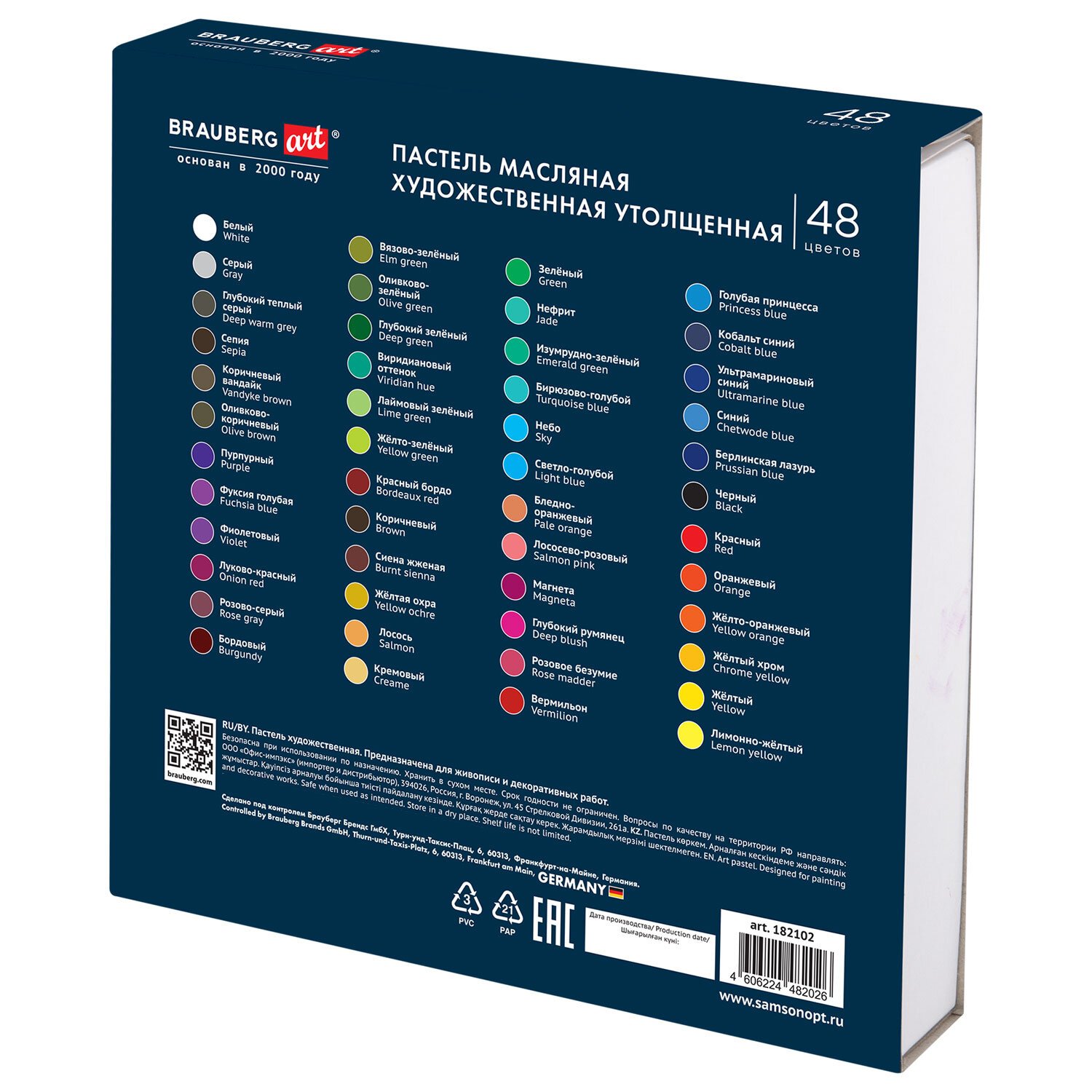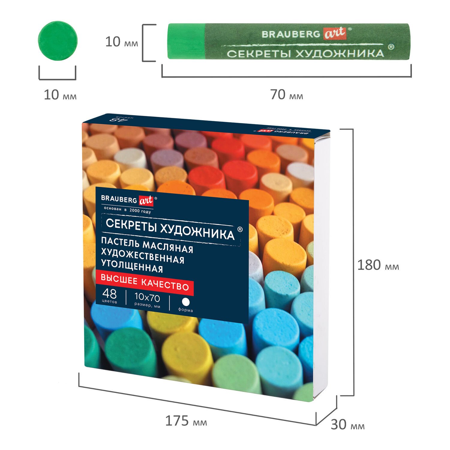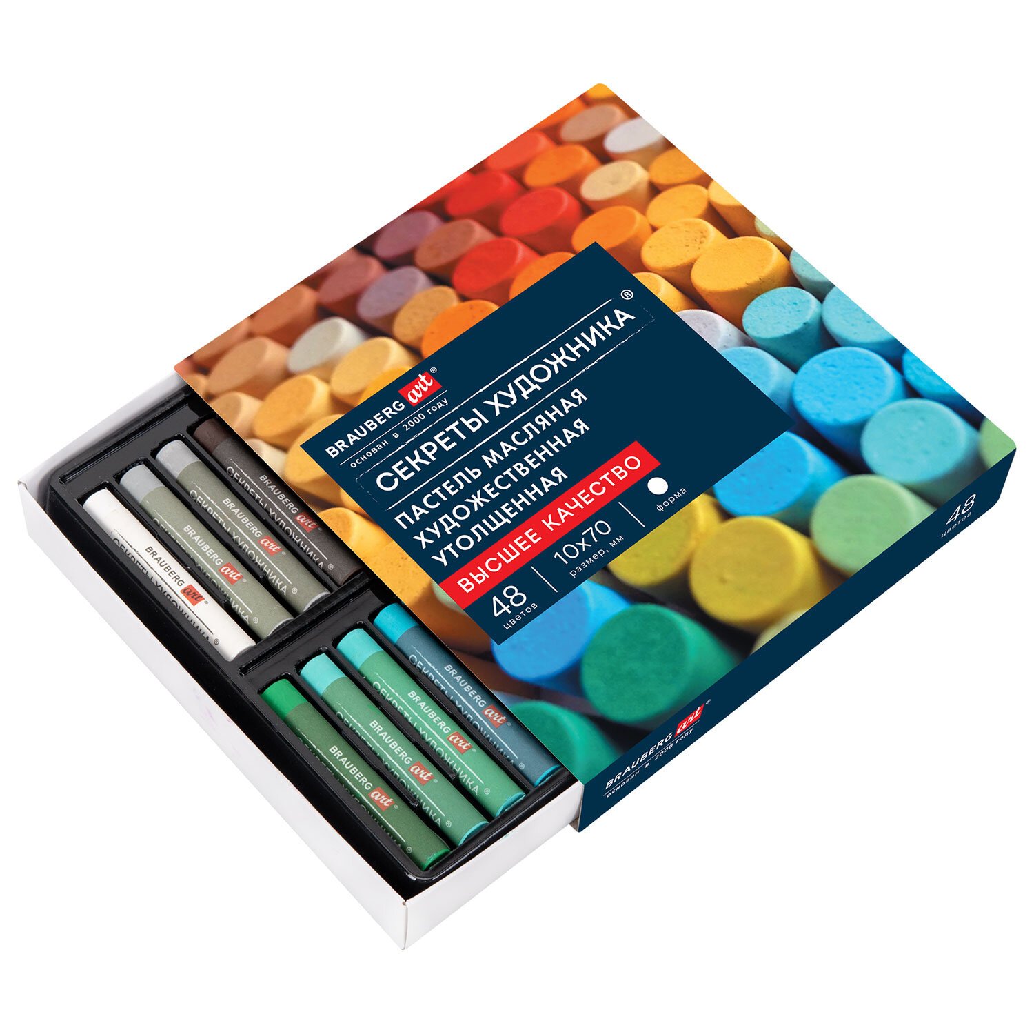 Пастель масляная BRAUBERG ART "Секреты художника", УТОЛЩЕННАЯ, 48 цветов, круглое сечение, 182102
