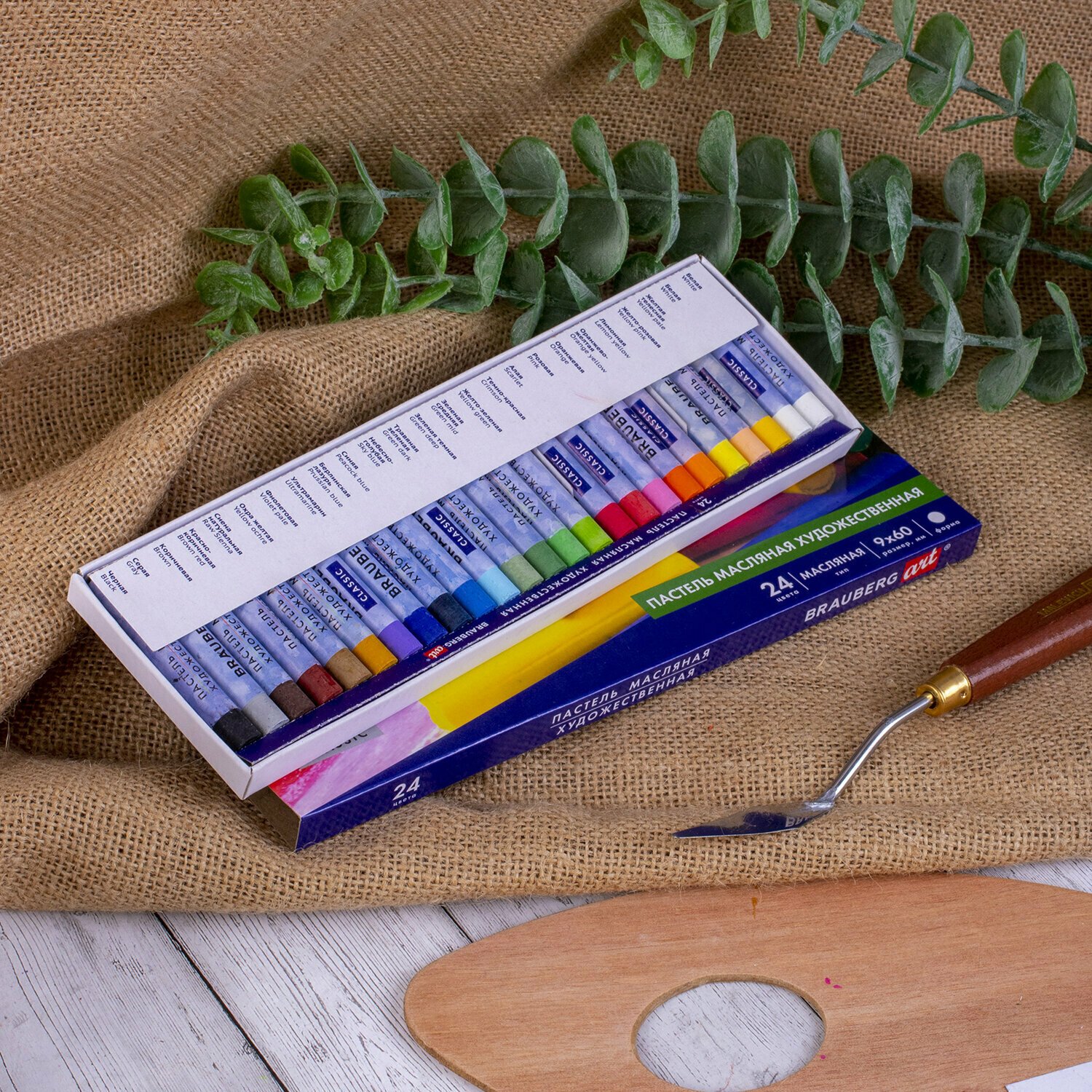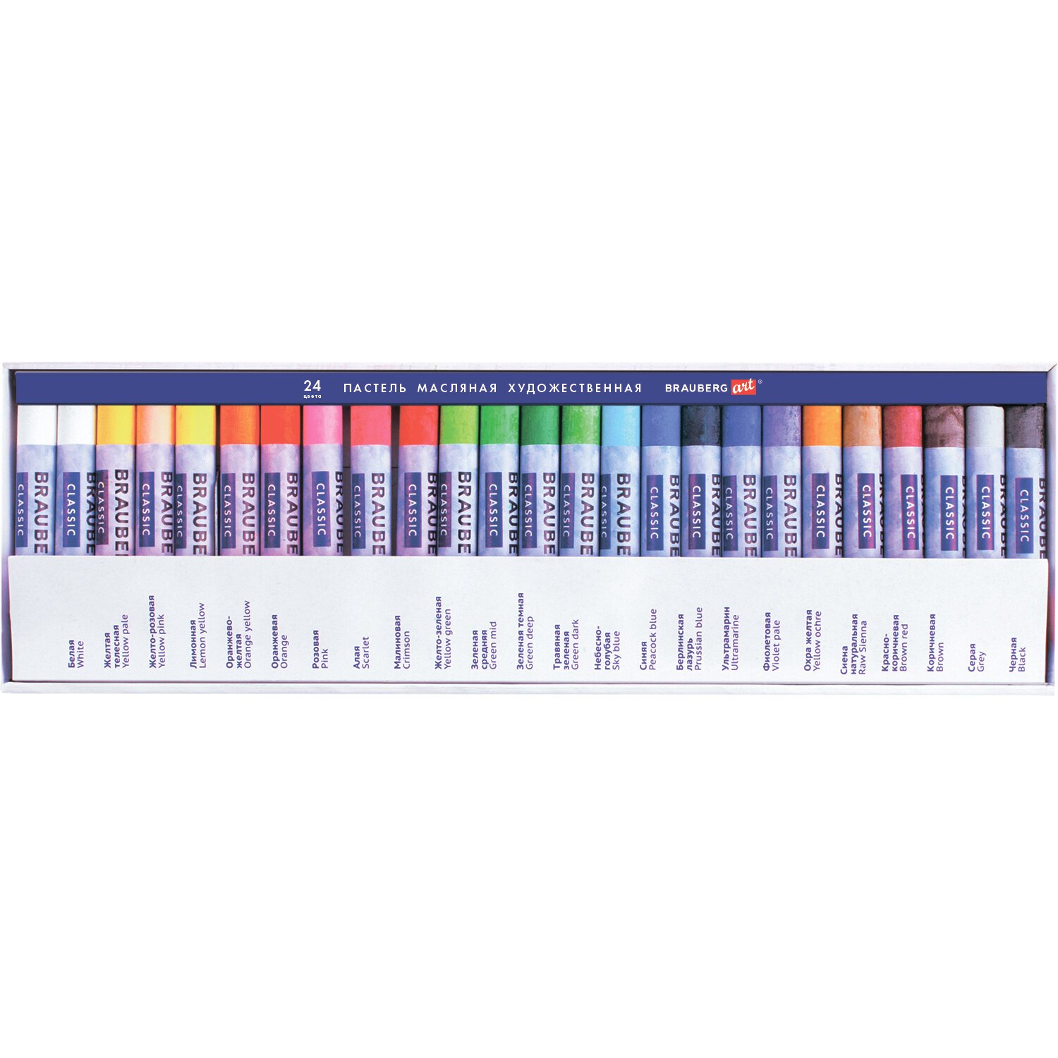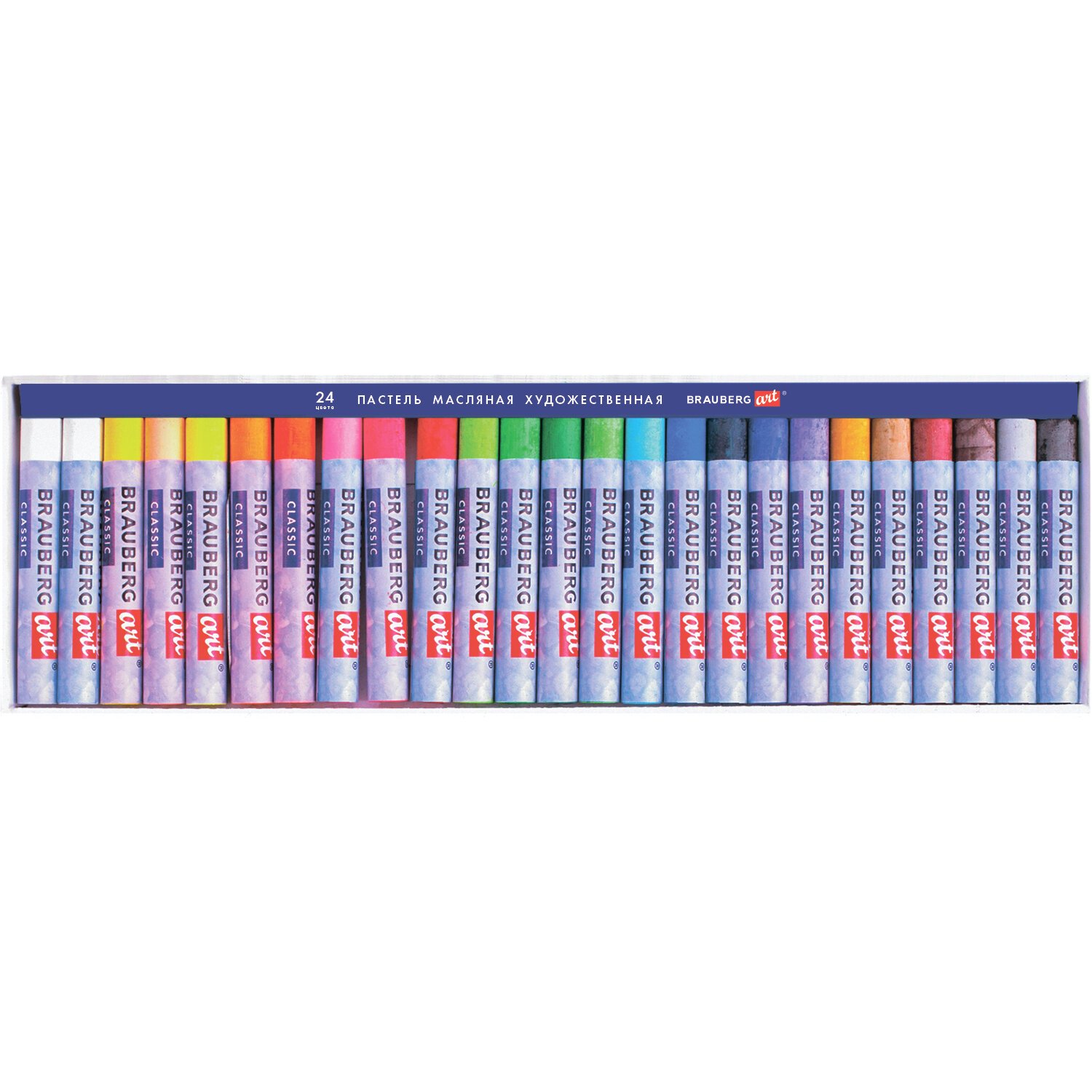 Пастель масляная художественная BRAUBERG ART CLASSIC, 24 цвета, круглое сечение, 181448
