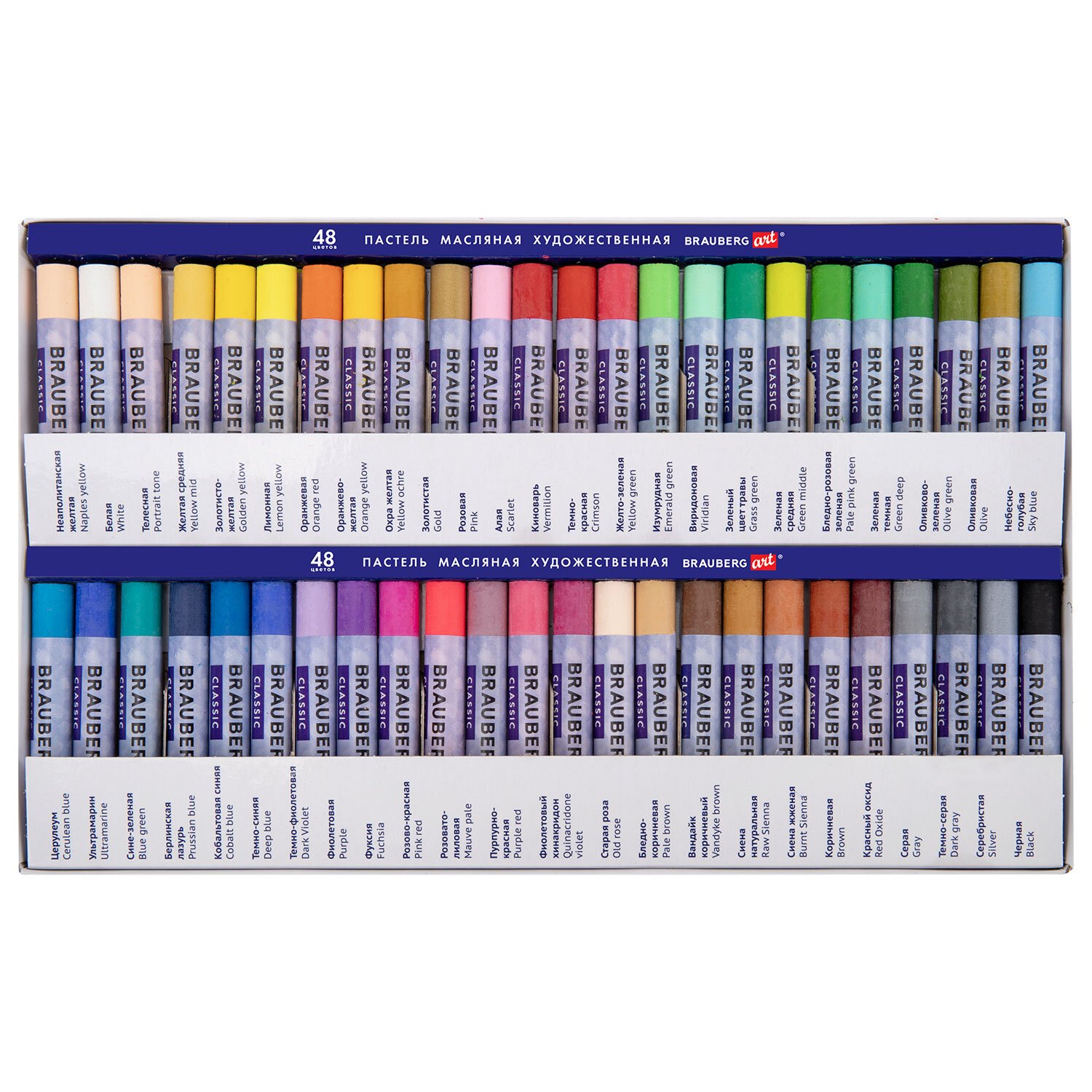 Пастель масляная художественная BRAUBERG ART CLASSIC, 48 цветов, круглое сечение, 182103