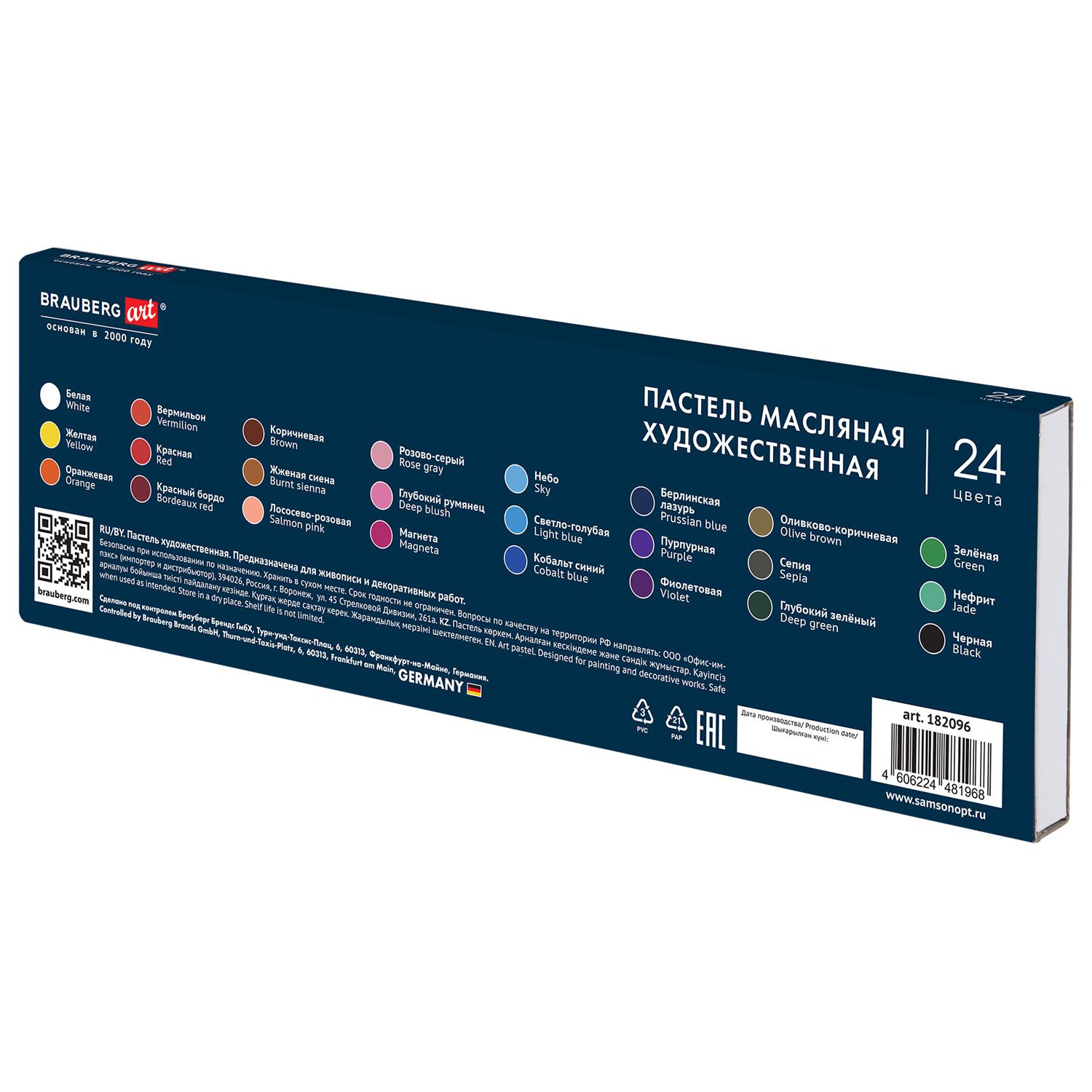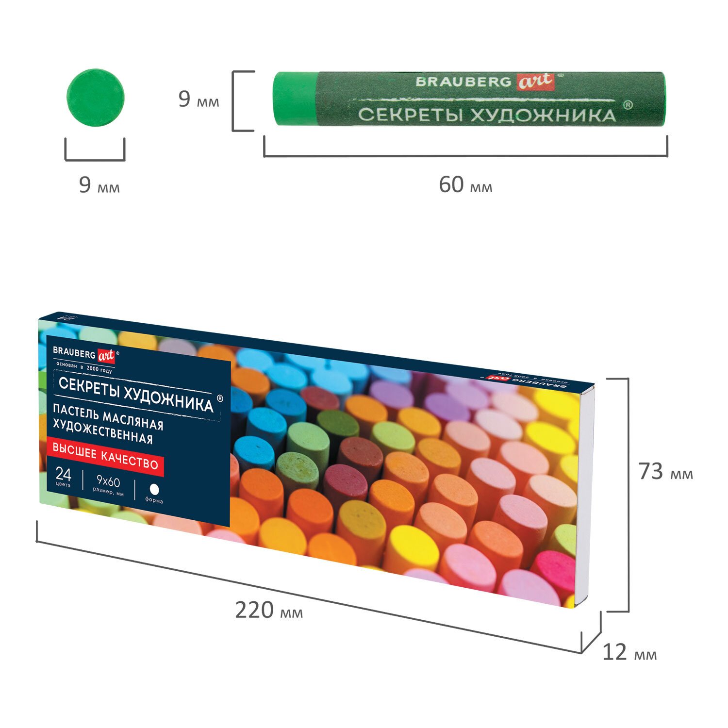 Пастель масляная BRAUBERG ART "Секреты художника", УТОЛЩЕННАЯ, 24 цвета, круглое сече, 182100