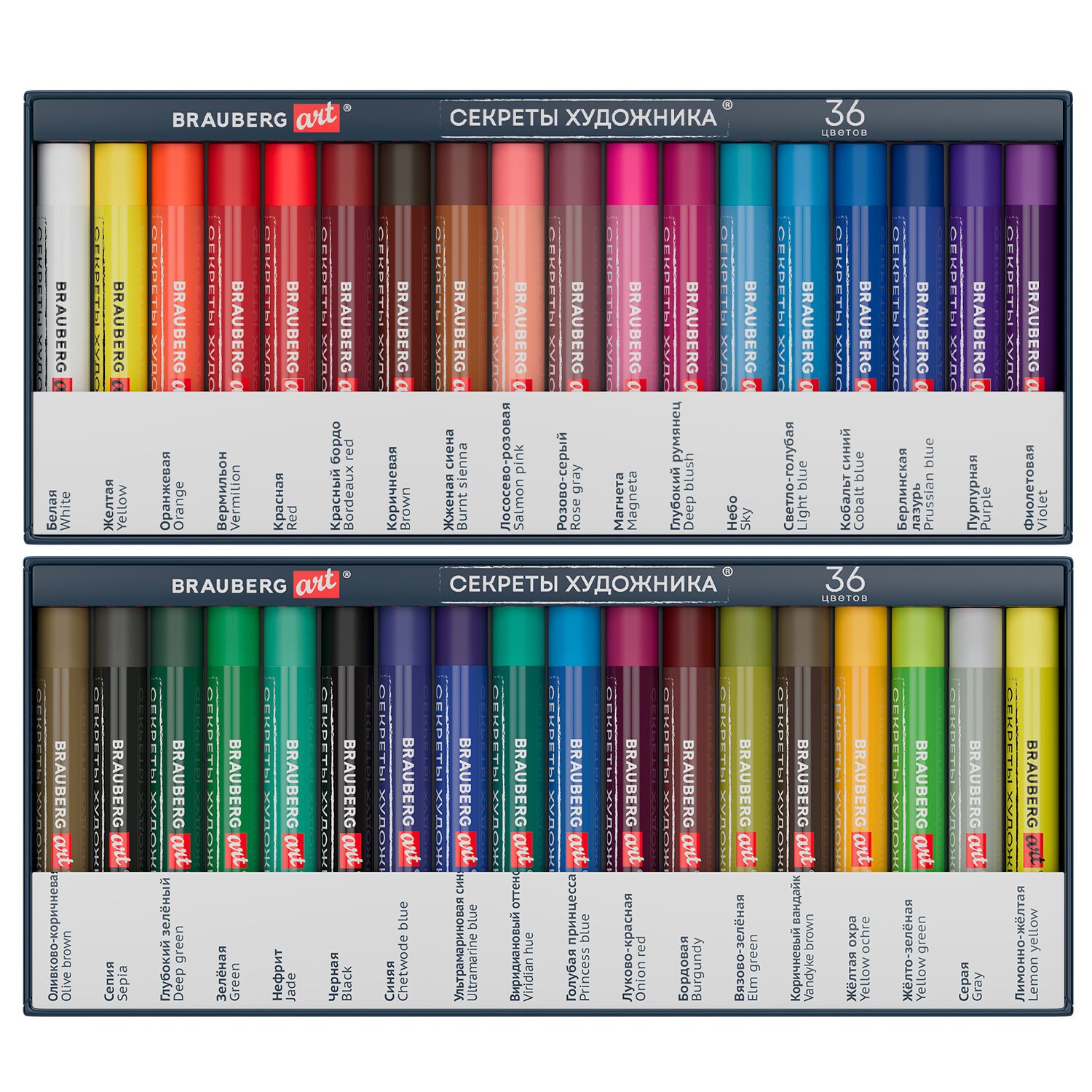 Пастель масляная художественная BRAUBERG ART "Секреты художника", 36 цветов, круглое сечение, 182097