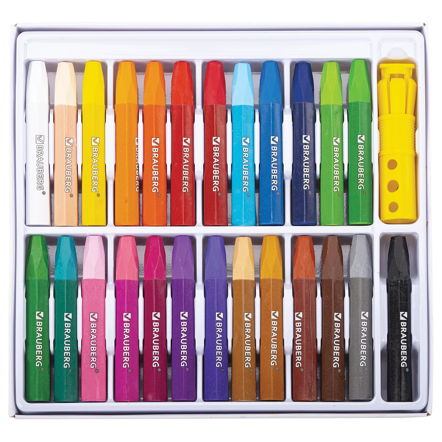 Пастель масляная восковые мелки утолщенные 25 цветов с точилкой и держателем, BRAUBERG PREMIUM, 272712