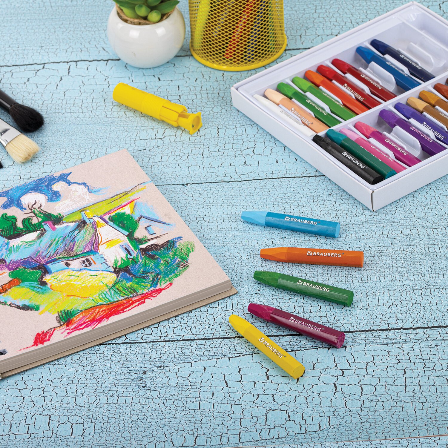Пастель масляная художественная BRAUBERG ART CLASSIC, УТОЛЩЕННАЯ, 24 цвета, круглое сечение, 181452