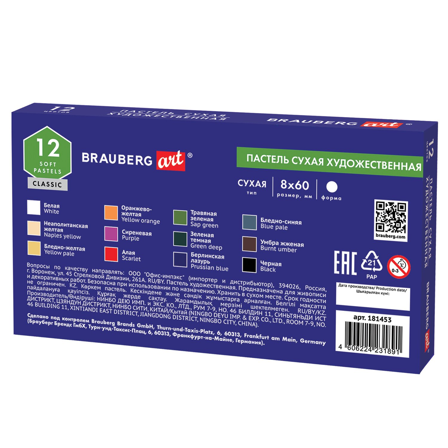 Пастель сухая художественная BRAUBERG ART CLASSIC, 12 цветов, квадратное сечение, 181464