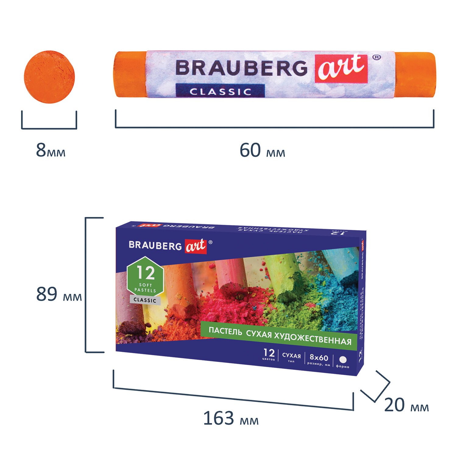 Пастель сухая художественная BRAUBERG ART CLASSIC, 12 цветов, круглое сечение, 181453