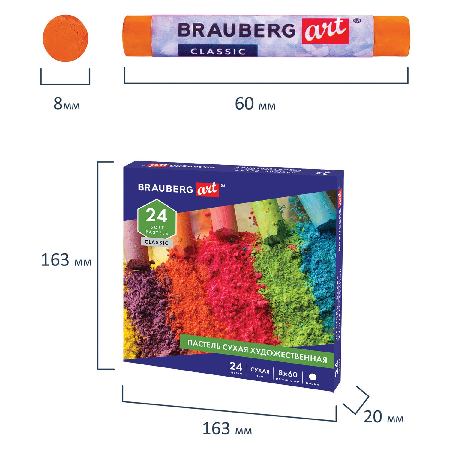 Пастель сухая художественная BRAUBERG ART CLASSIC, 24 цвета, круглое сечение, 181454