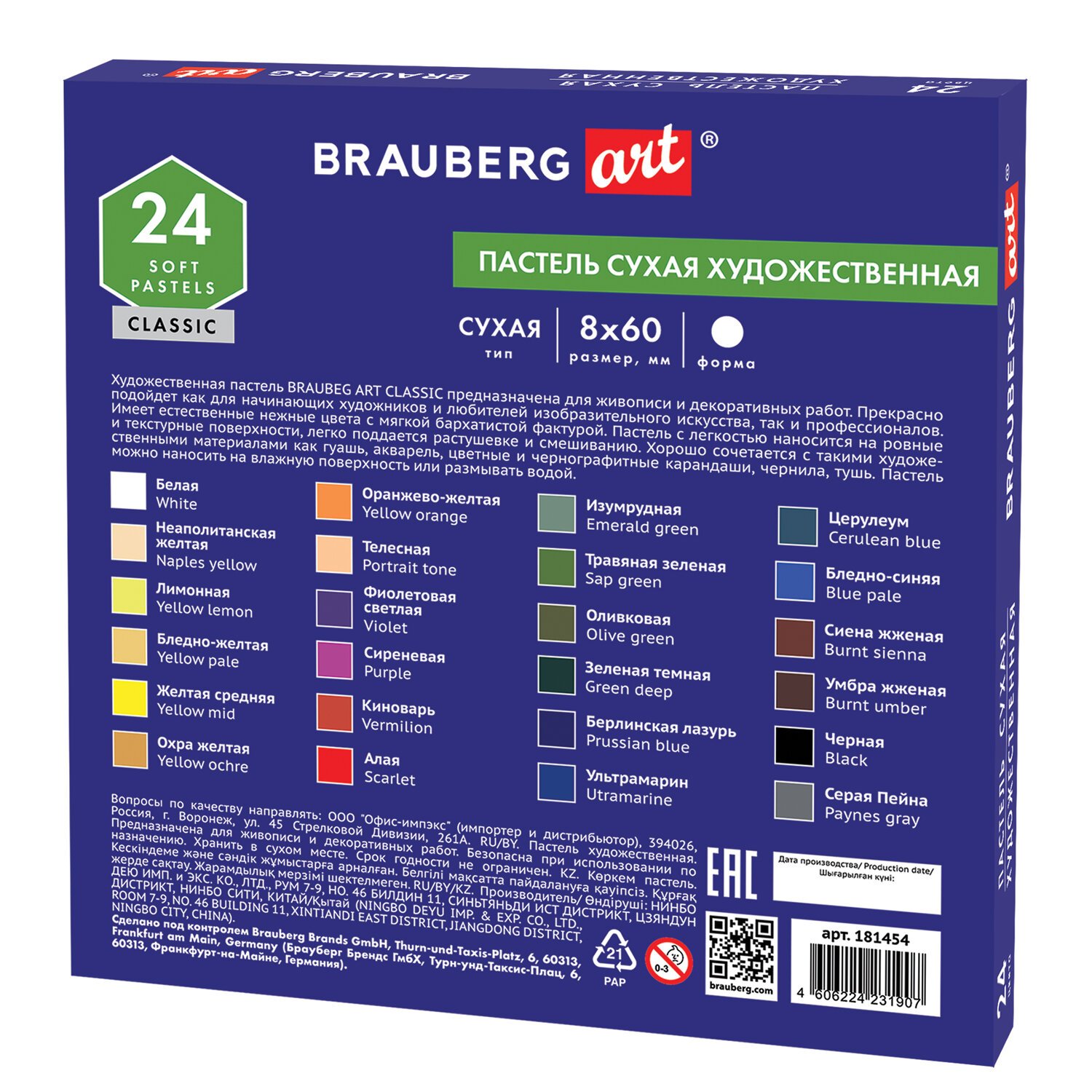 Сухая художественная пастель BRAUBERG ART "CLASSIC" предназначена для графики и живописи. Она отличается насыщенностью цвета, мягким письмом и не крошится при использовании. Пастель подходит как для начинающих художников и любителей, так и профессионалов.