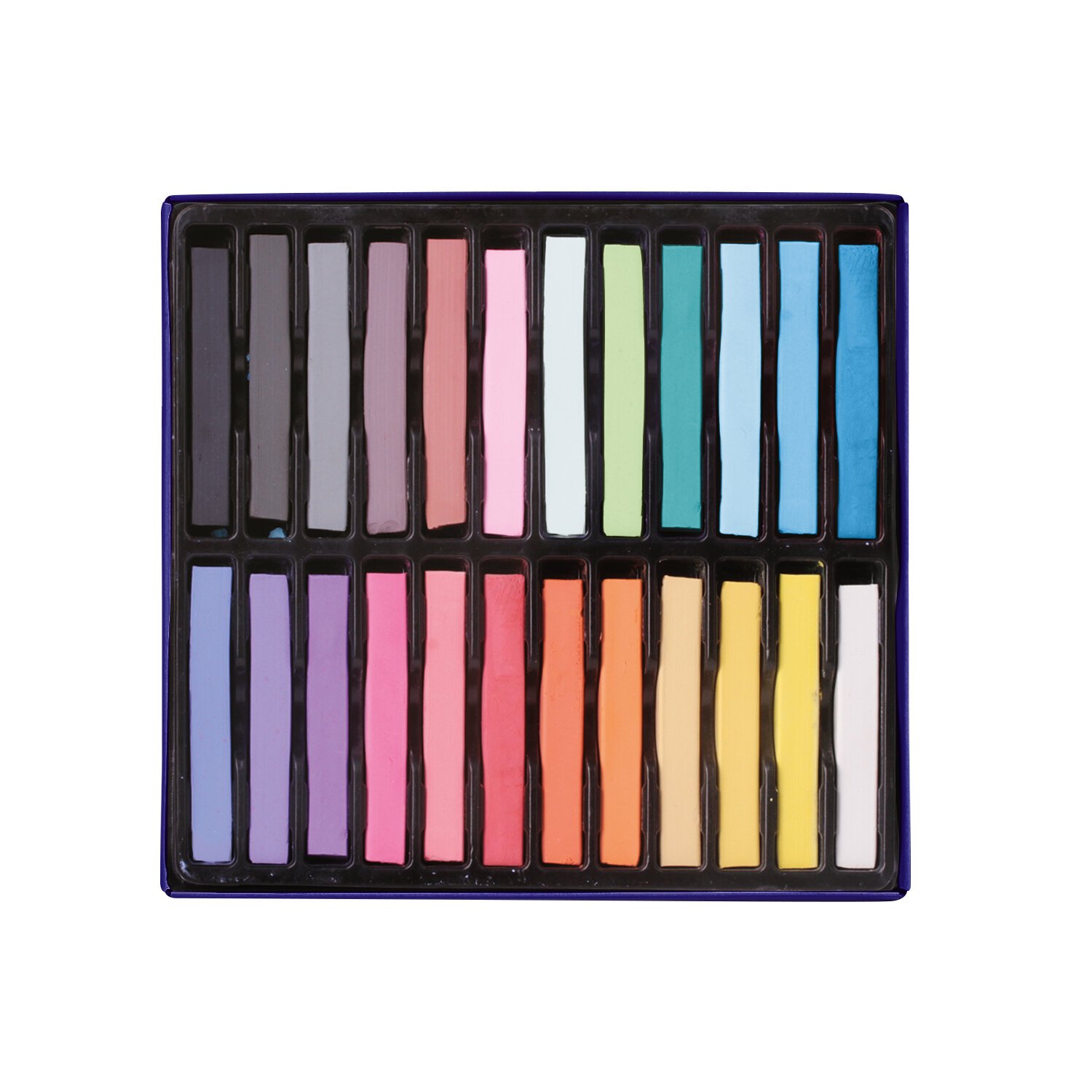 Легко ложится на различные фактуры цветной бумаги, бумагу для рисования, холст, картон, дерево, керамику. Также можно наносить на влажную поверхность или размывать водой для достижения акварельного эффекта. 24 цвета позволяют полностью передать цветовую палитру. Высокое качество пигментов и связующего обеспечивает низкий расход материала, хорошую укрывистость и яркость цвета. Пастель имеет вид брусков с квадратным сечением. Не токсична и безопасна при использовании. При попадании на одежду или кожу рук легко смывается тёплой водой. Благодаря компактной упаковке удобно брать с собой.