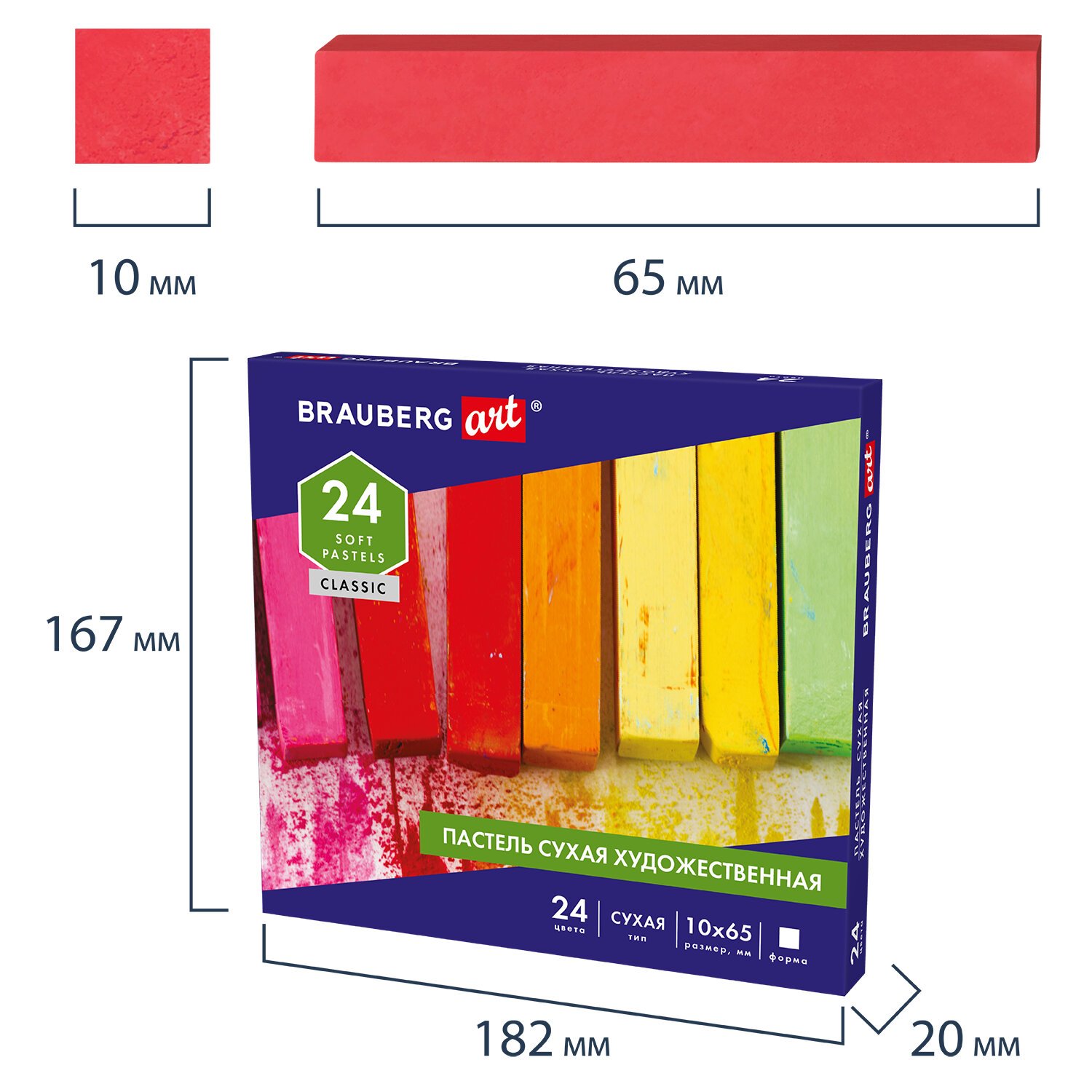 Пастель сухая художественная BRAUBERG ART CLASSIC, 24 цвета, квадратное сечение, 181465