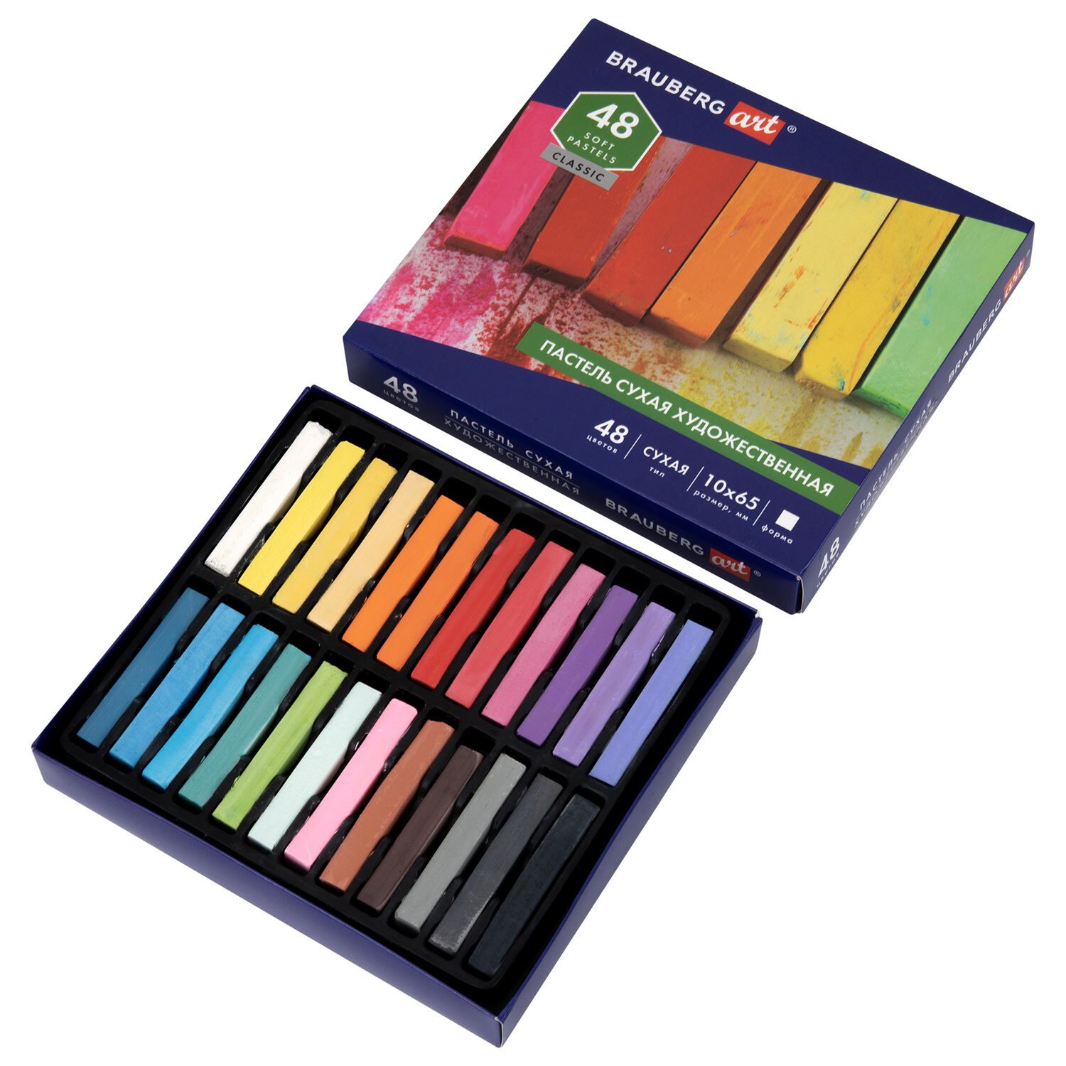 Пастель сухая художественная BRAUBERG ART CLASSIC, 48 цветов, квадратное сечение, 182094