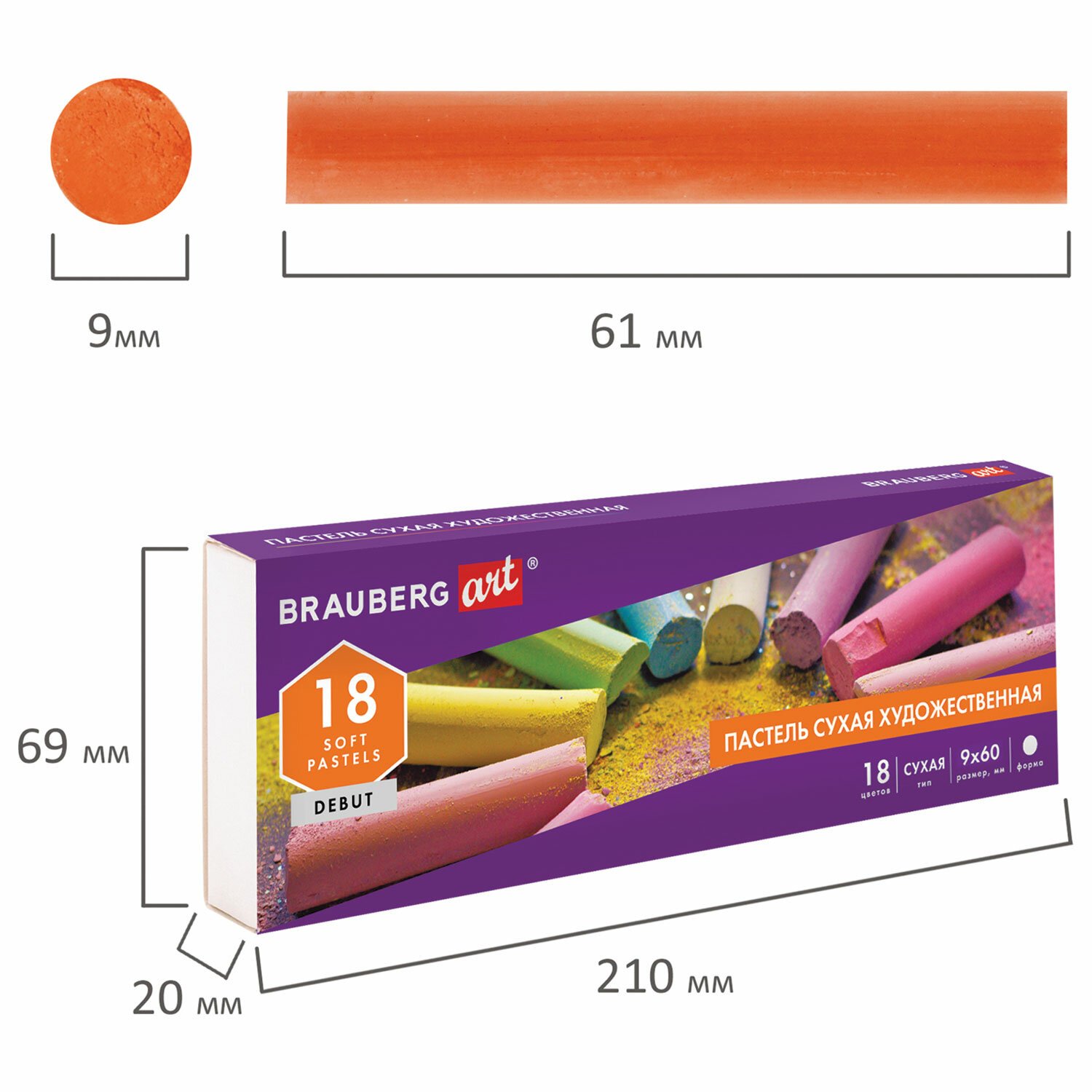 Пастель сухая художественная BRAUBERG ART DEBUT, 18 цветов, круглое сечение, 181460