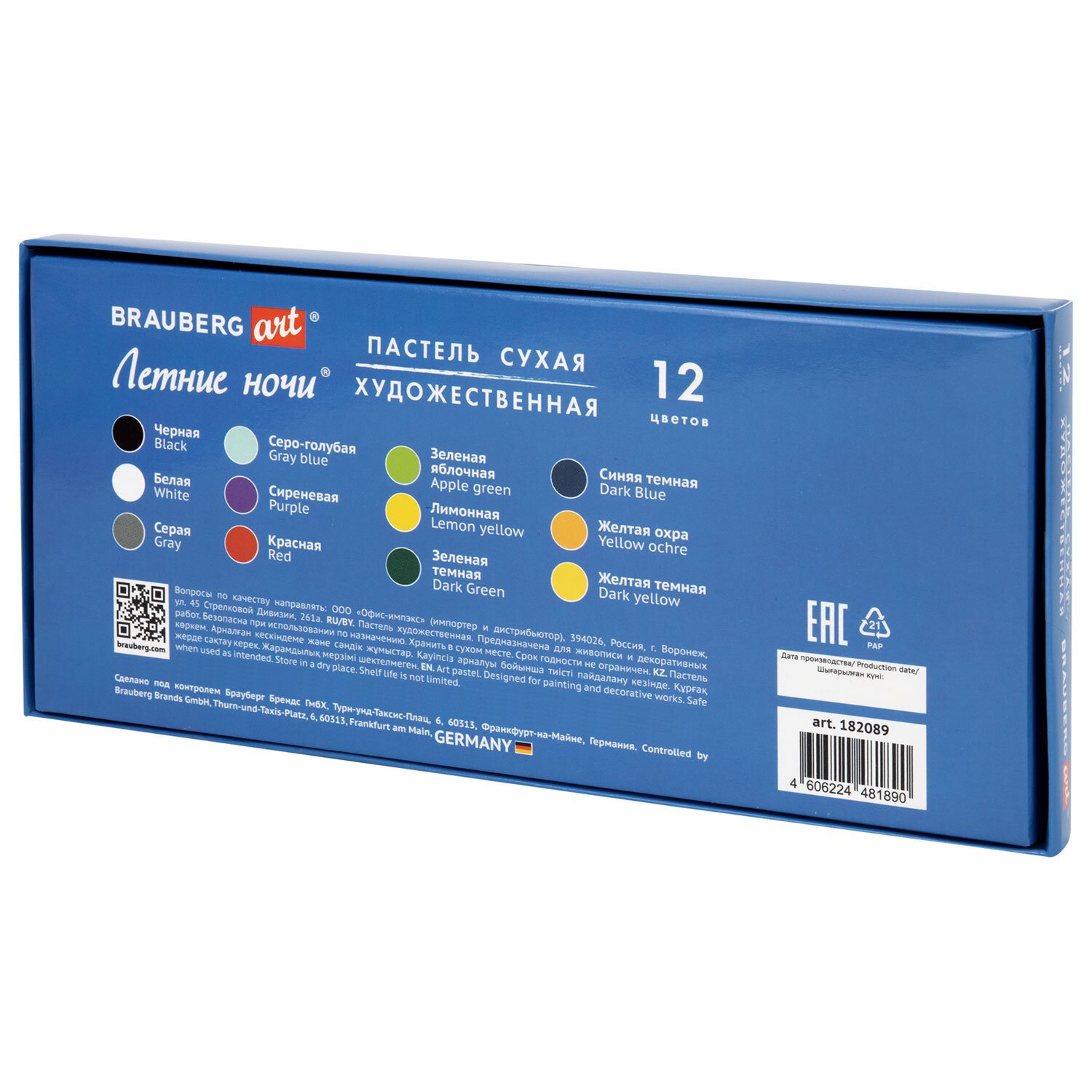 Пастель сухая художественная BRAUBERG ART "Летние ночи", 12 цветов, круглое сечение,182089
