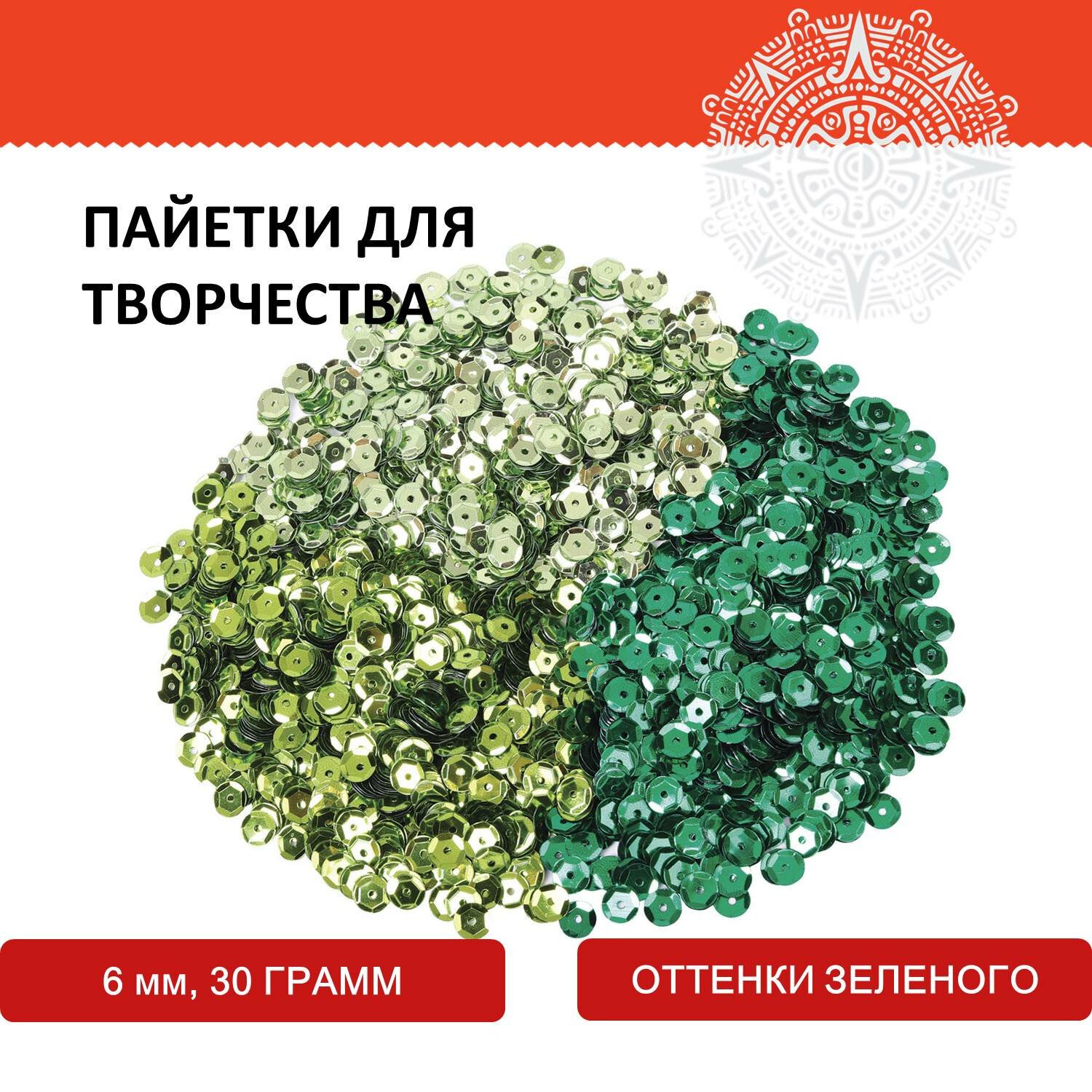 Пайетки для творчества "Классика", оттенки зеленого, 6 мм, 30 грамм, ОСТРОВ СОКРОВИЩ, 661273
