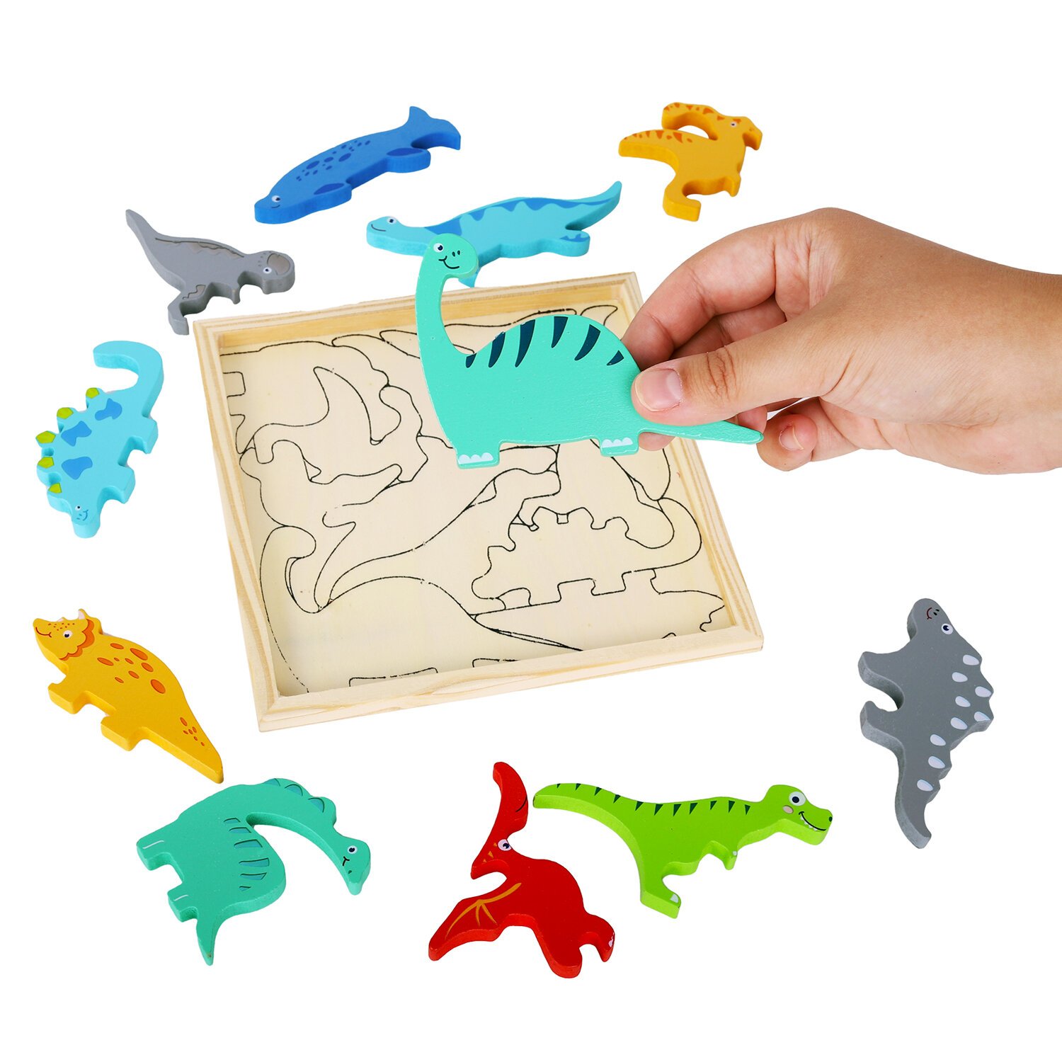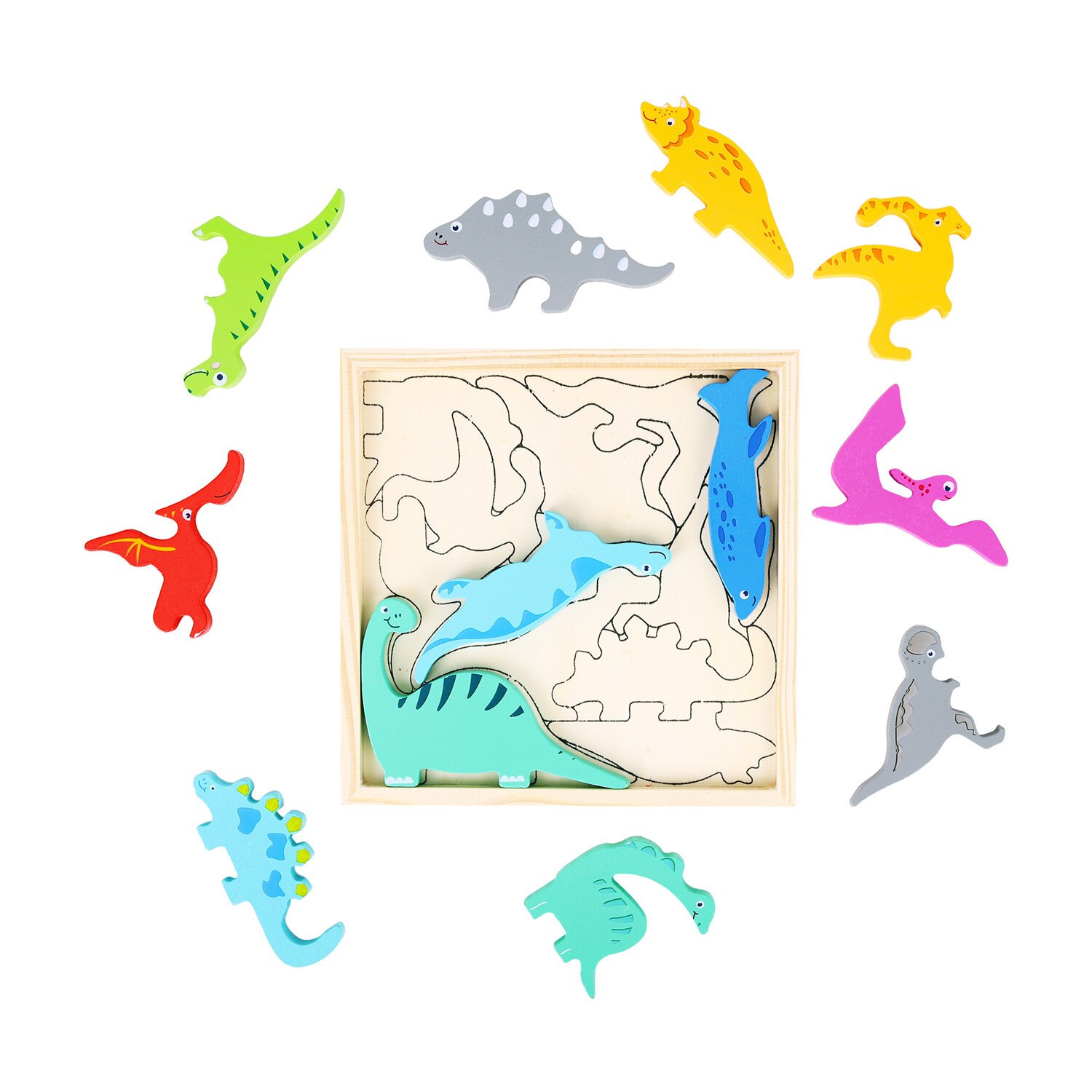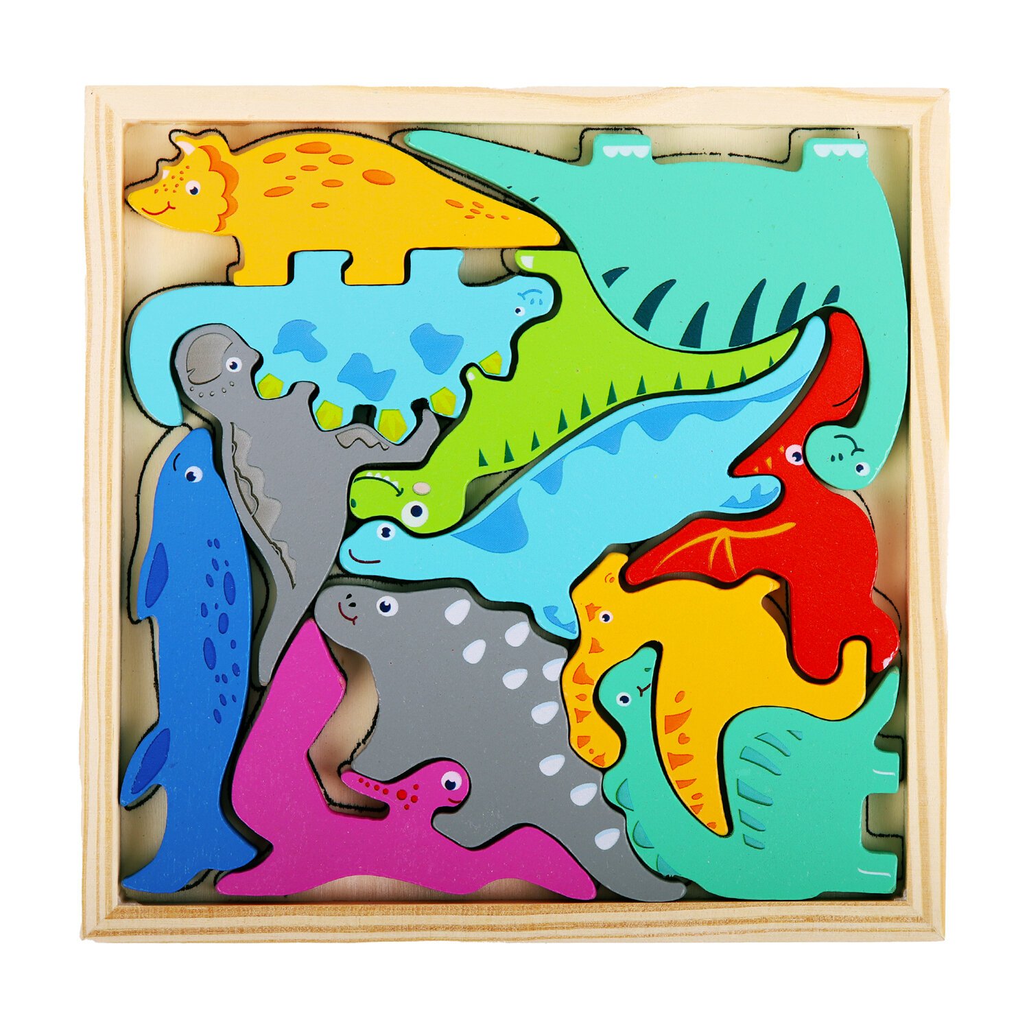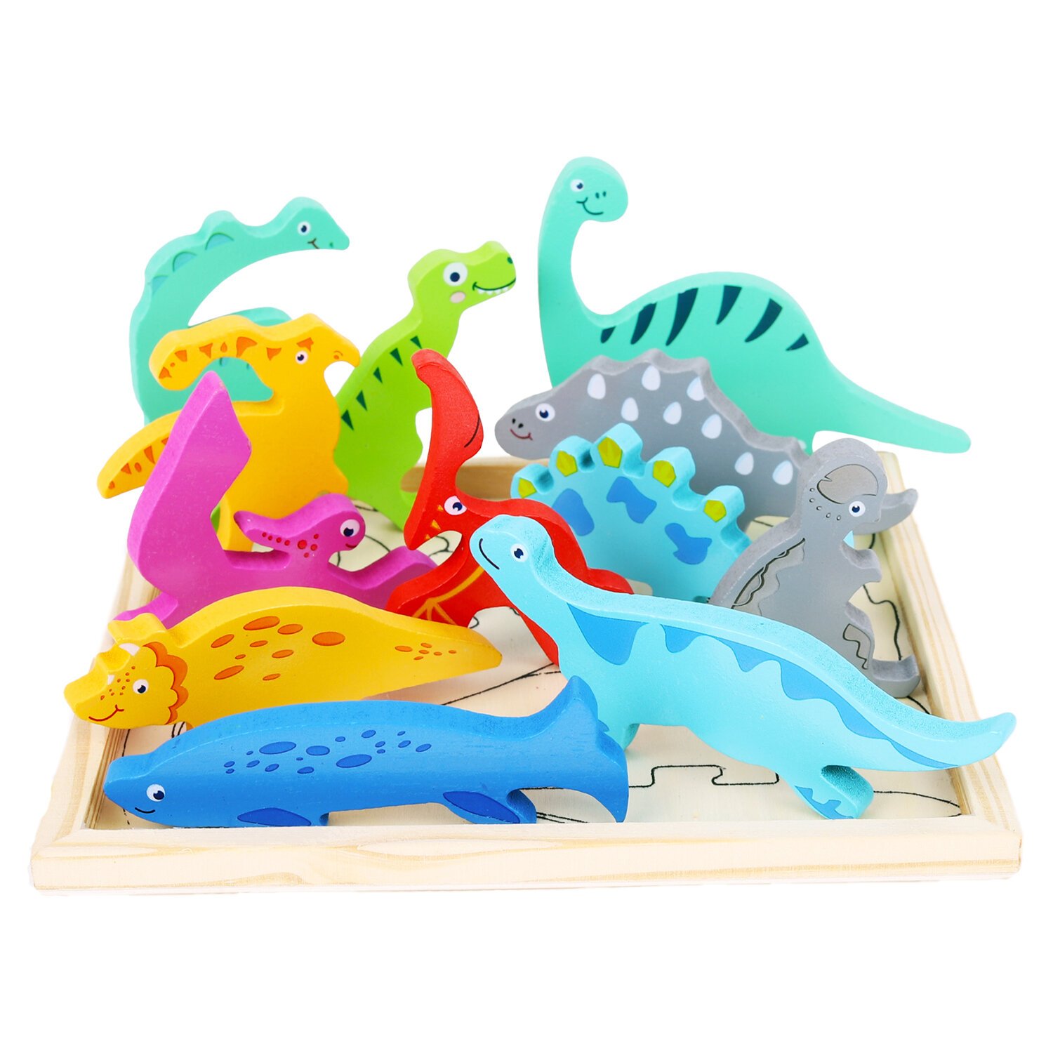 Каждая деталь игрушки, тщательно обработанная и украшенная, представляет собой не только инструмент для обучения, но и безопасный и прочный игровой элемент. Процесс сборки пазла-головоломки сопровождается произнесением названий динозавров, способствуя быстрому запоминанию и расширению словарного запаса малыша. В ходе игры малыш развивает мелкую моторику, логику и мышление. Ребенок научится соотносить цвета и формы, изучит виды динозавров.