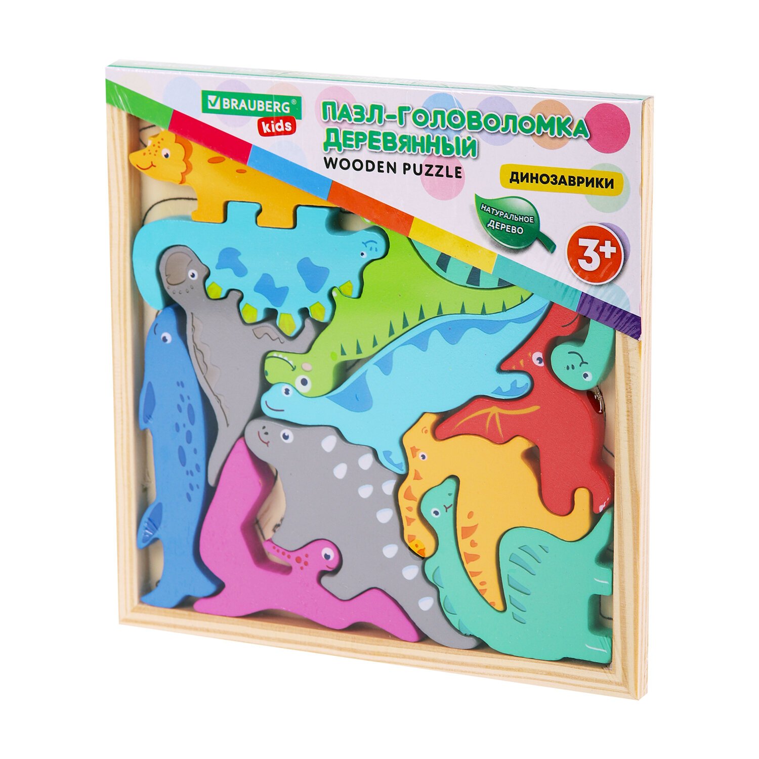 Пазл деревянный развивающий для детей "Динозавры", 17х17 см, BRAUBERG KIDS, 665252