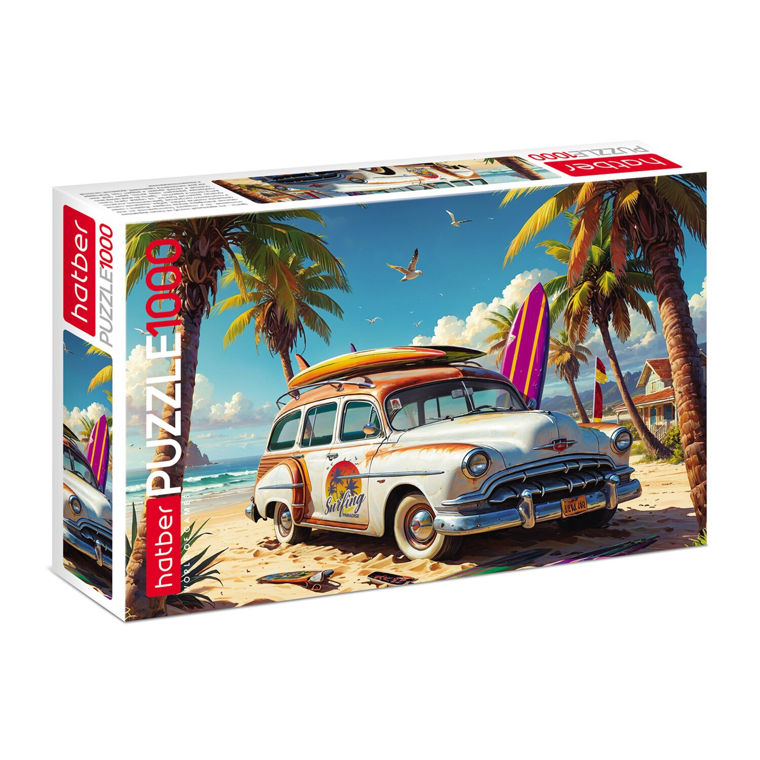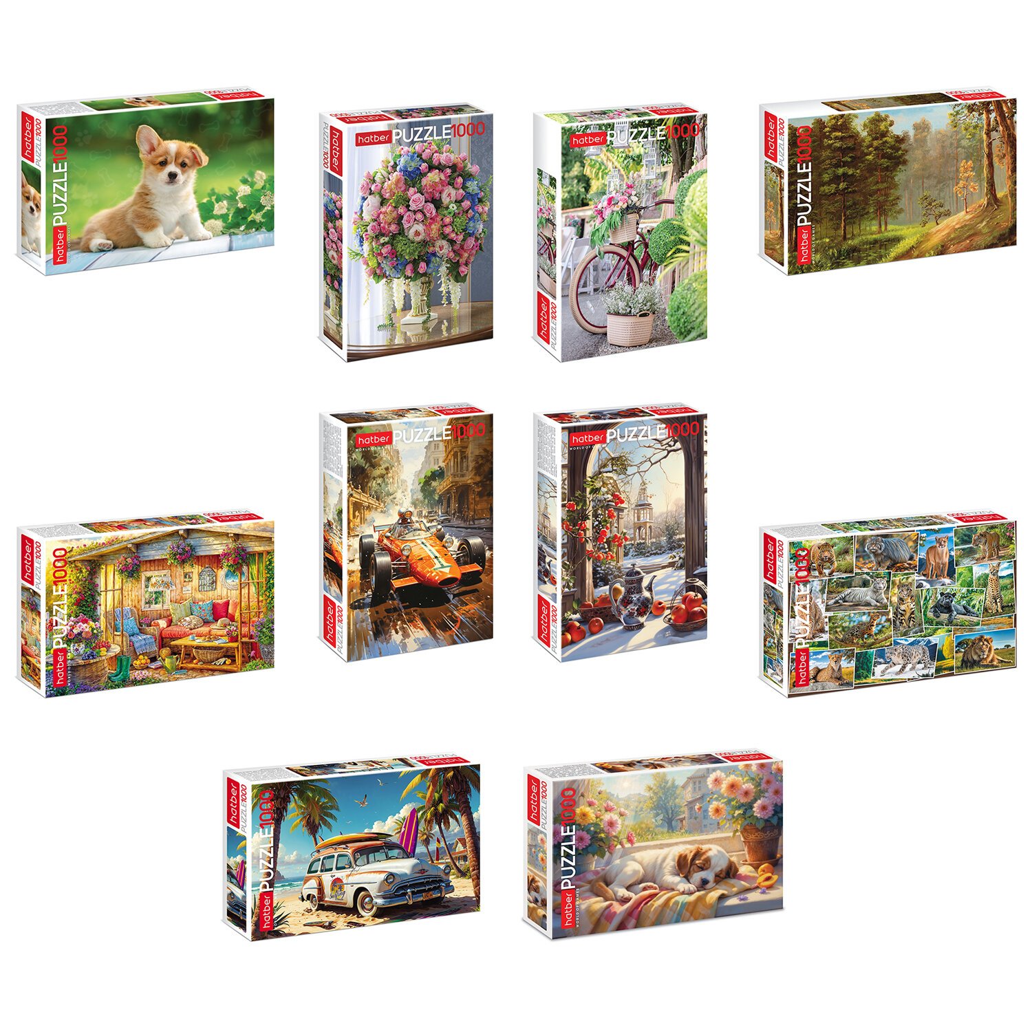 Пазл картонный 1000 элементов АССОРТИ, 10 дизайнов, 480х680 мм, HATBER