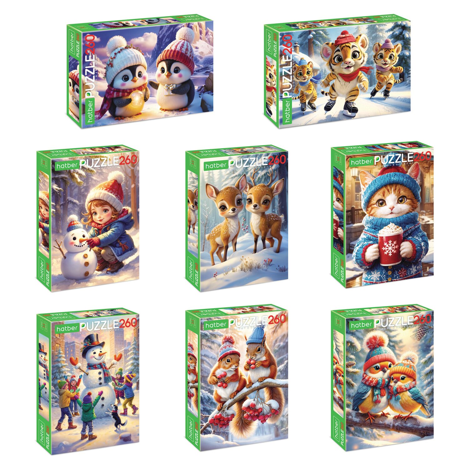 Пазл картонный НОВОГОДНИЙ 260 элементов АССОРТИ, 220х330 мм, HATBER