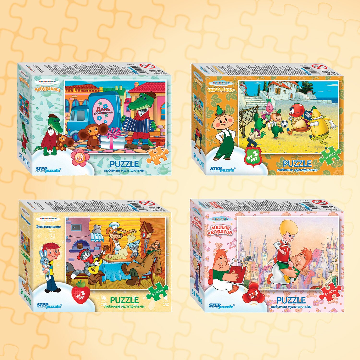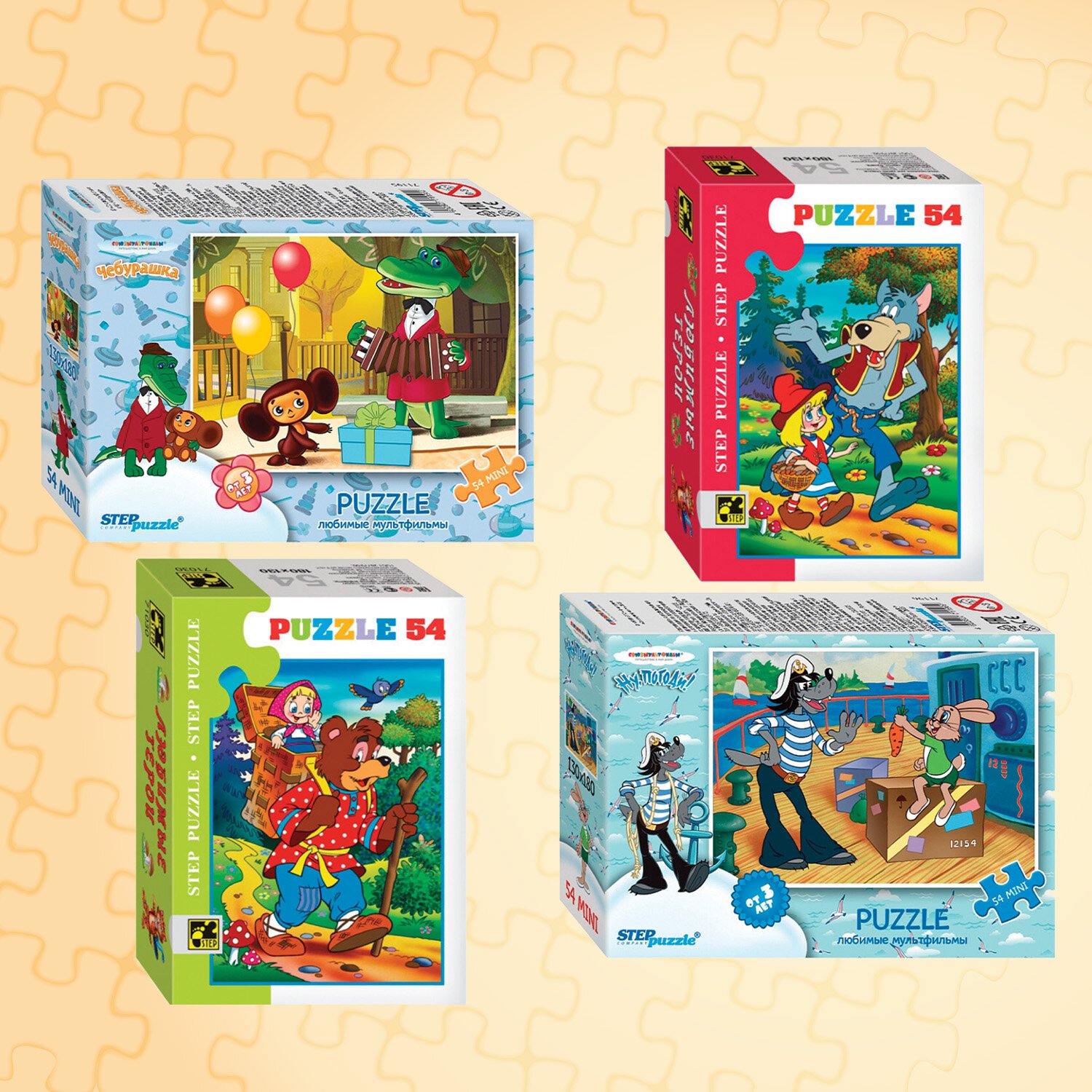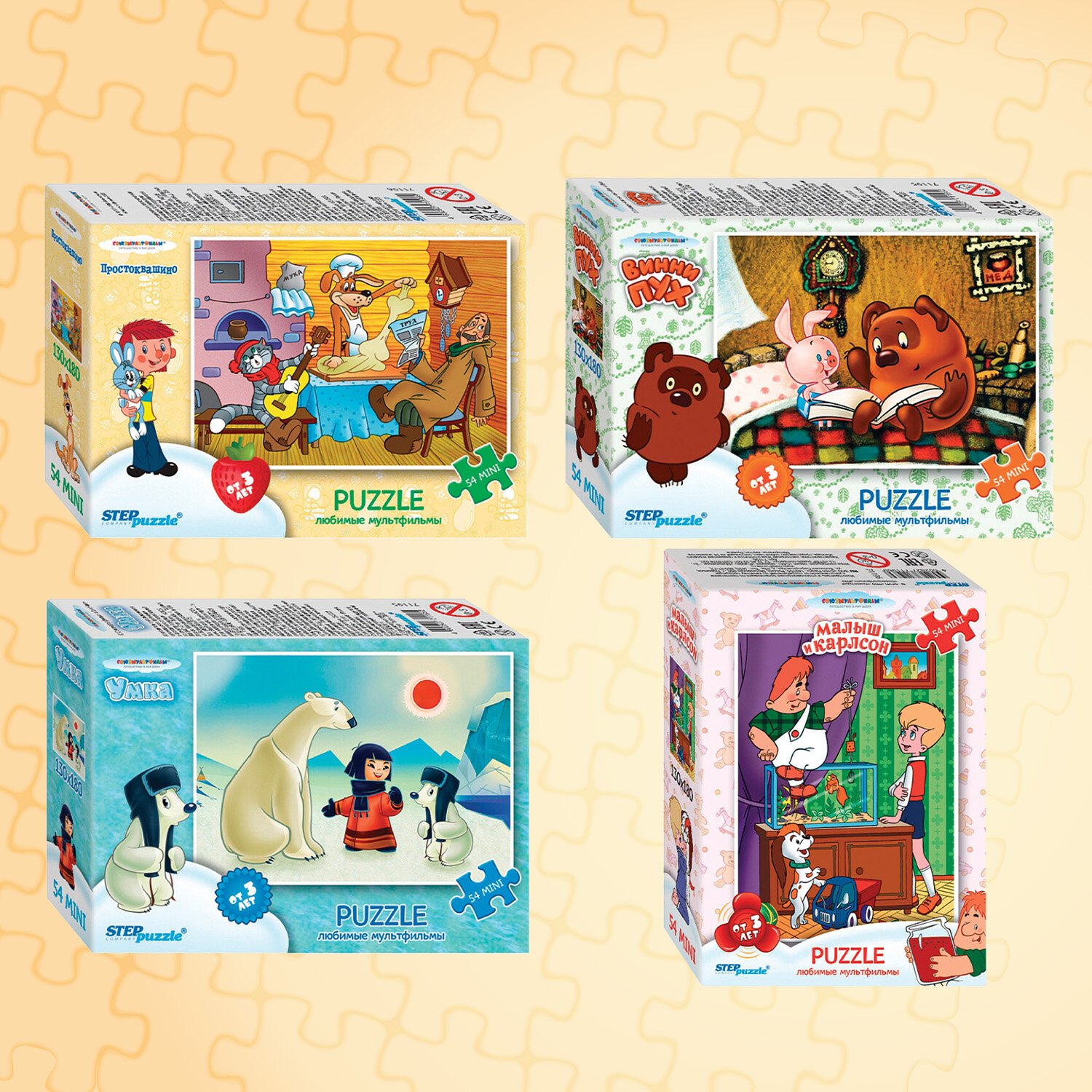 Комплект пазл состоит из 54 элементов, размер детали пазла – 2х1,8 см. Детали изготовлены из экологически безопасного и не расслаивающегося картона. Предназначен для самых маленьких, отлично помогает в формировании мелкой моторики ребёнка. Дизайны созданы художниками-мультипликаторами. Сюжет и персонажи картинки яркие и интересные, хорошо прорисованные.