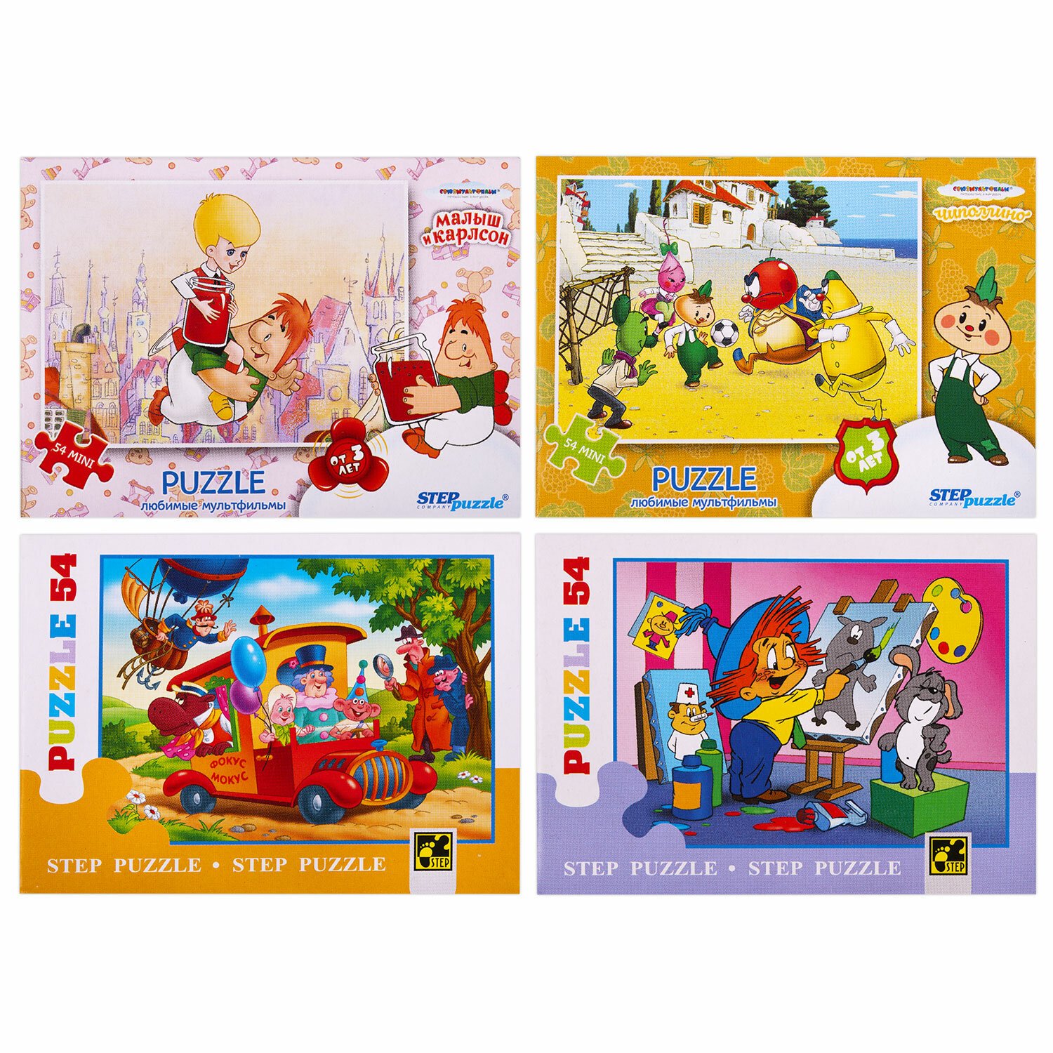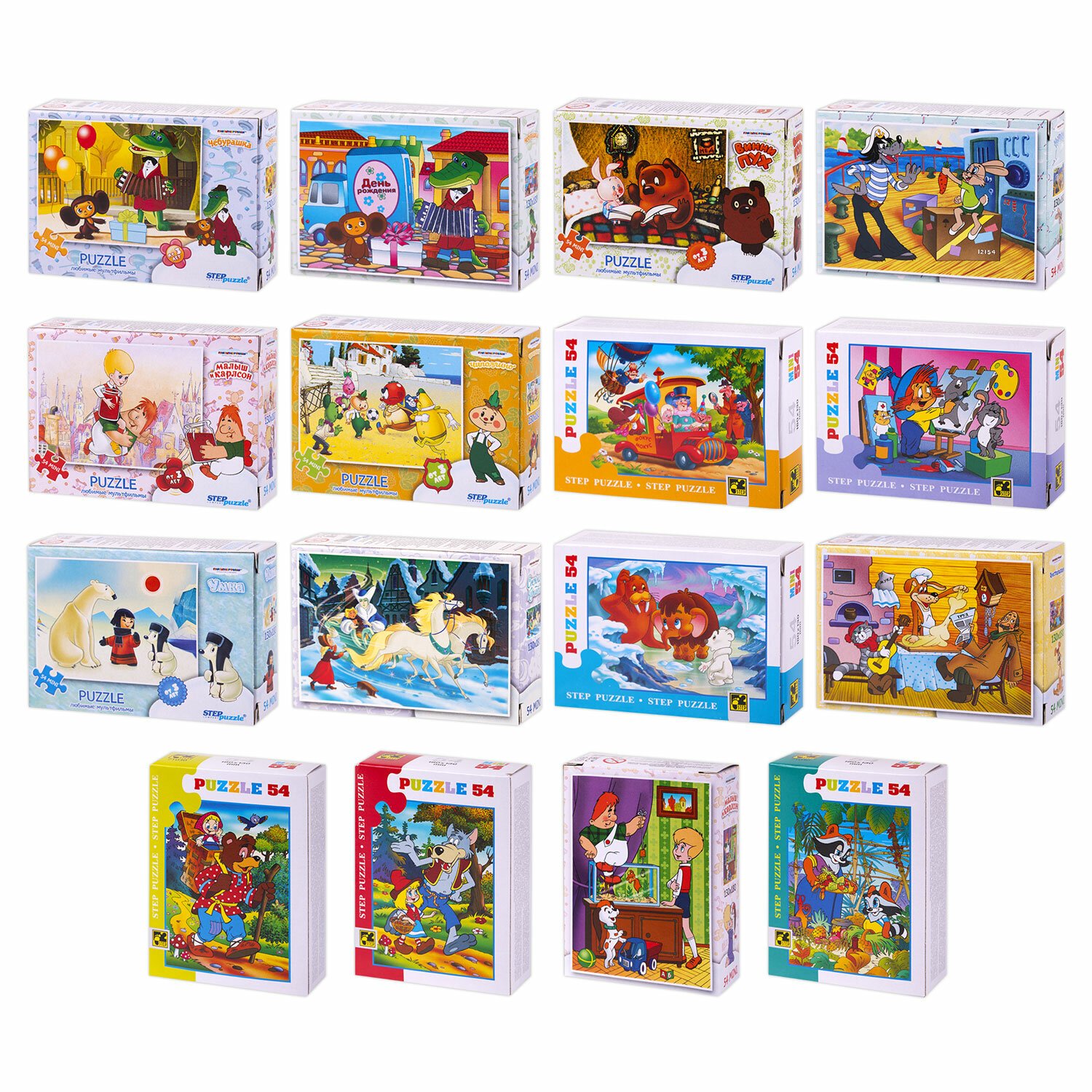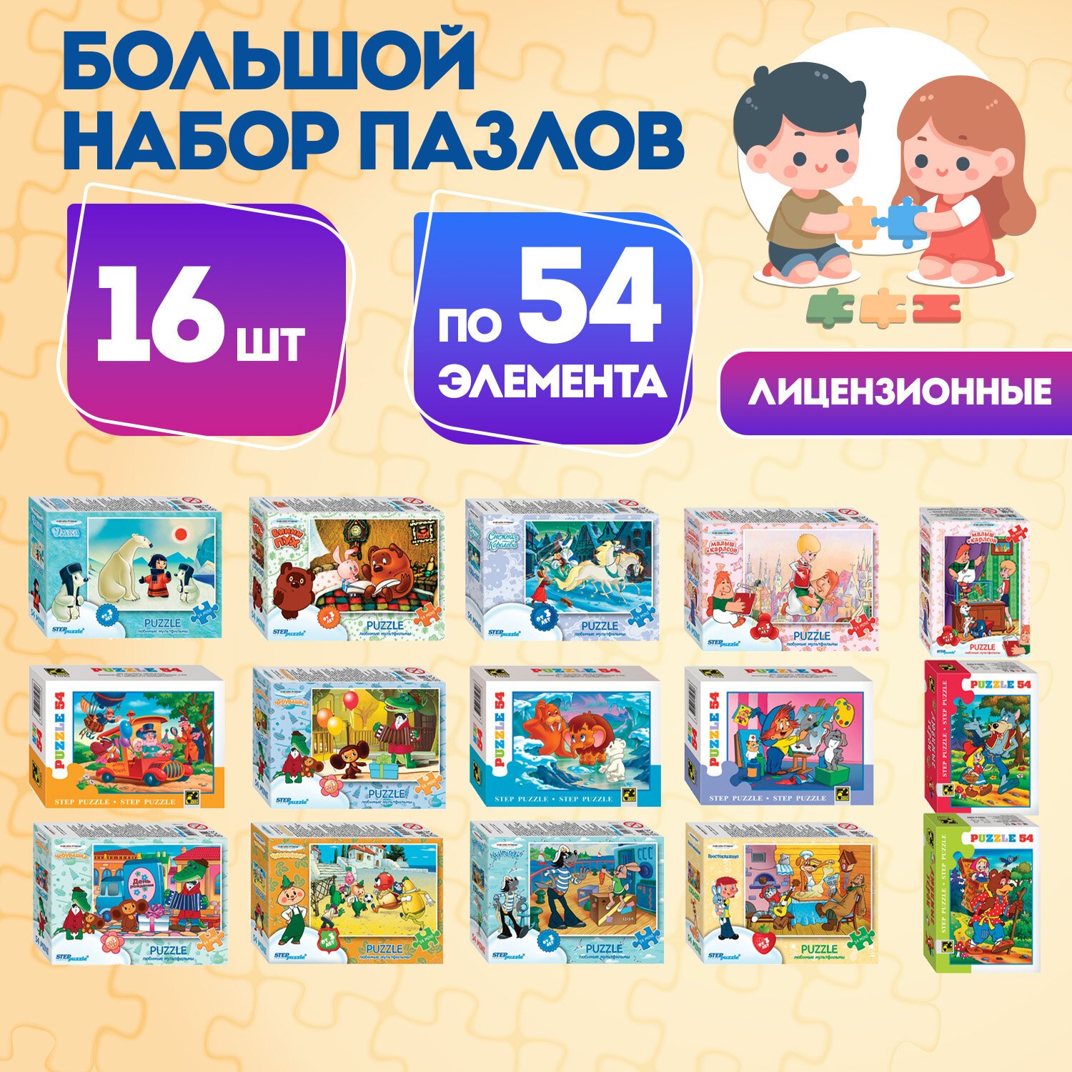 Пазлы картонные 54 элемента, "Лицензионные сюжеты", КОМПЛЕКТ 16 шт., поле 17,5х13 см, 480541