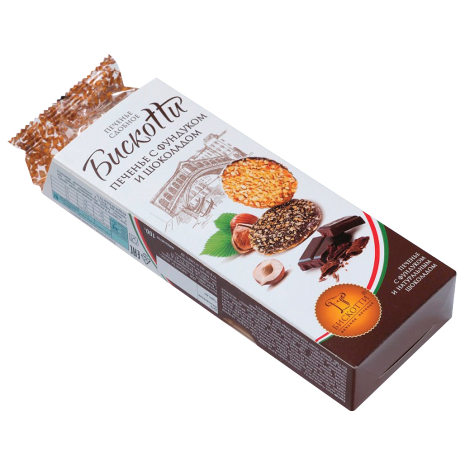 Печенье БИСКОТТИ (Россия) с фундуком, шоколадом и вафельной крошкой, сдобное, 100 г