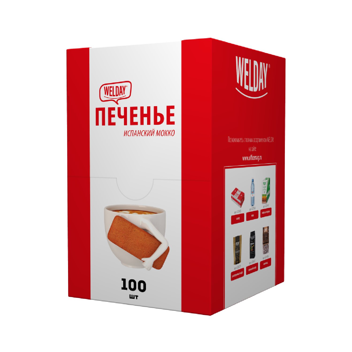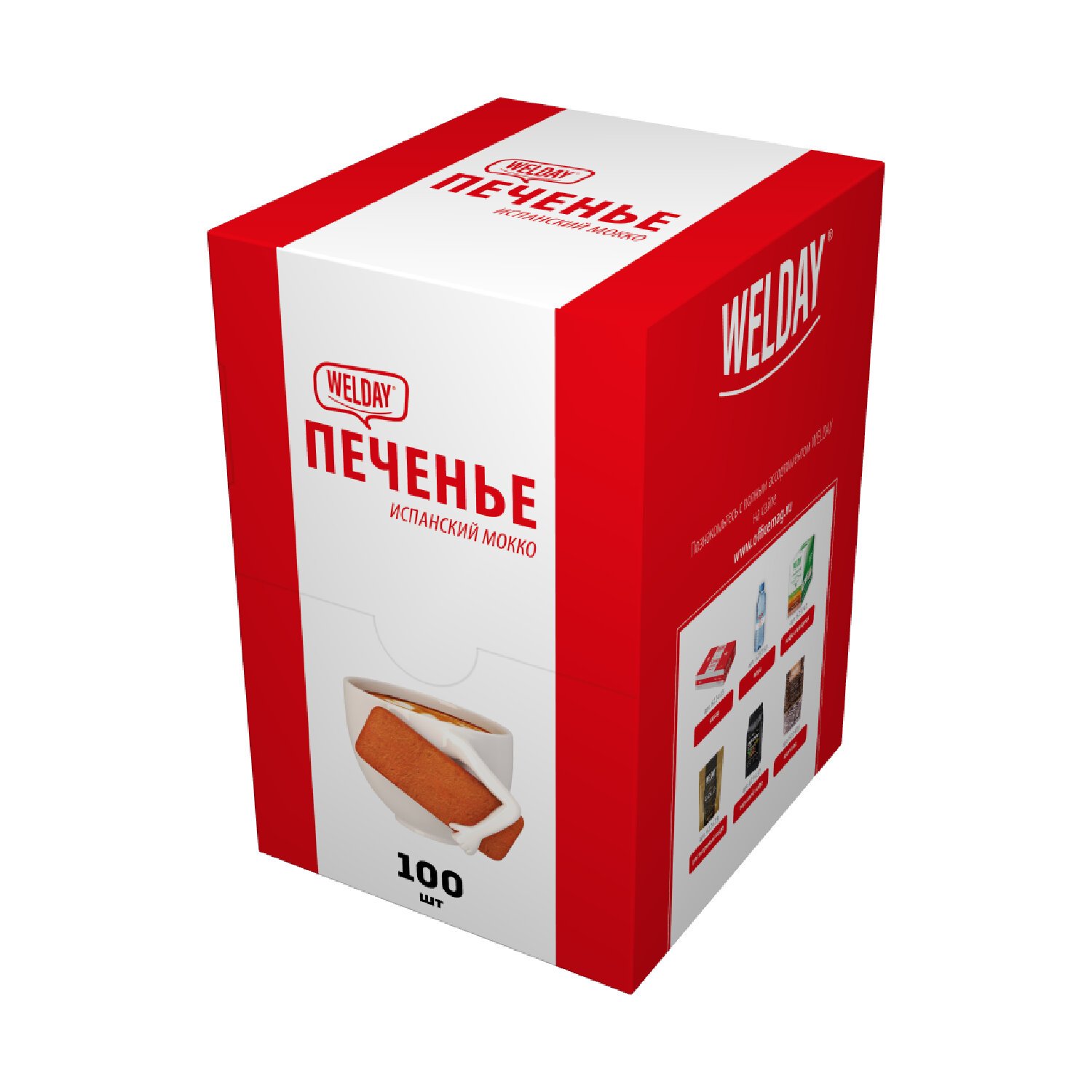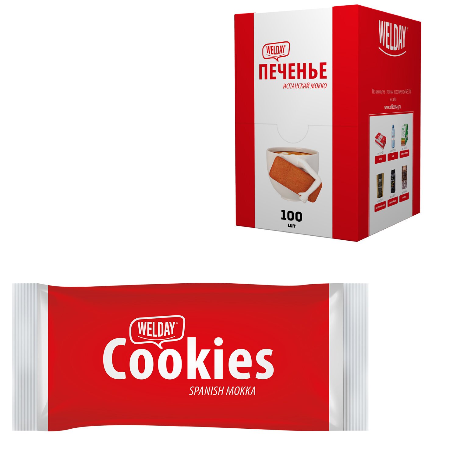 Печенье хрустящее в индивидуальной упаковке WELDAY Испанский Мокко, 100 штук в Office