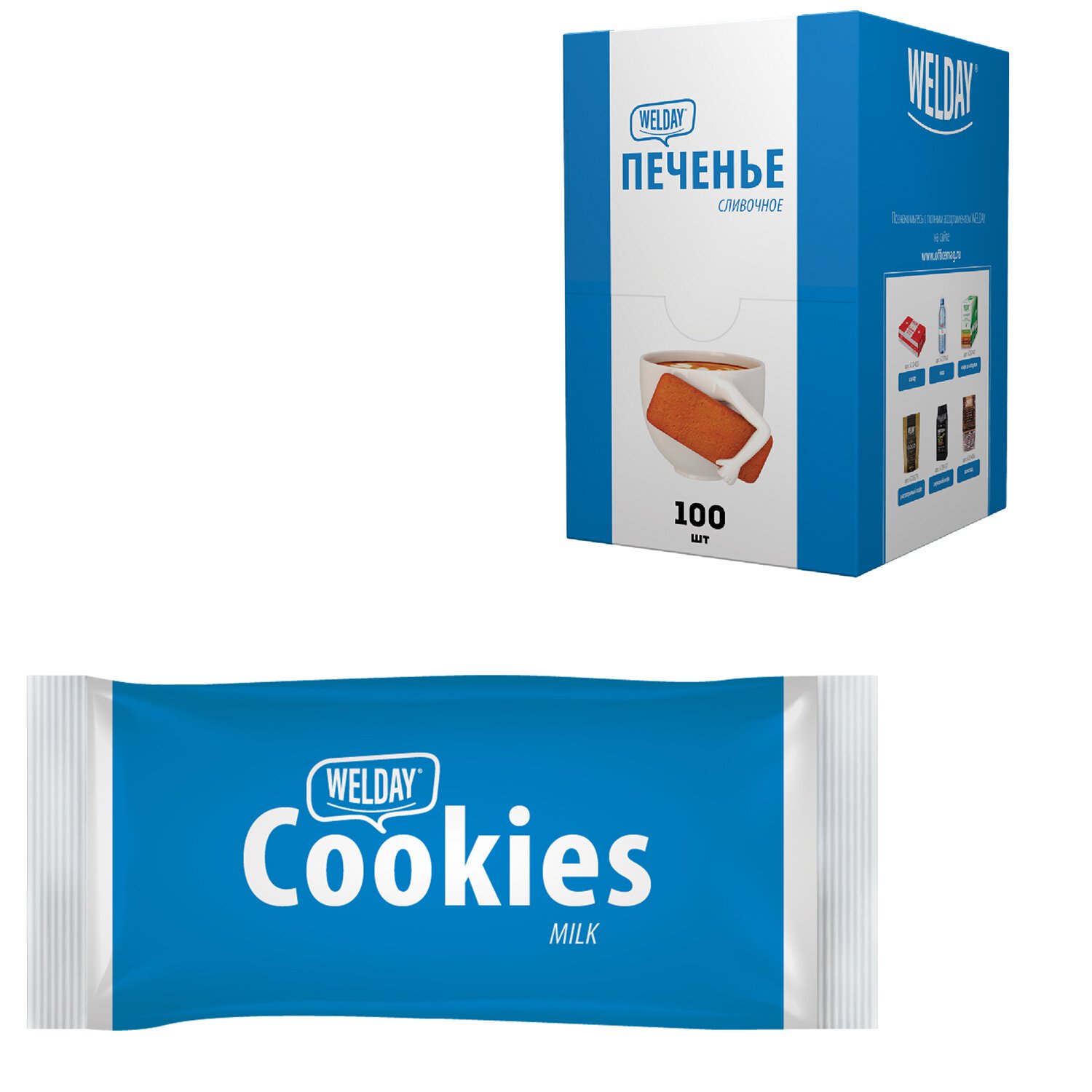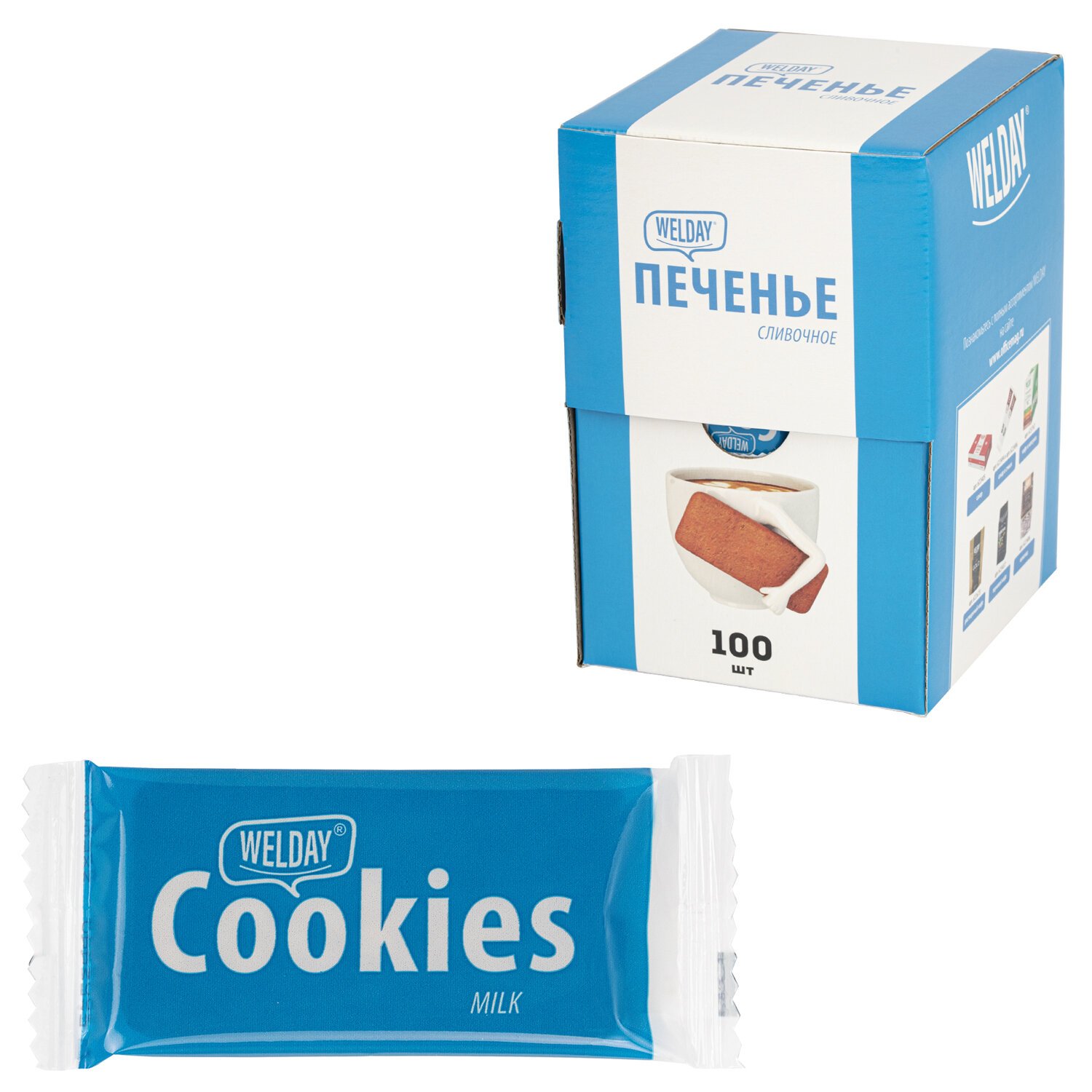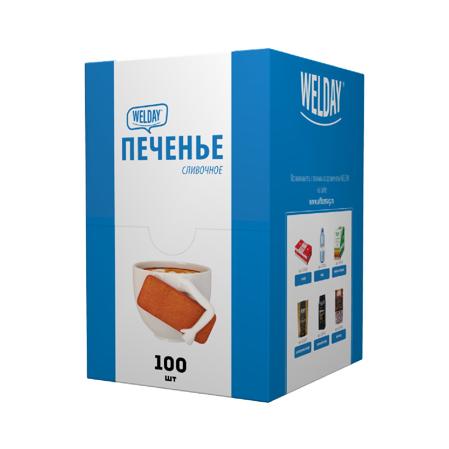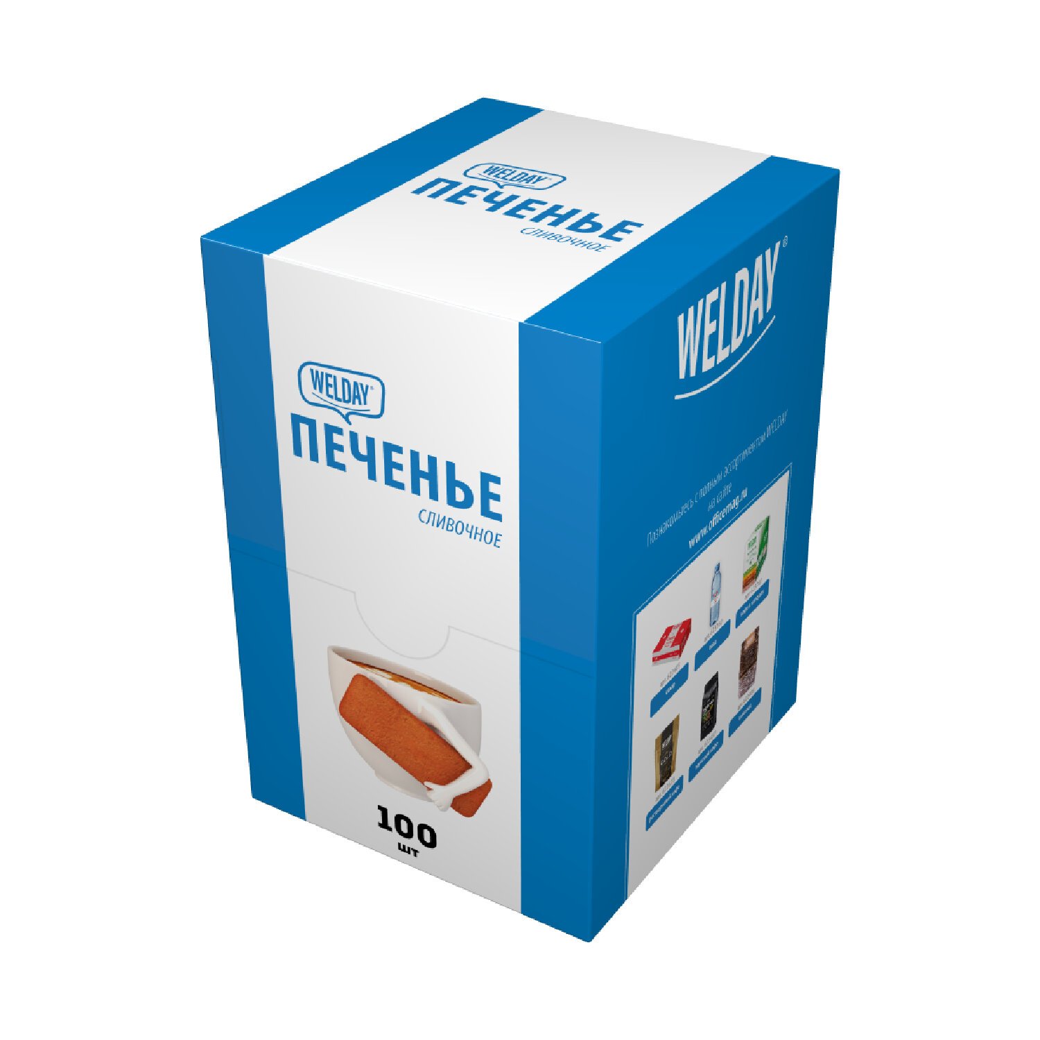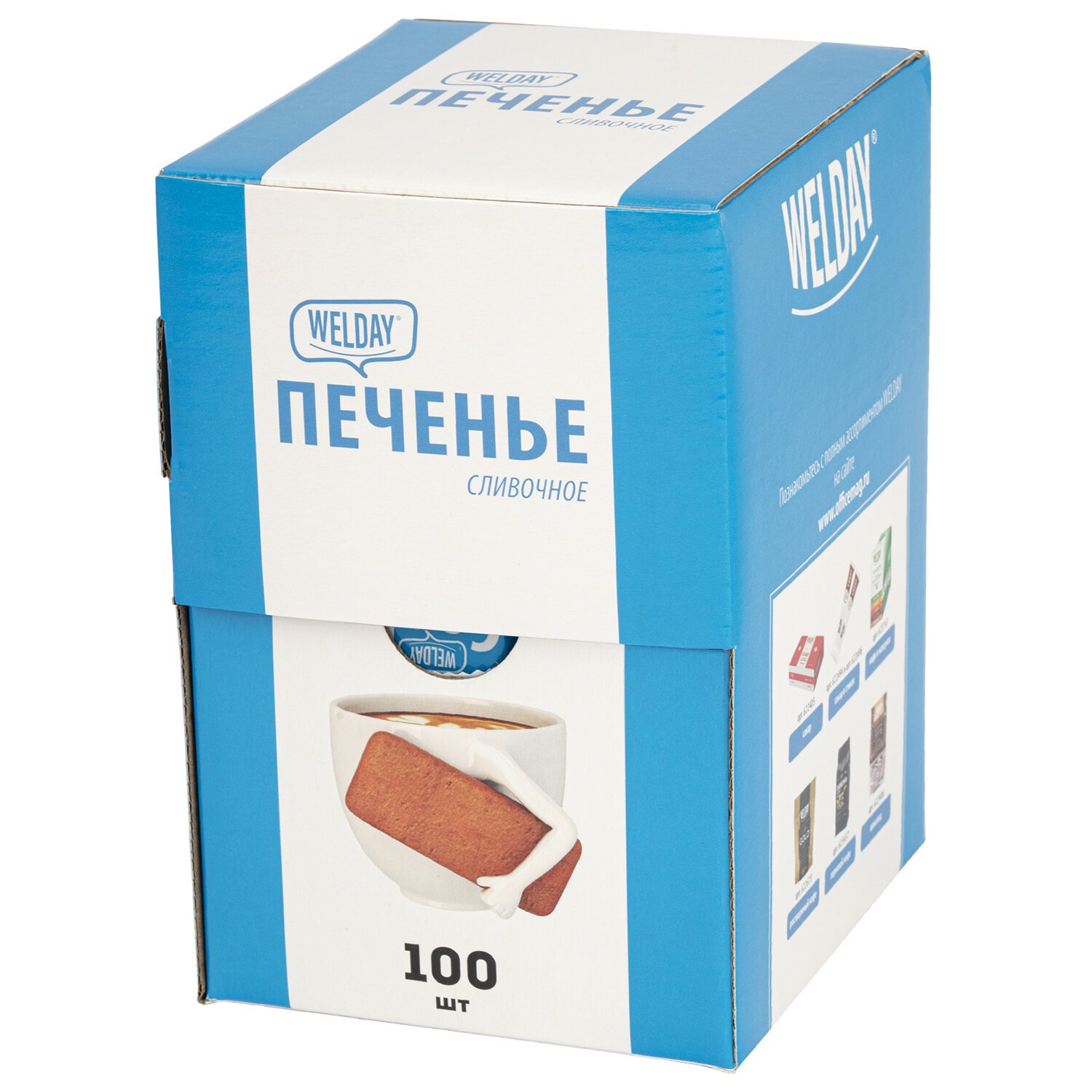 Печенье хрустящее в индивидуальной упаковке WELDAY Сливочное, 100 штук в Office-box,
