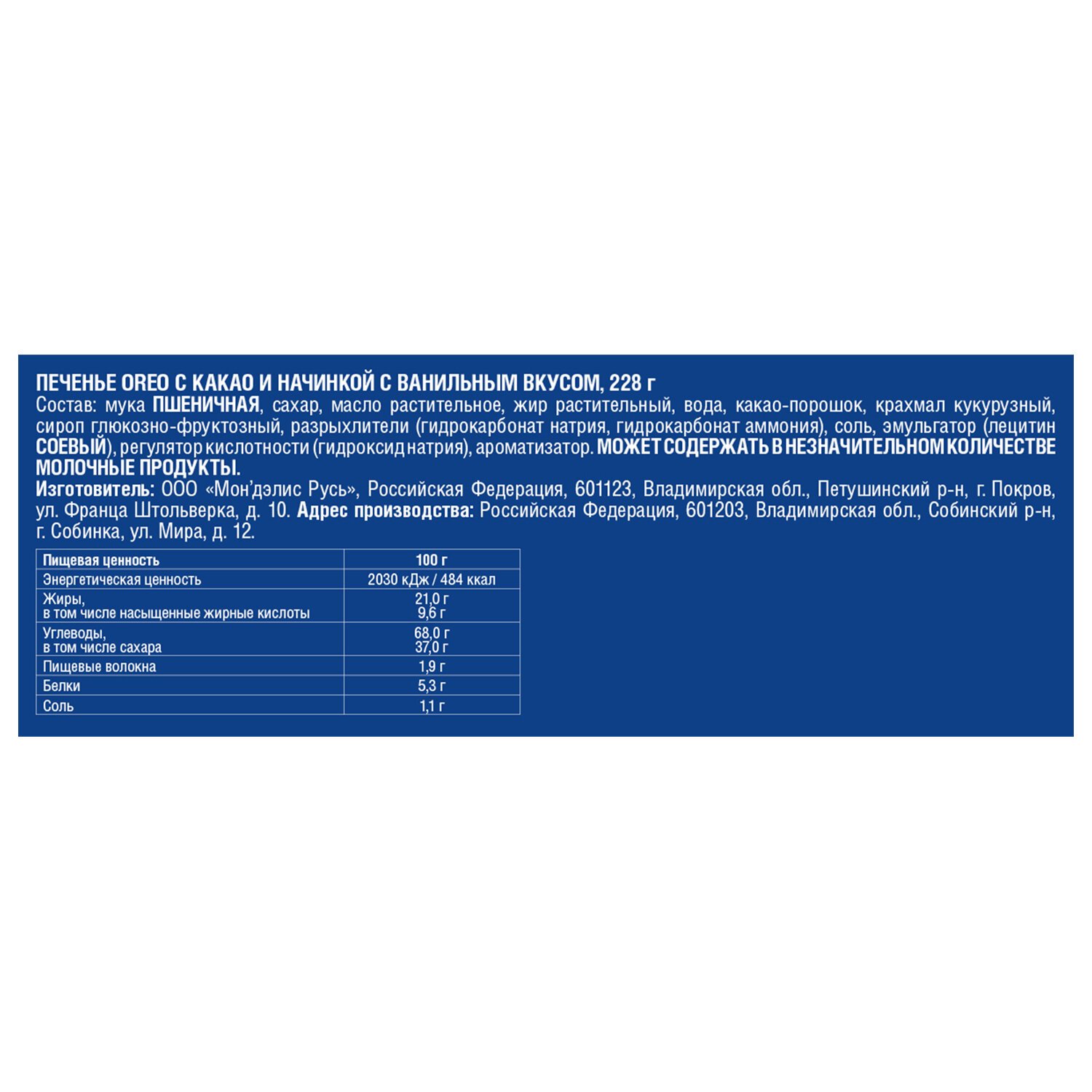 Печенье OREO с какао и начинкой с ванильным вкусом, 228 г, 9001068